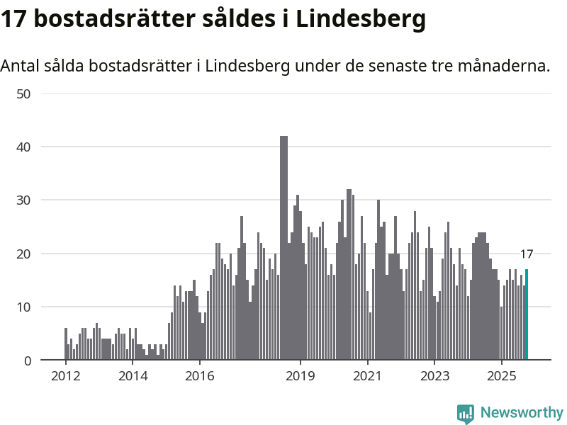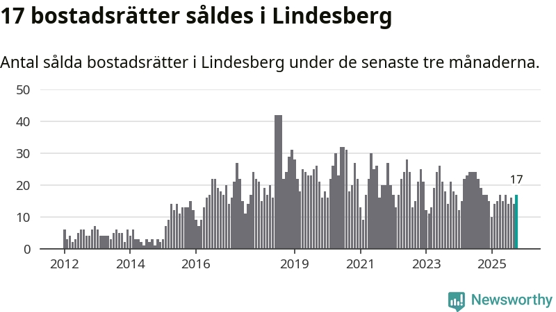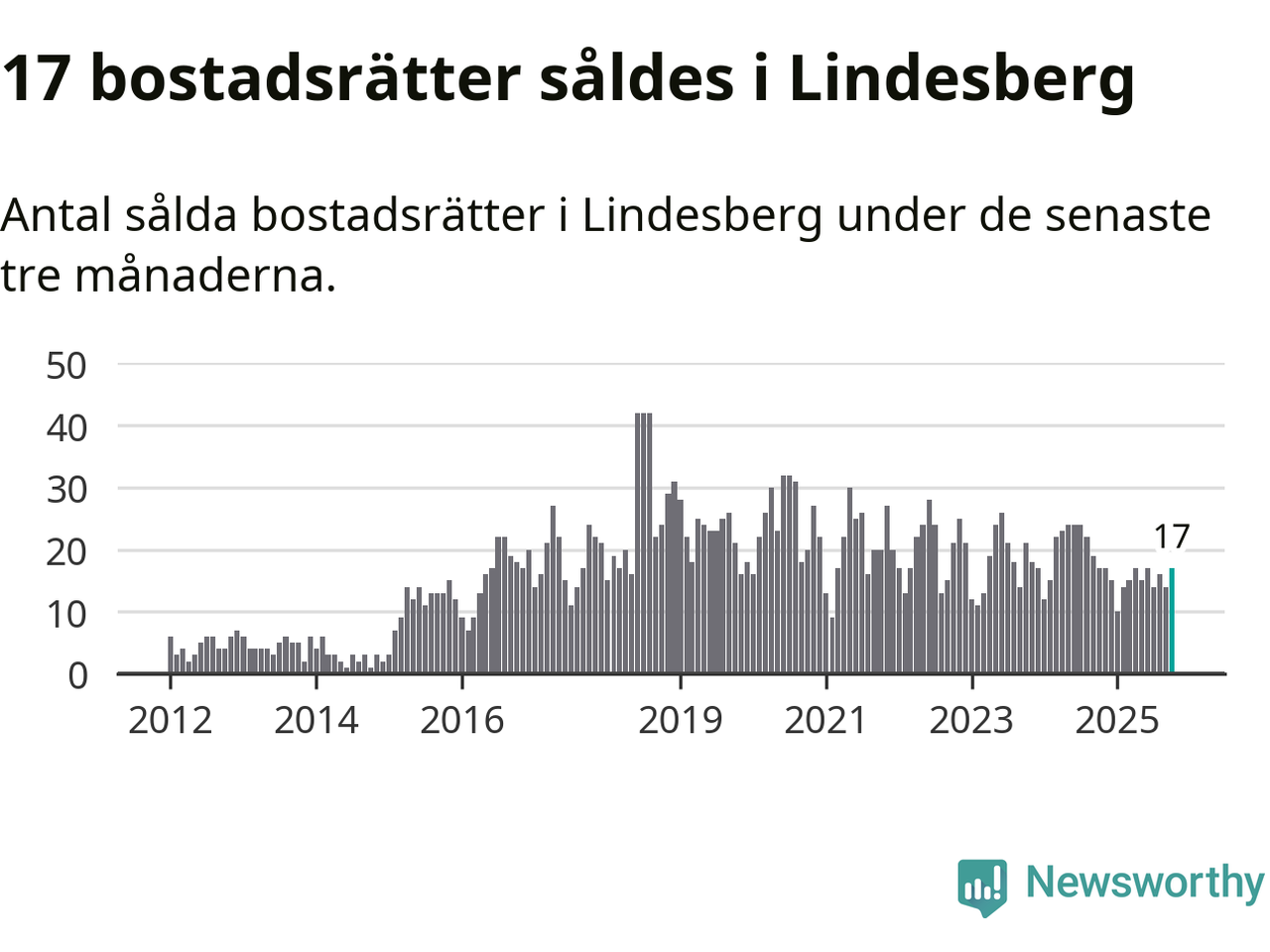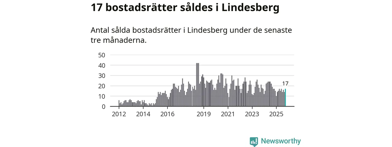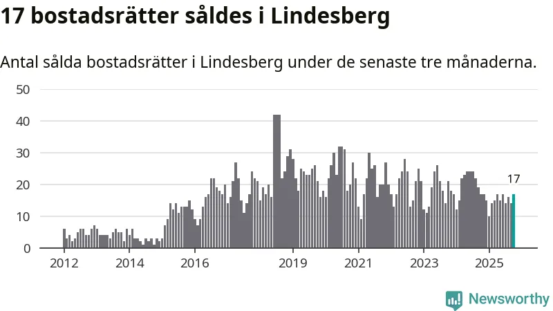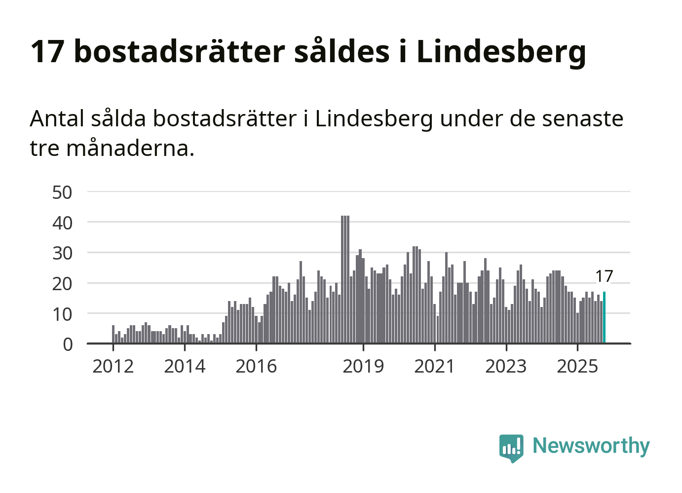 Mellan augusti och oktober gjordes sammanlagt 17 affärer med bostadsrätter i Lindesbergs kommun. Det är lika många affärer som vid motsvarande tid i fjol.