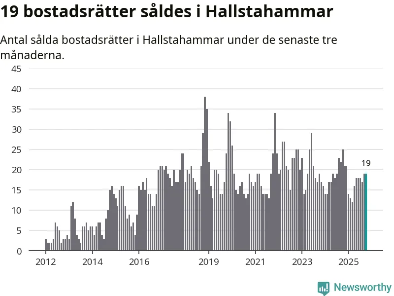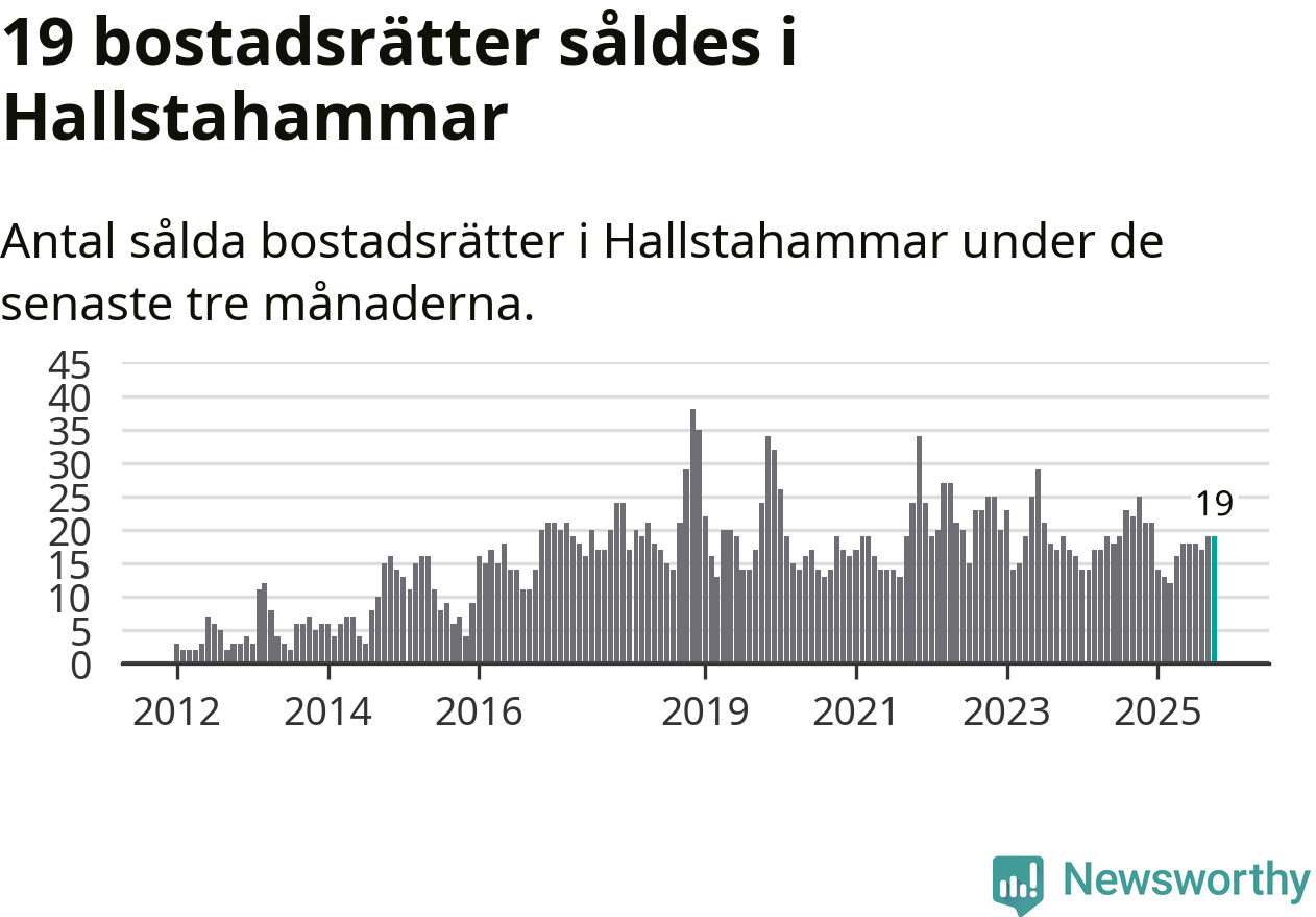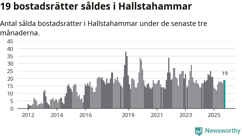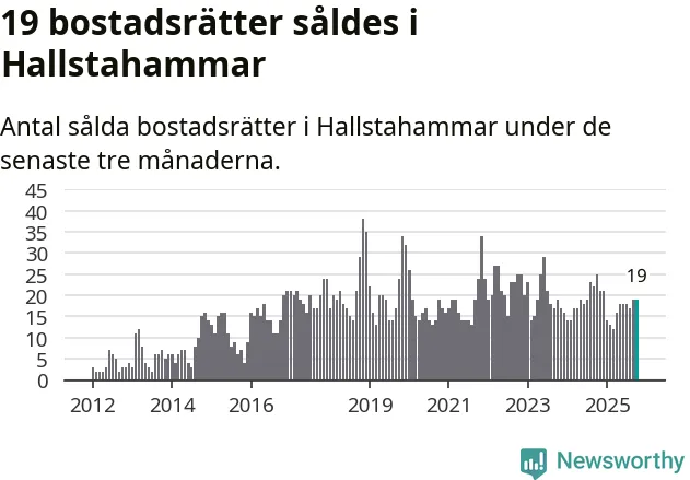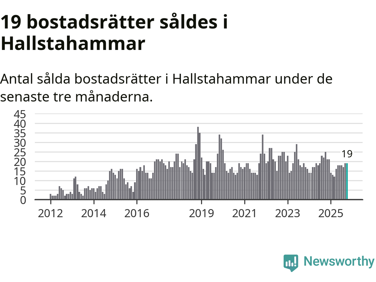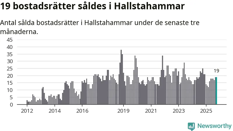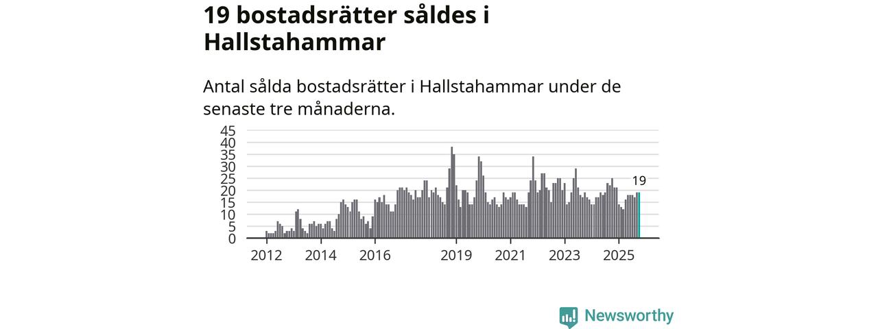 Mellan augusti och oktober gjordes sammanlagt 19 affärer med bostadsrätter i Hallstahammars kommun. Det kan jämföras med 25 vid motsvarande tid i fjol.