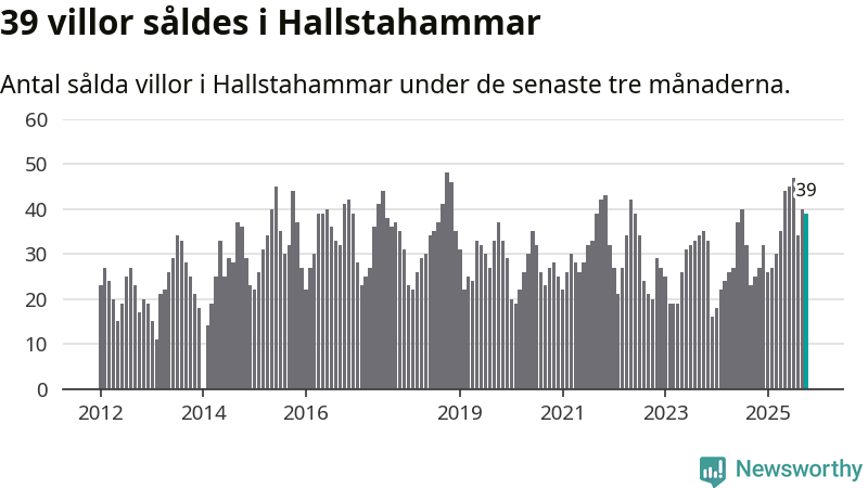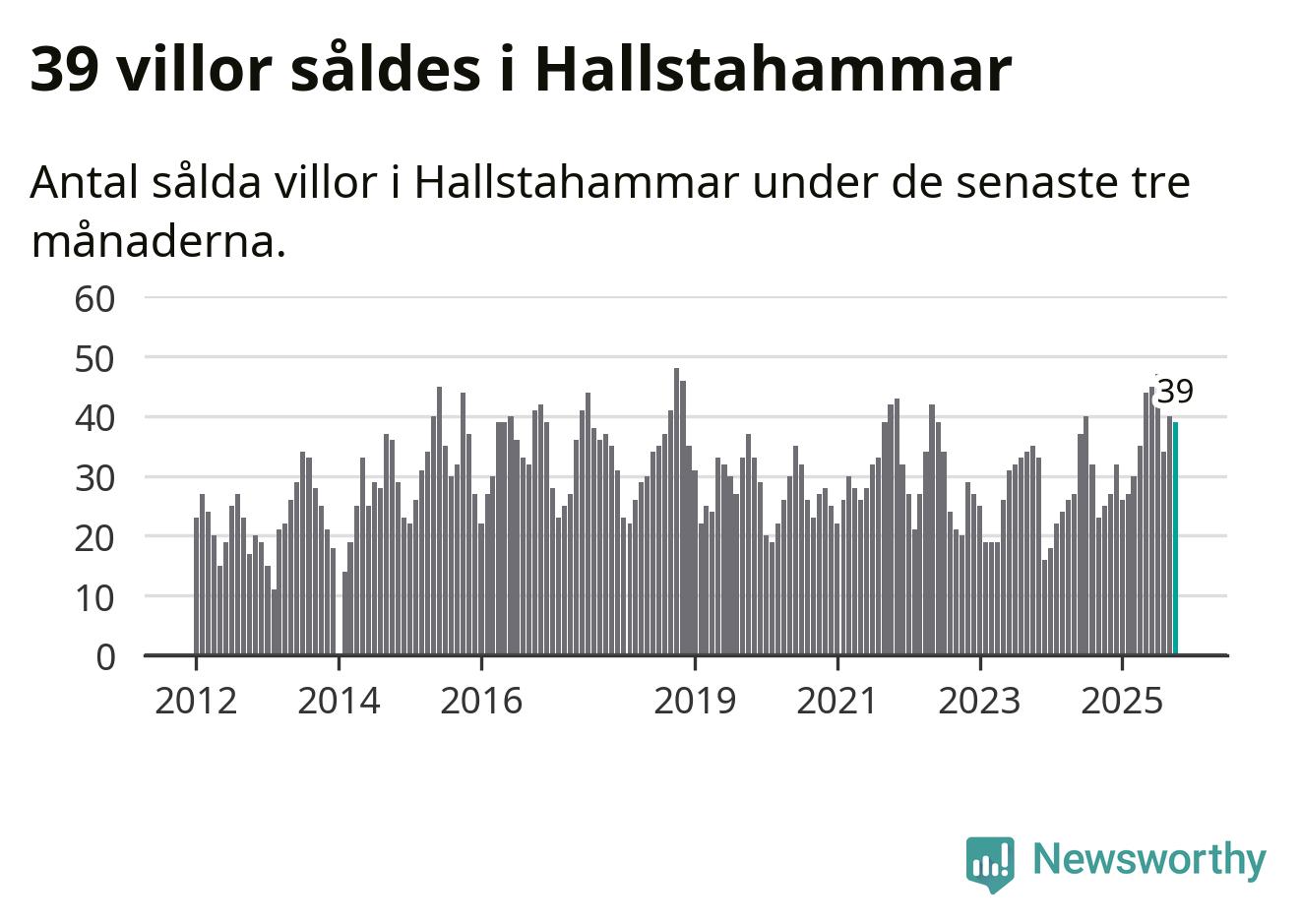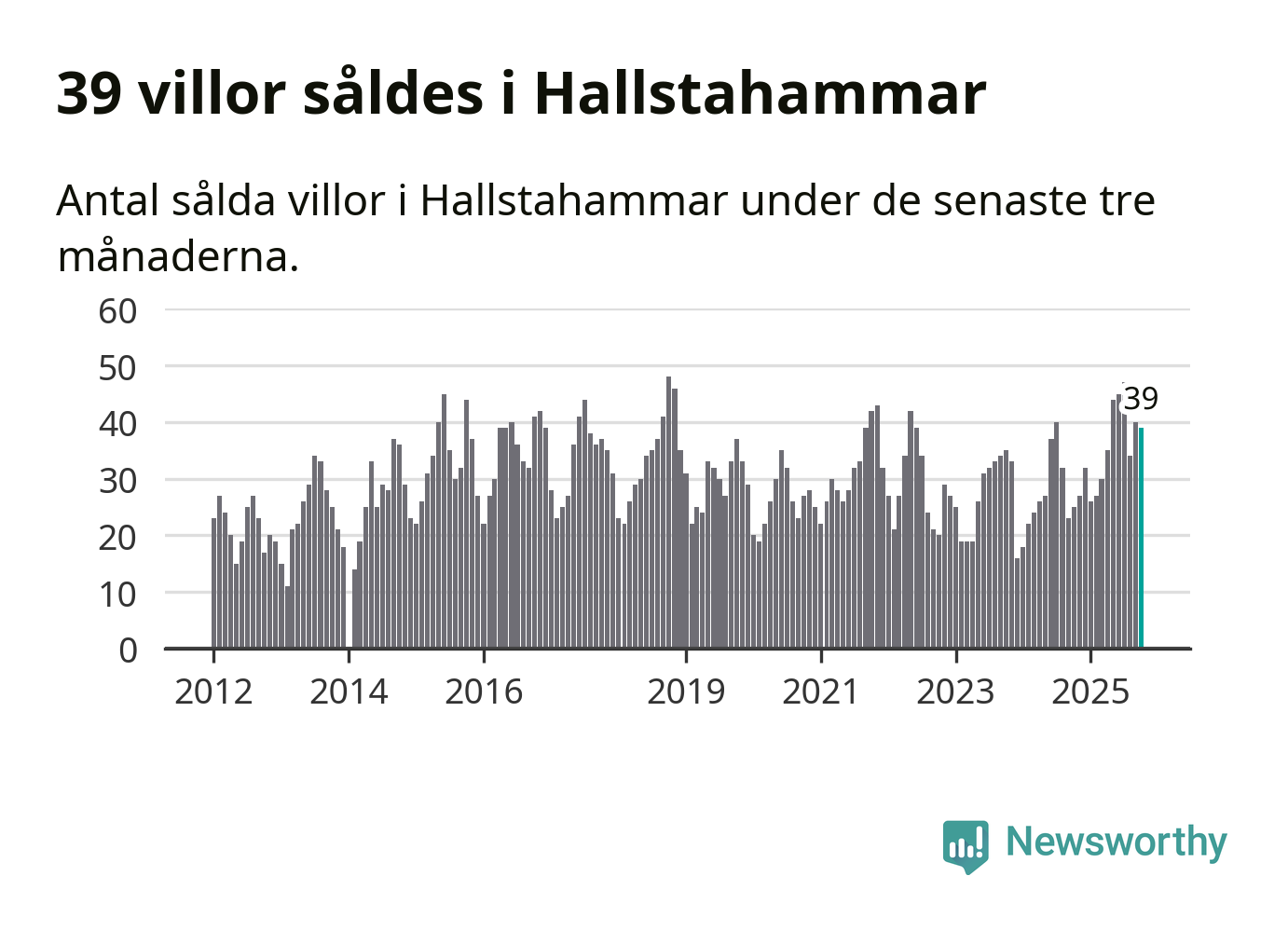 Mellan augusti och oktober gjordes sammanlagt 39 affärer med villor i Hallstahammars kommun. Det kan jämföras med 25 vid motsvarande tid i fjol.