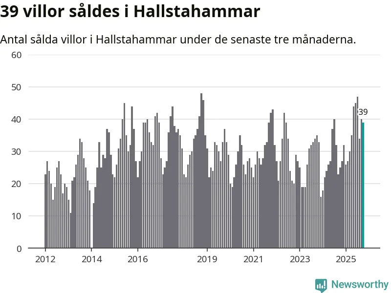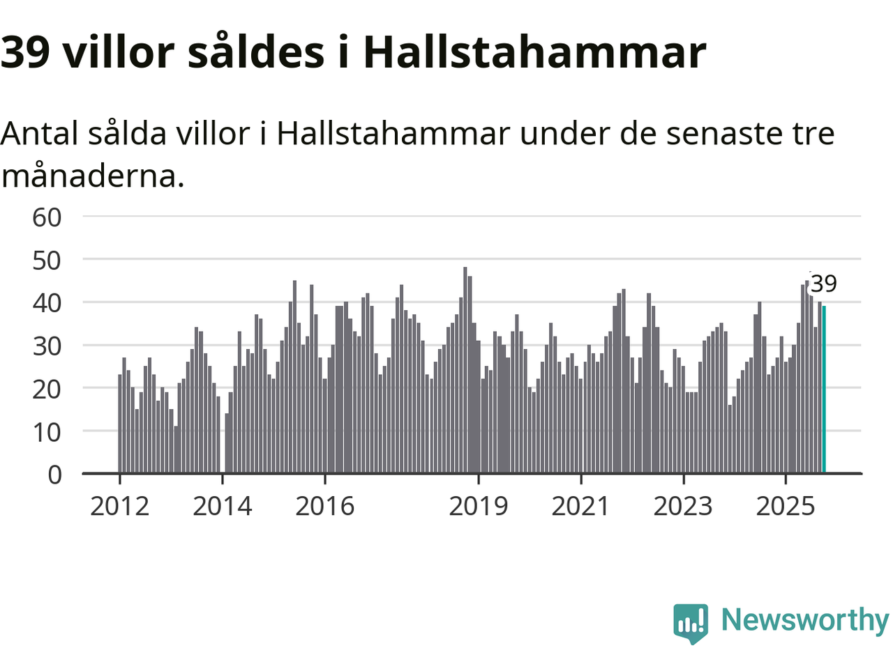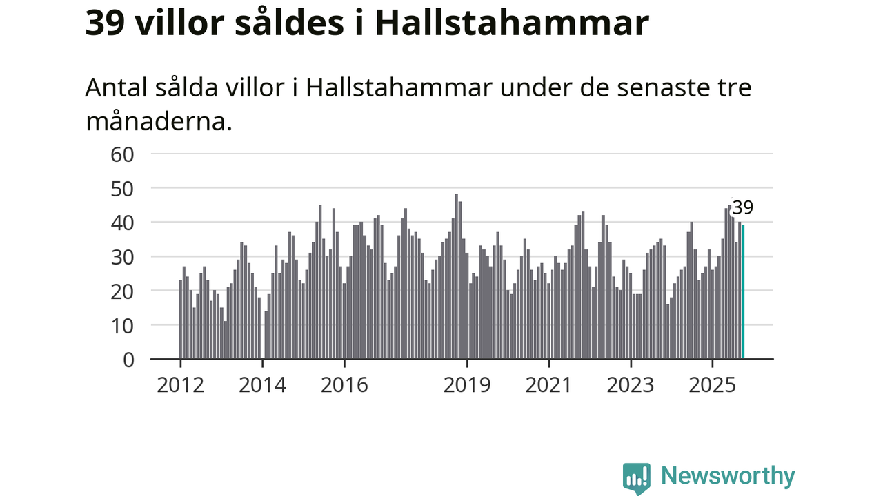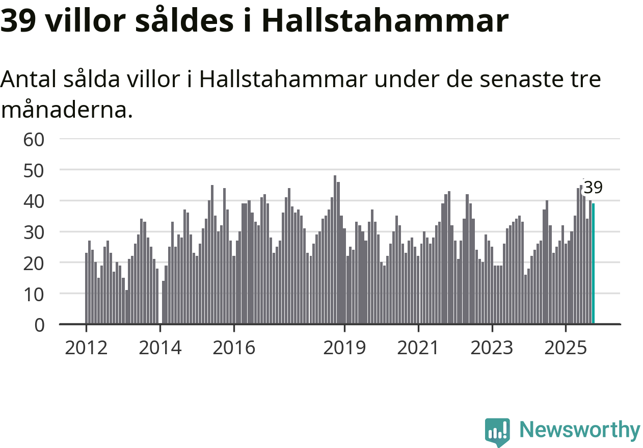 Mellan augusti och oktober gjordes sammanlagt 39 affärer med villor i Hallstahammars kommun. Det kan jämföras med 25 vid motsvarande tid i fjol.