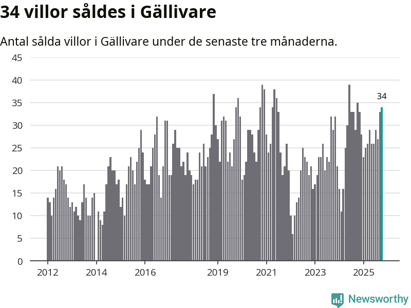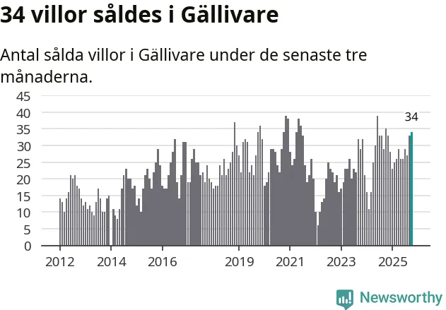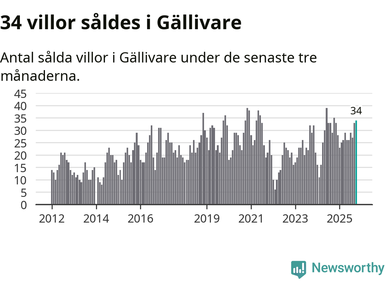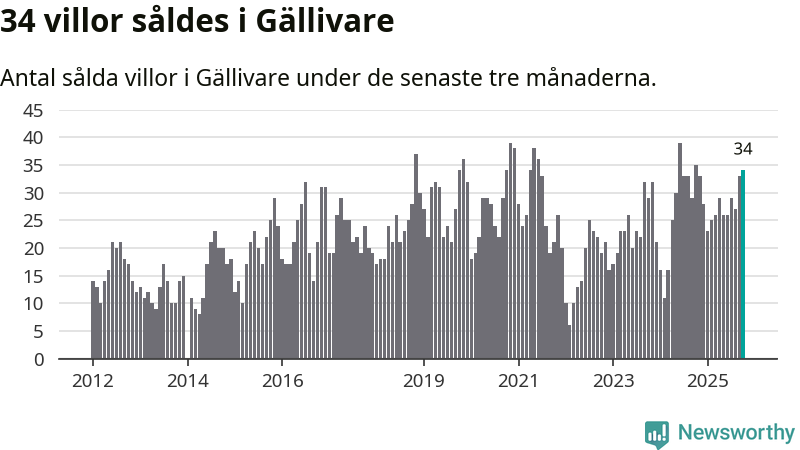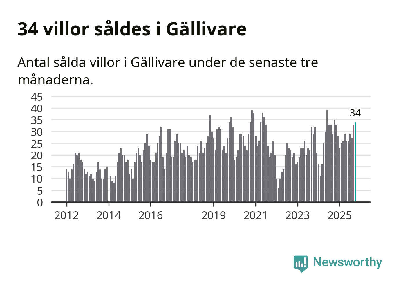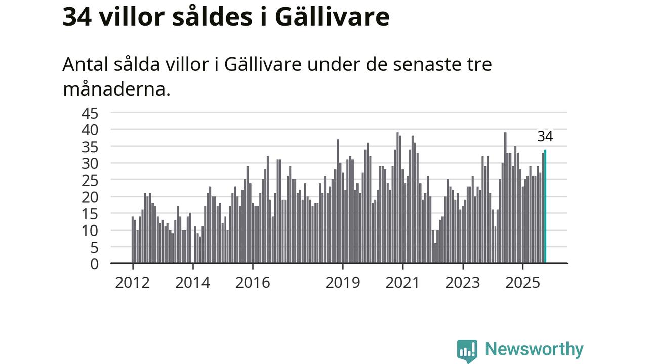 Mellan augusti och oktober gjordes sammanlagt 34 affärer med villor i Gällivare kommun. Det kan jämföras med 35 vid motsvarande tid i fjol.