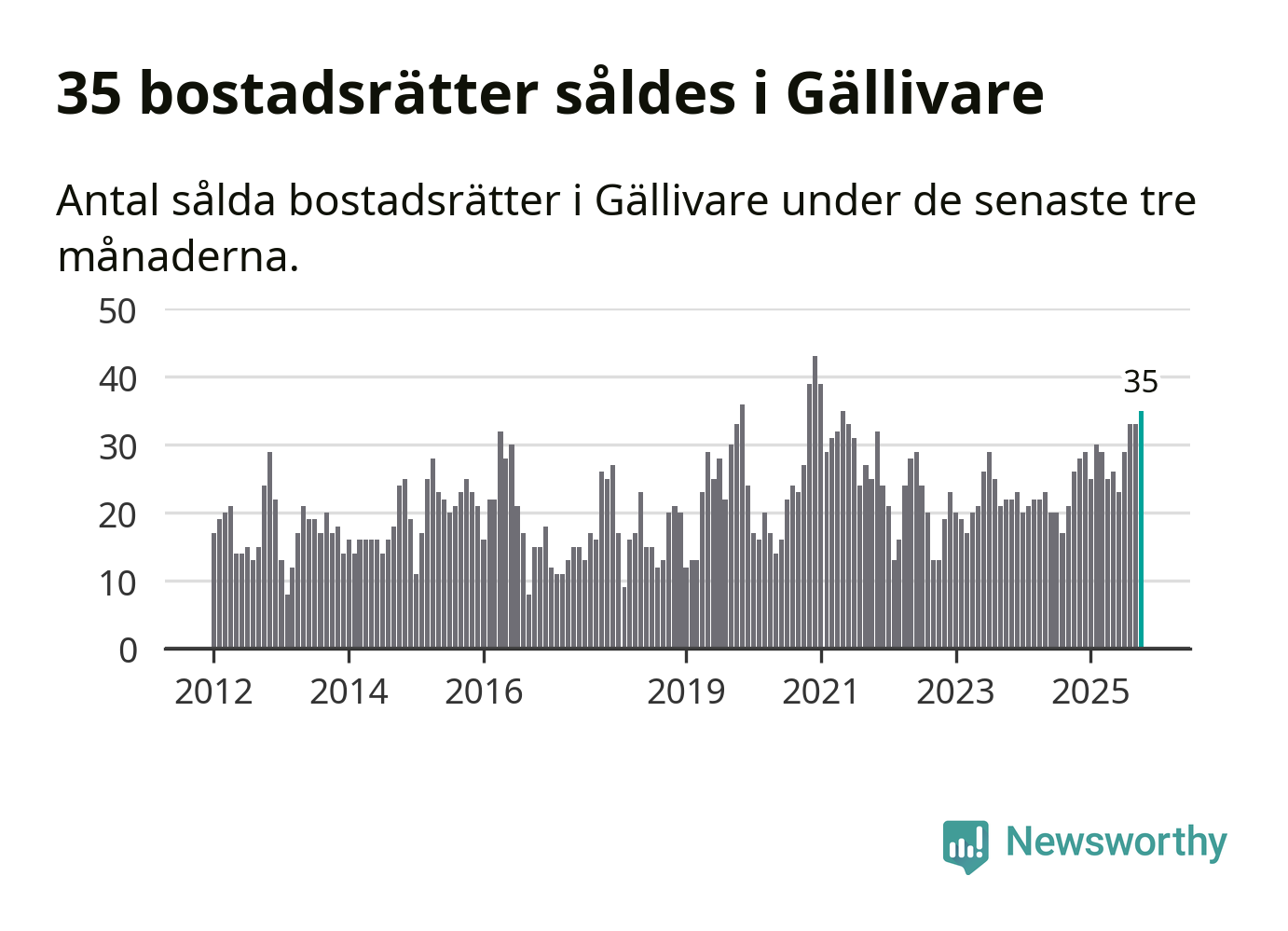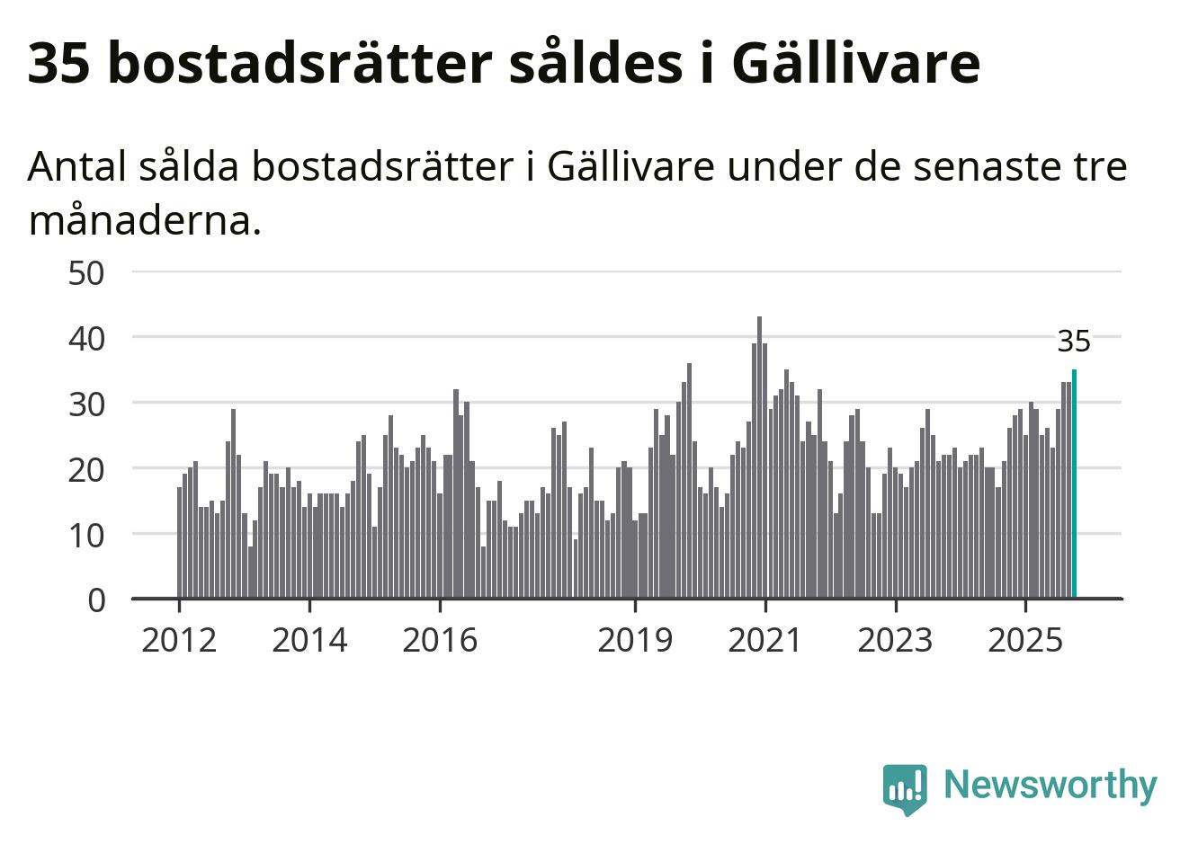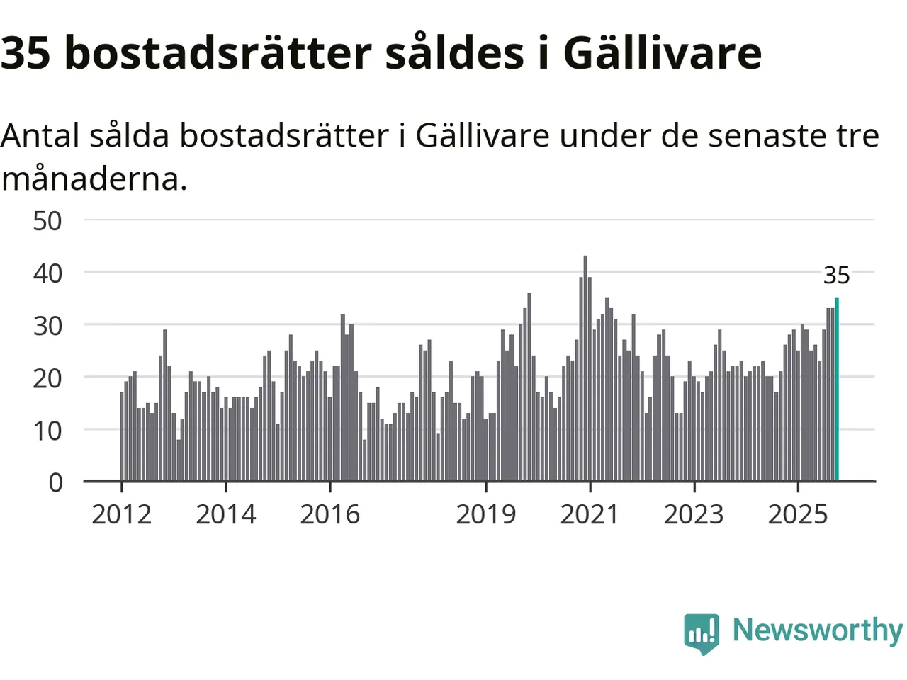 Mellan augusti och oktober såldes 35 bostadsrätter i Gällivare kommun. Det är fler än någon tremånadersperiod sedan 2021.