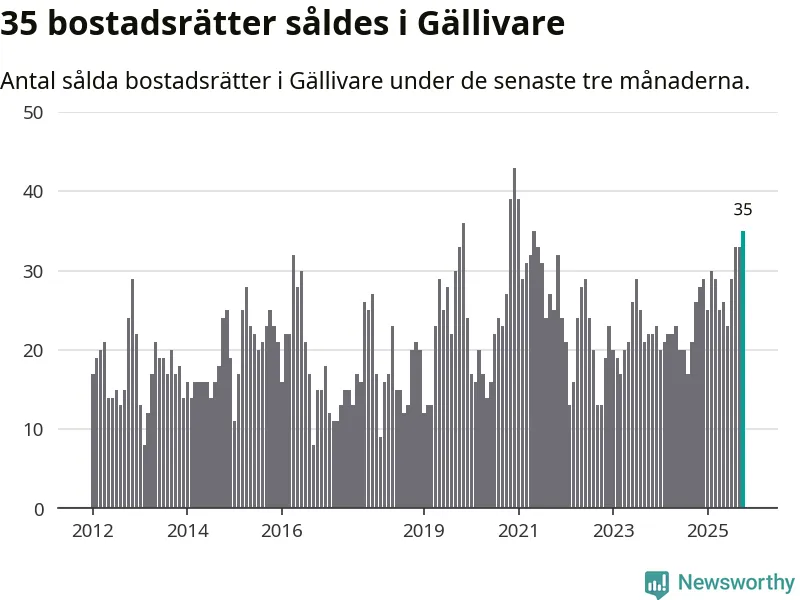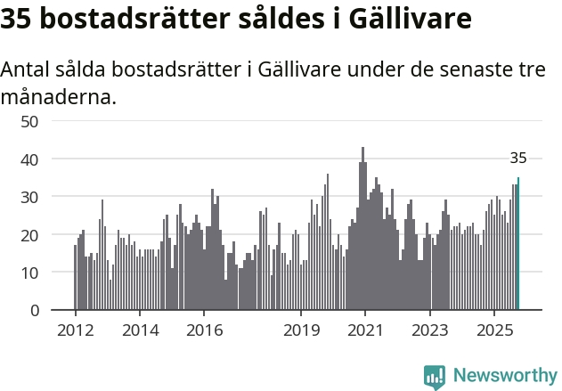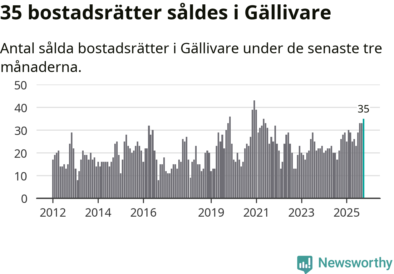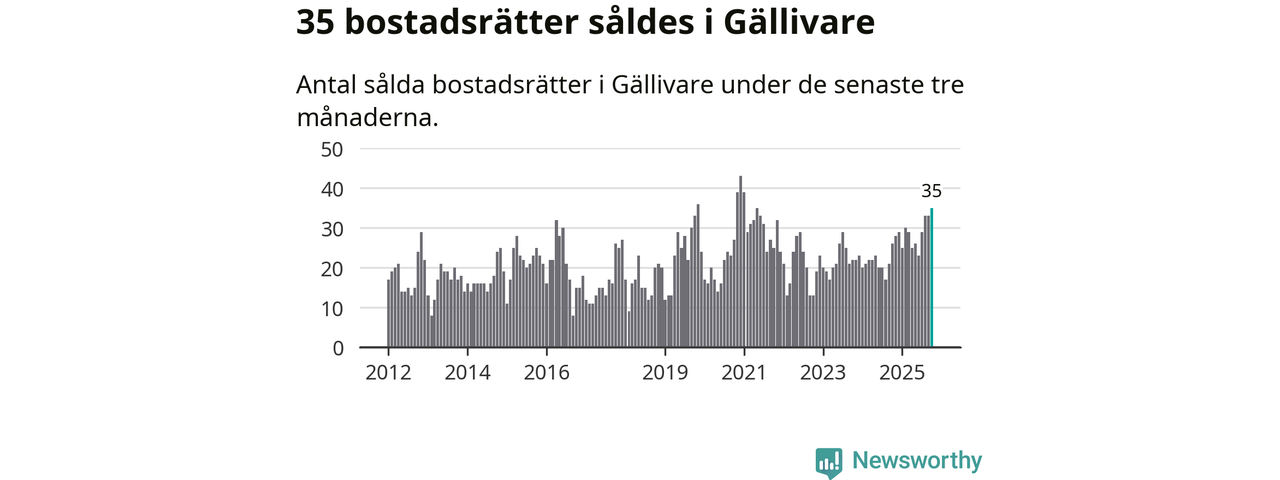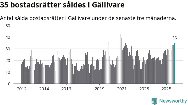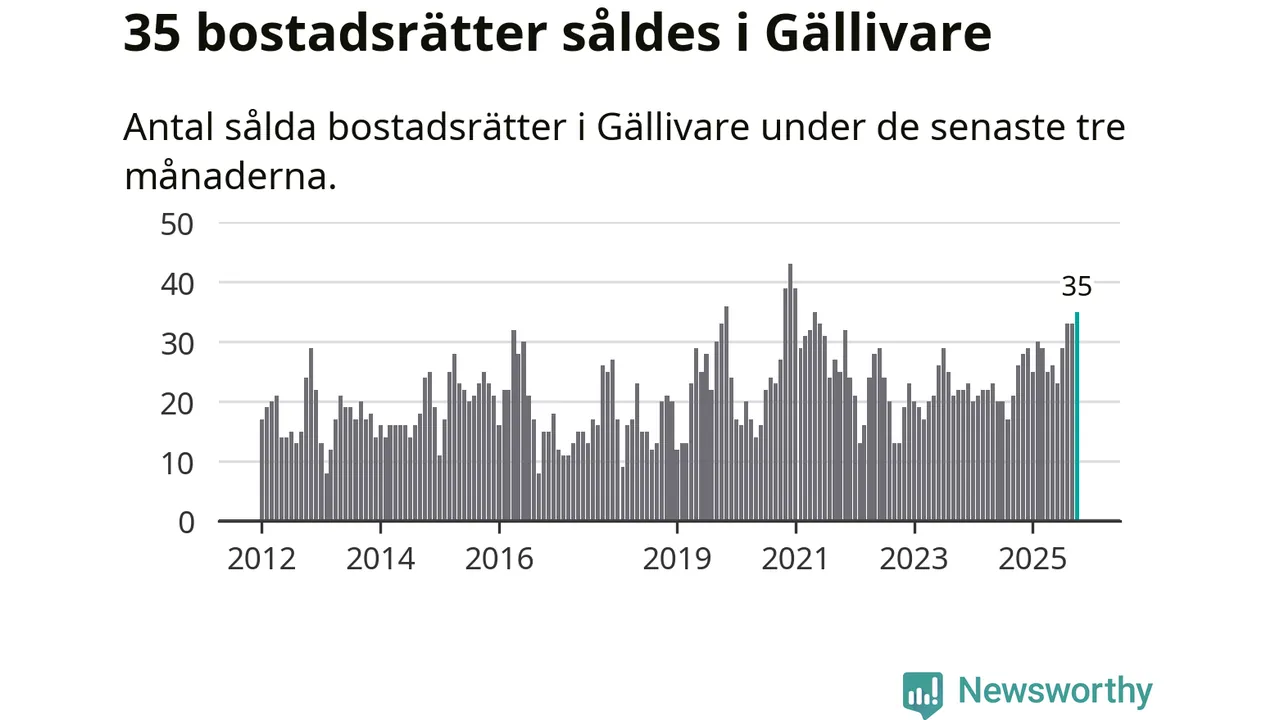Mellan augusti och oktober såldes 35 bostadsrätter i Gällivare kommun. Det är fler än någon tremånadersperiod sedan 2021.