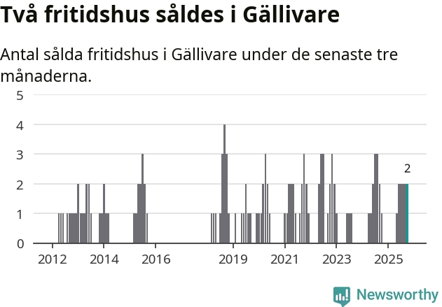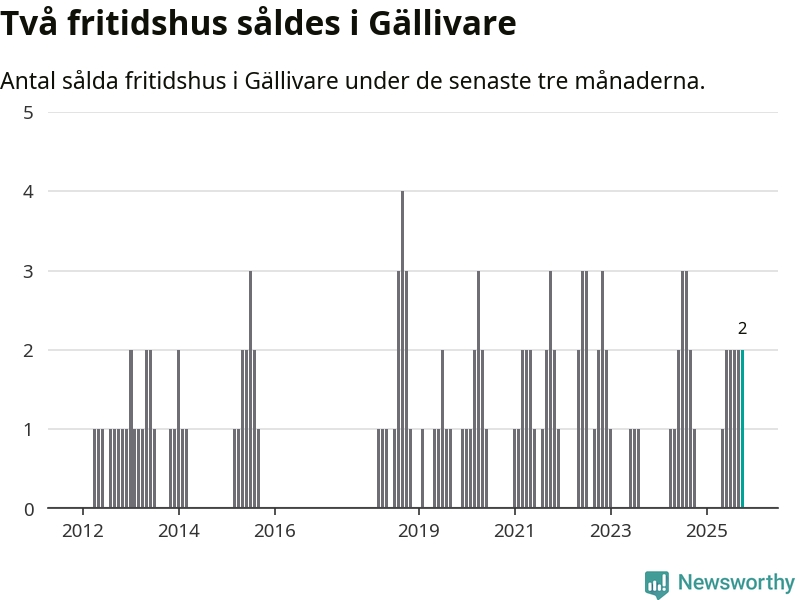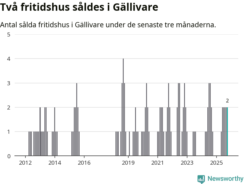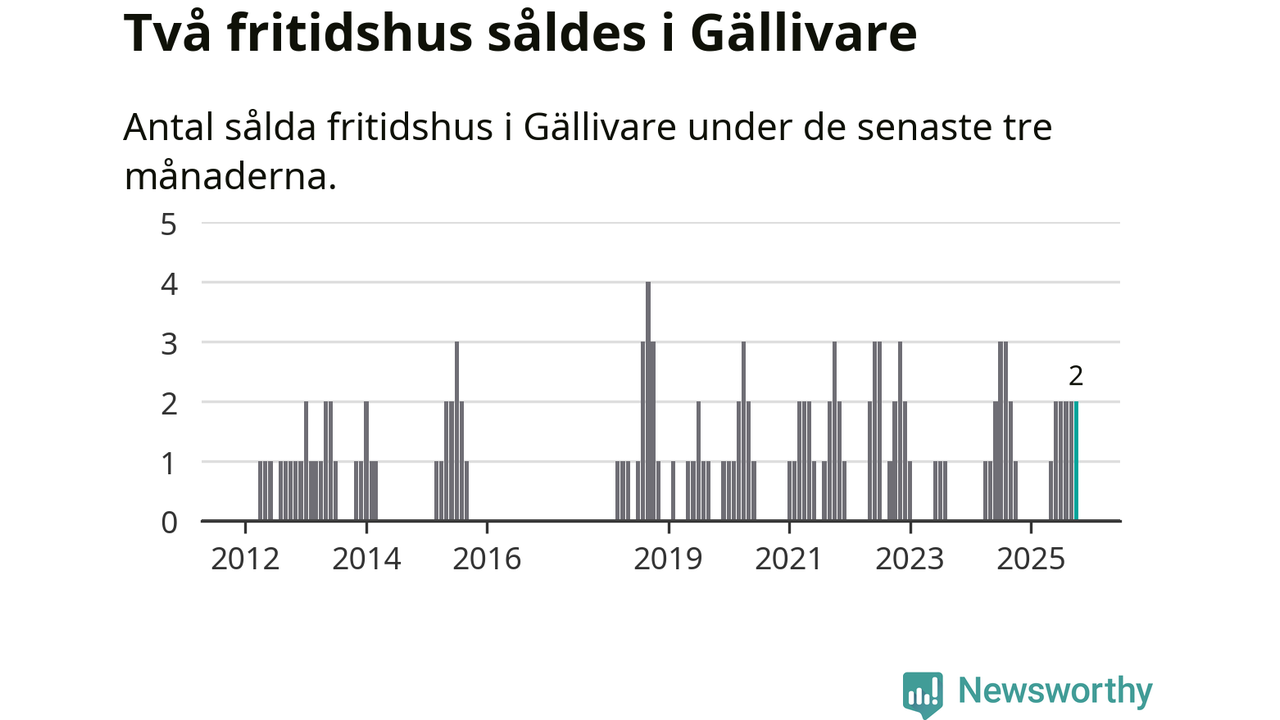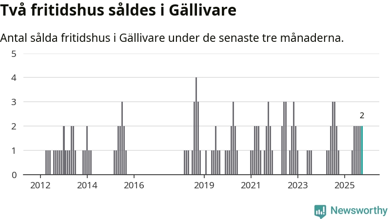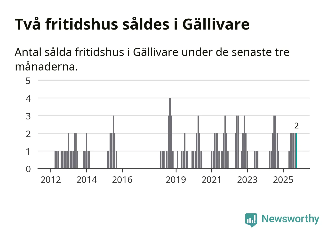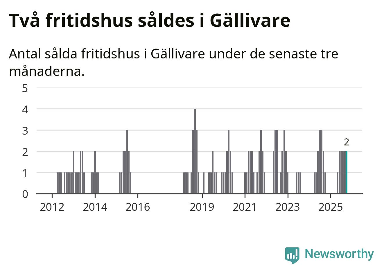 Mellan augusti och oktober gjordes sammanlagt två affärer med fritidshus i Gällivare kommun. Det kan jämföras med ett vid motsvarande tid i fjol.