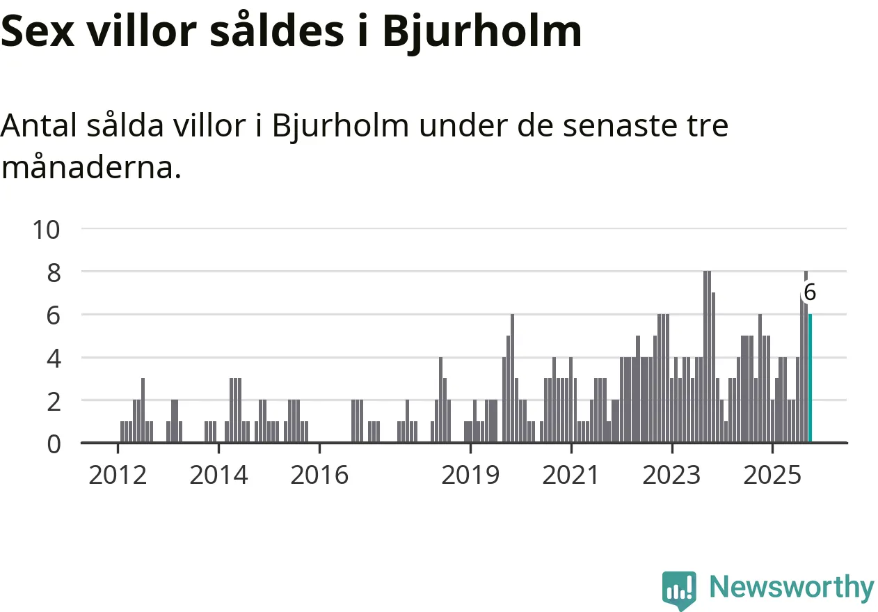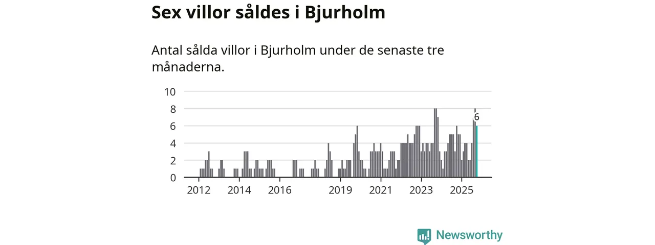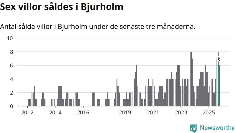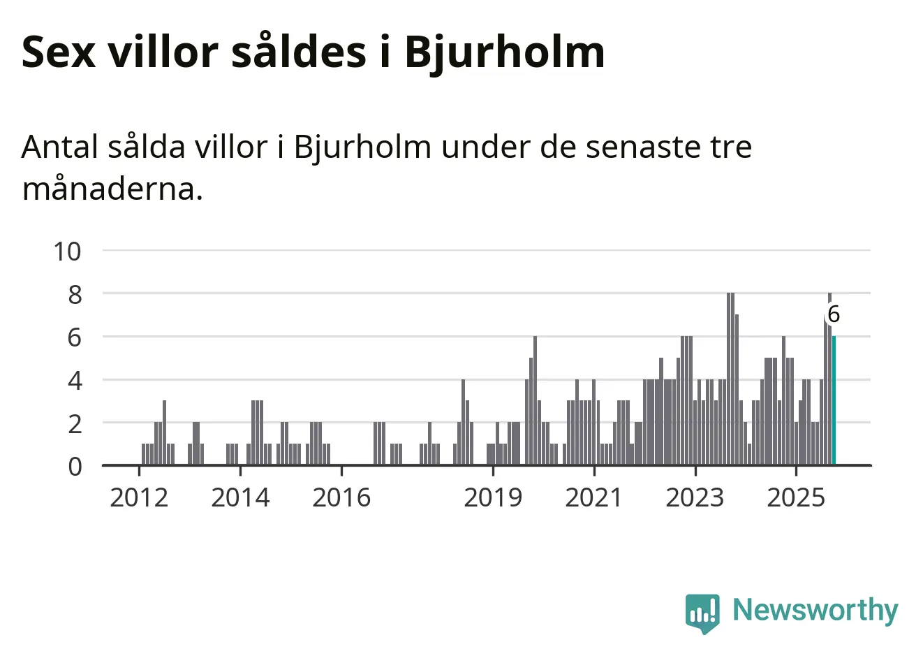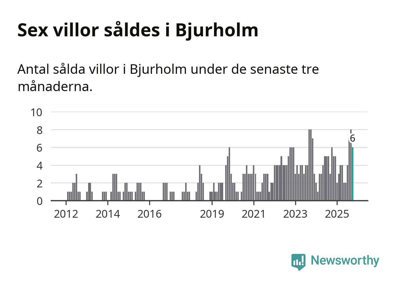 Mellan augusti och oktober gjordes sammanlagt sex affärer med villor i Bjurholms kommun. Det är lika många affärer som vid motsvarande tid i fjol.