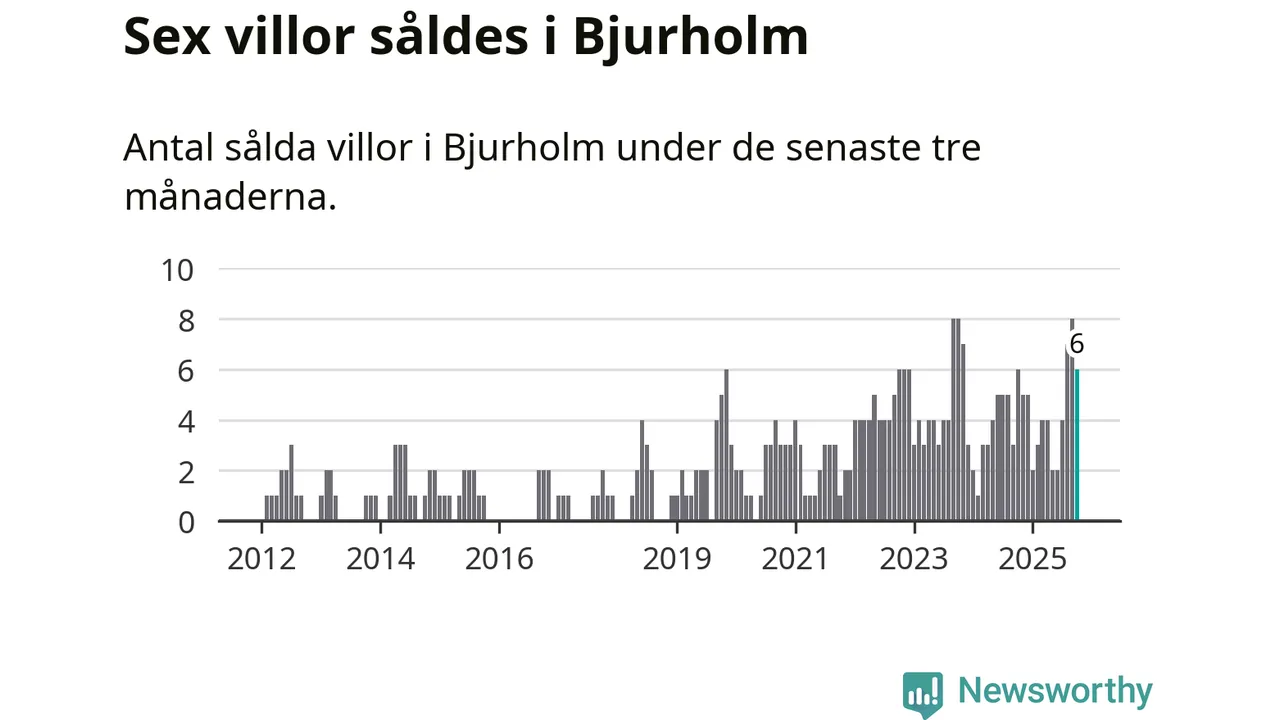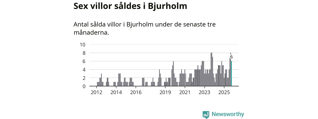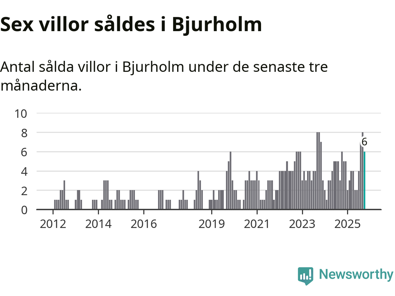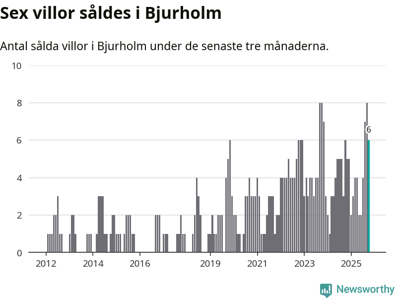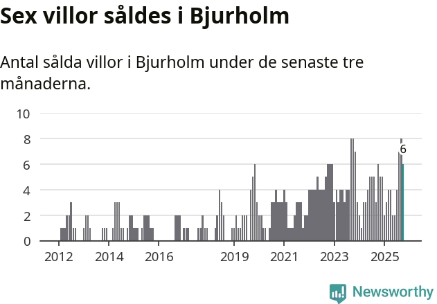 Mellan augusti och oktober gjordes sammanlagt sex affärer med villor i Bjurholms kommun. Det är lika många affärer som vid motsvarande tid i fjol.