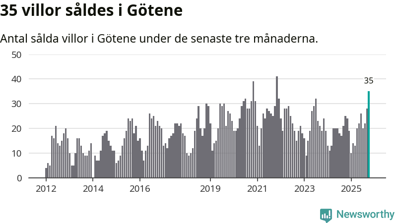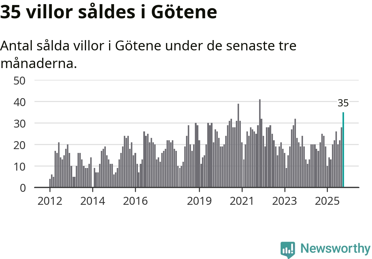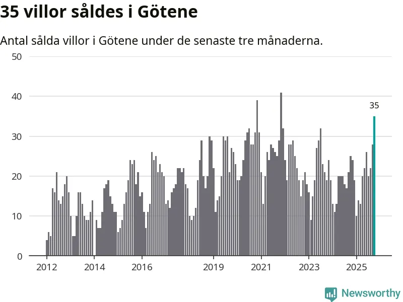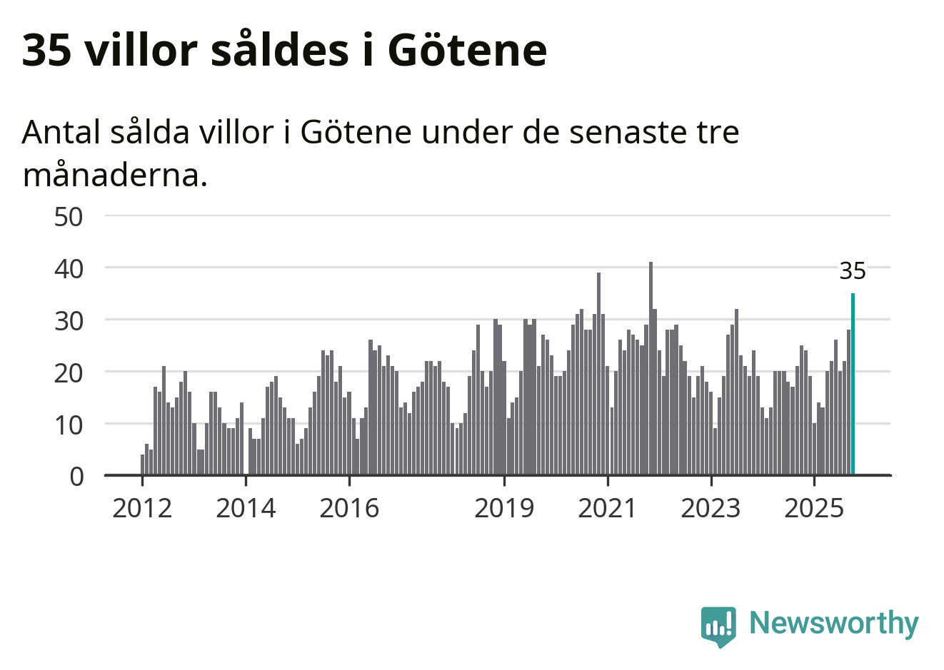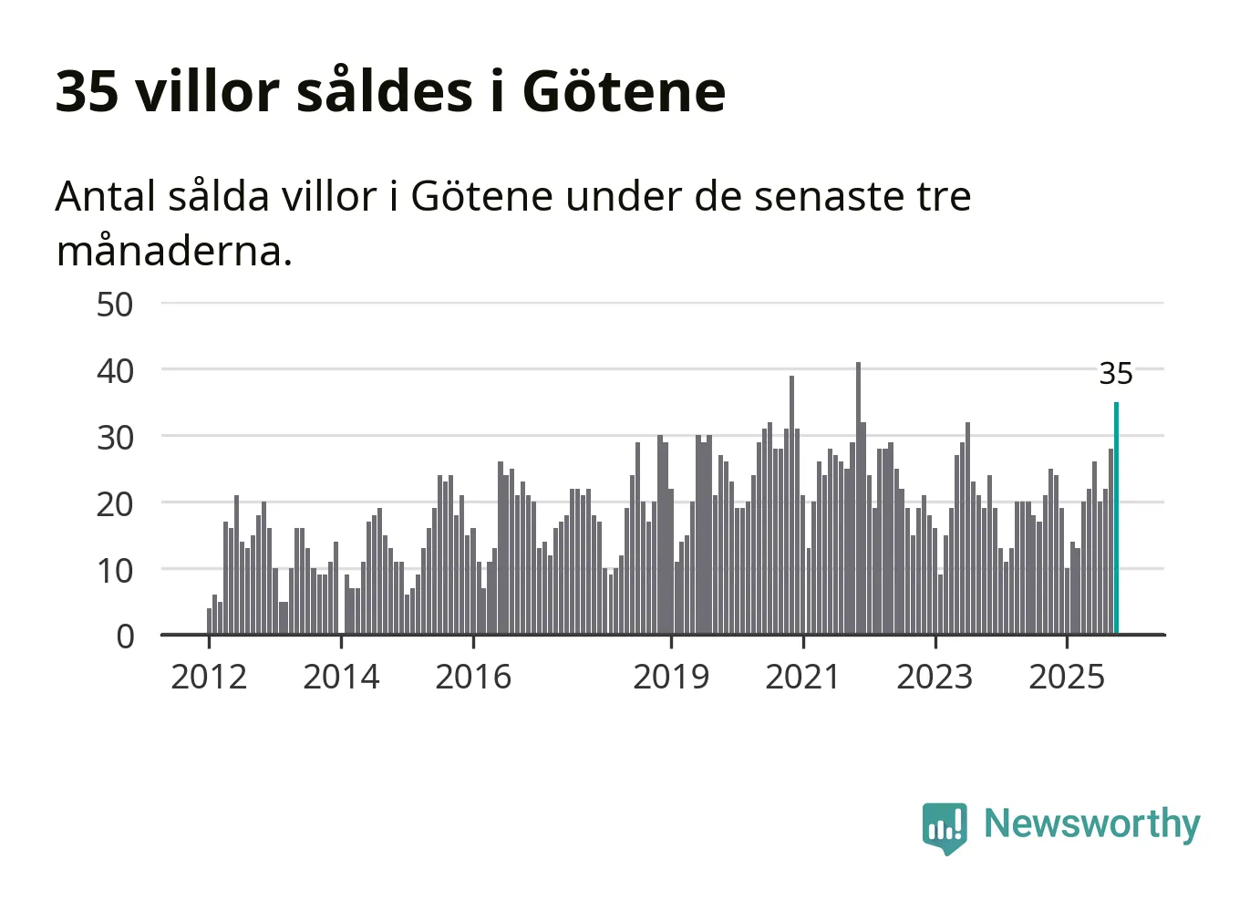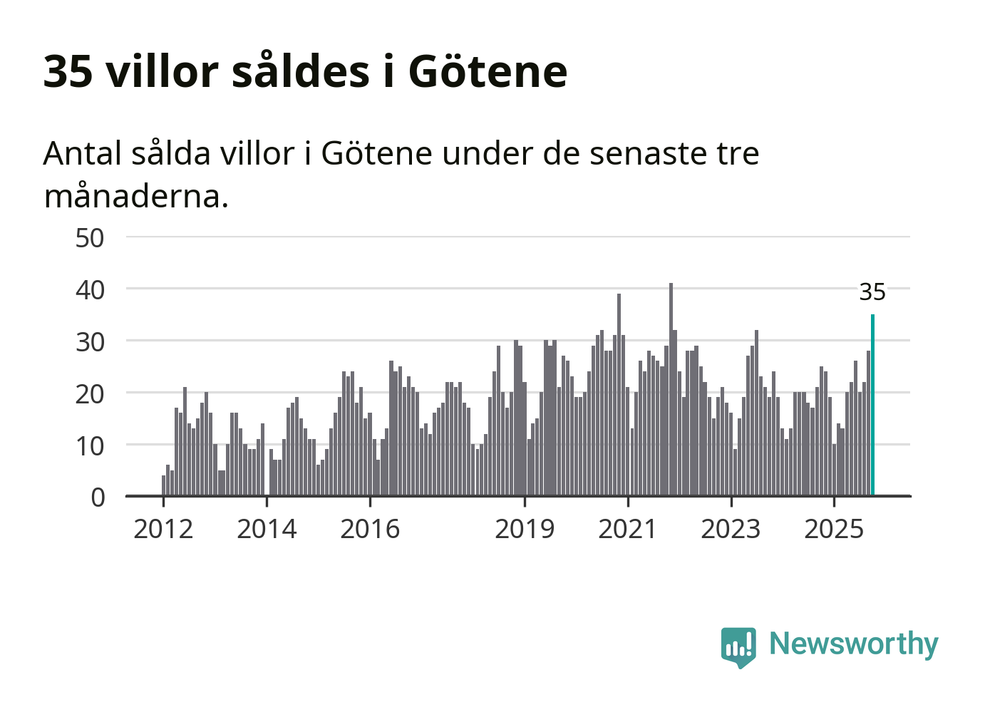 Mellan augusti och oktober såldes 35 villor i Götene kommun. Det är fler än någon tremånadersperiod sedan 2021.