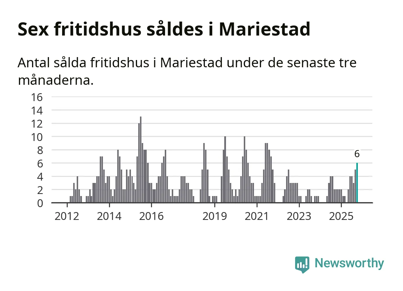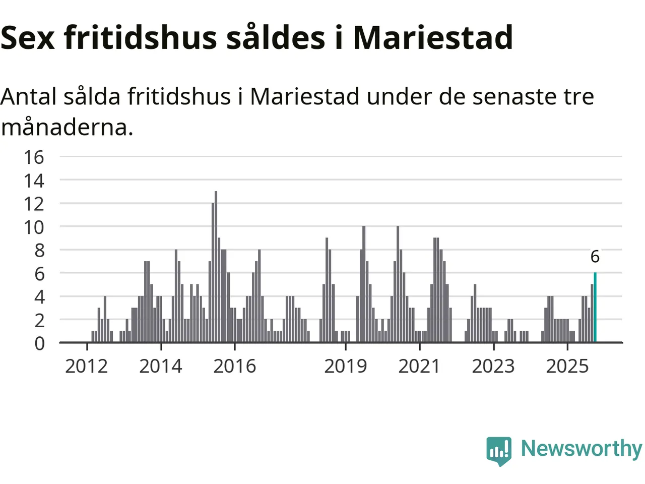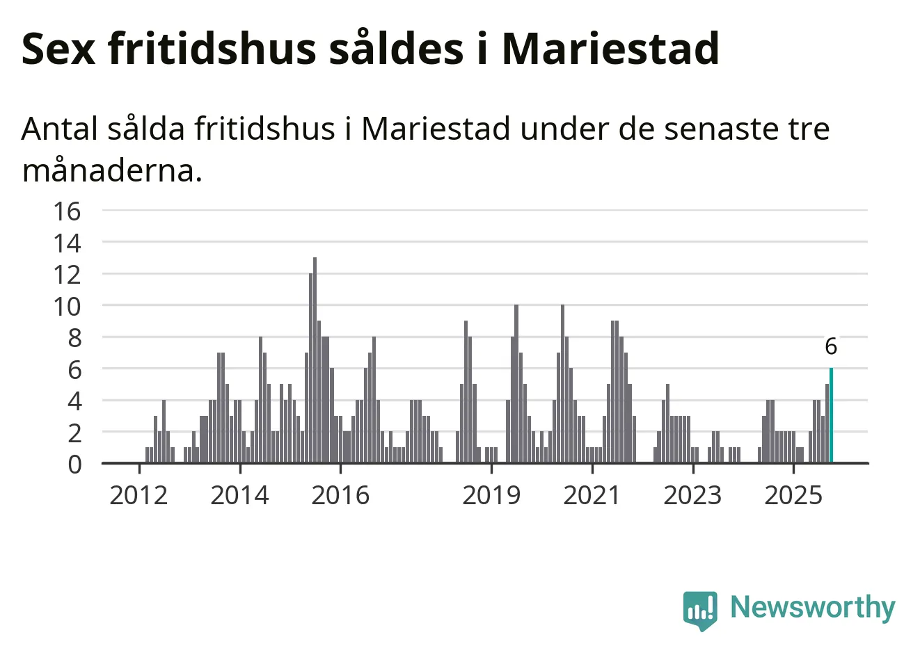 Mellan augusti och oktober gjordes sammanlagt sex affärer med fritidshus i Mariestads kommun. Det kan jämföras med två vid motsvarande tid i fjol.