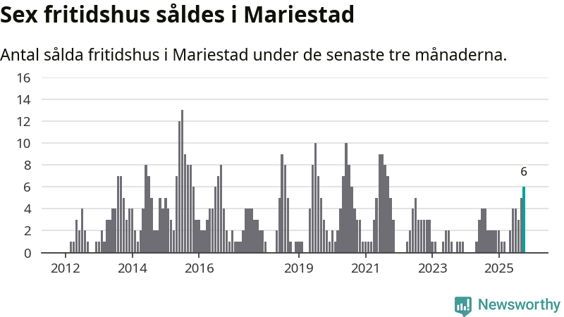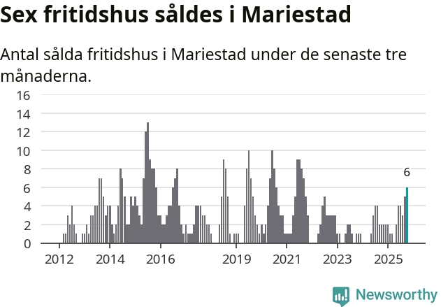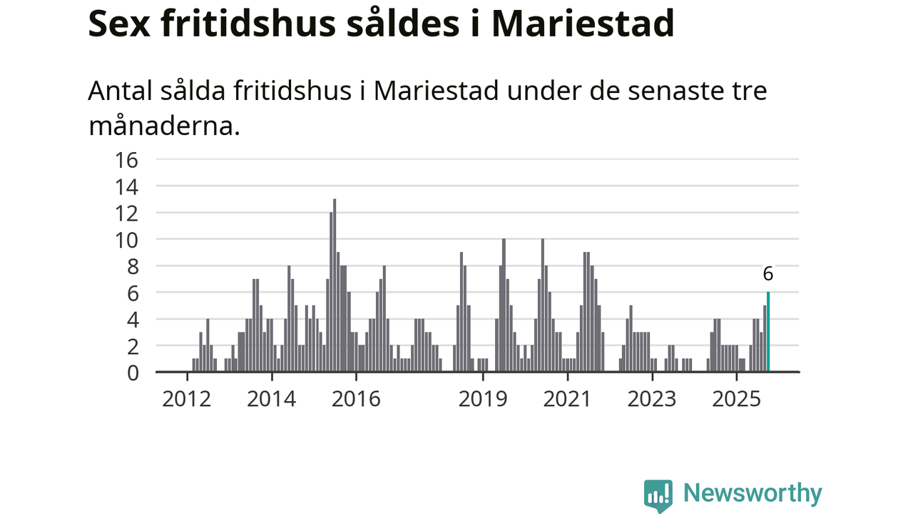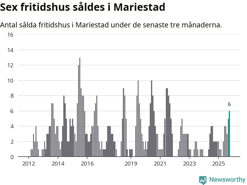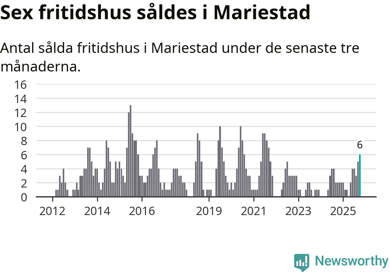 Mellan augusti och oktober gjordes sammanlagt sex affärer med fritidshus i Mariestads kommun. Det kan jämföras med två vid motsvarande tid i fjol.