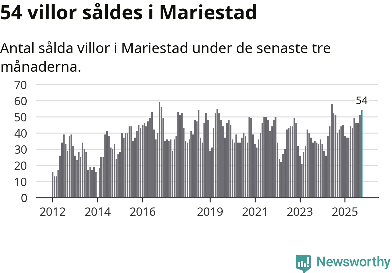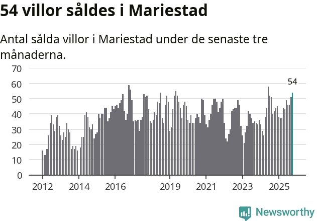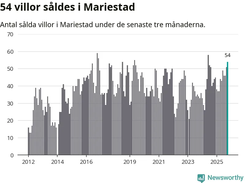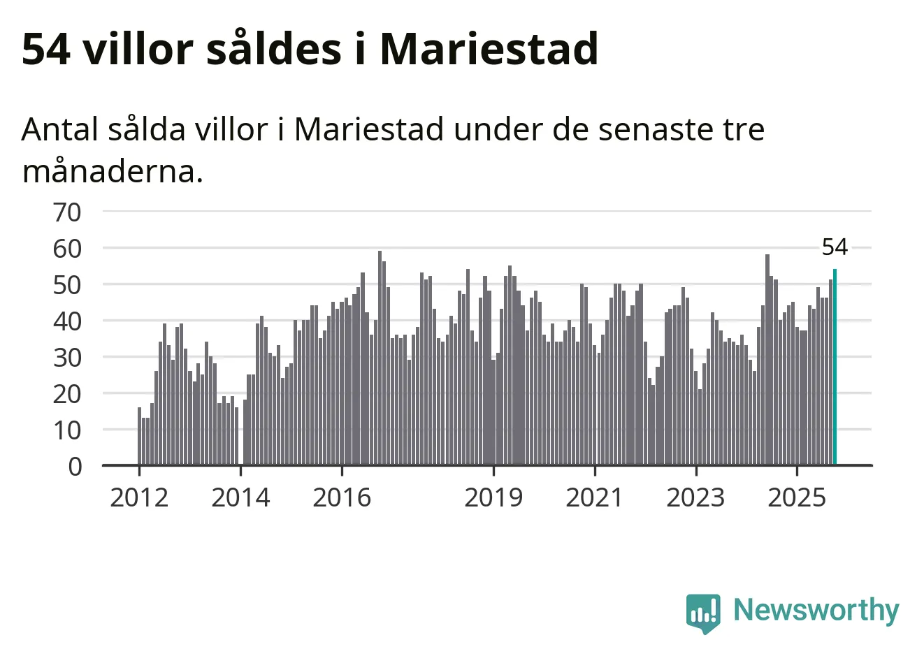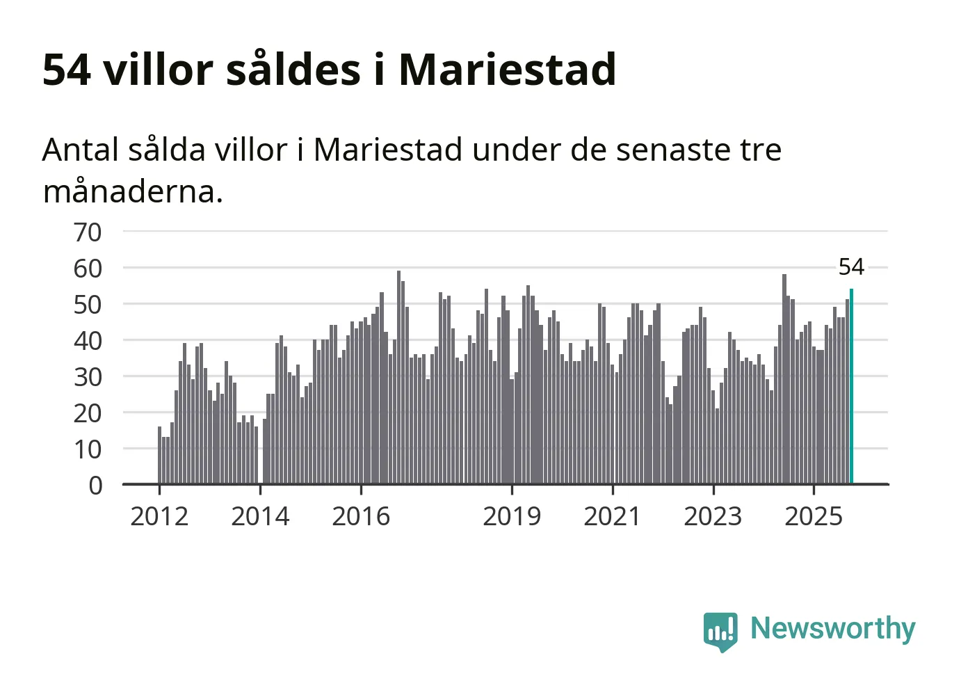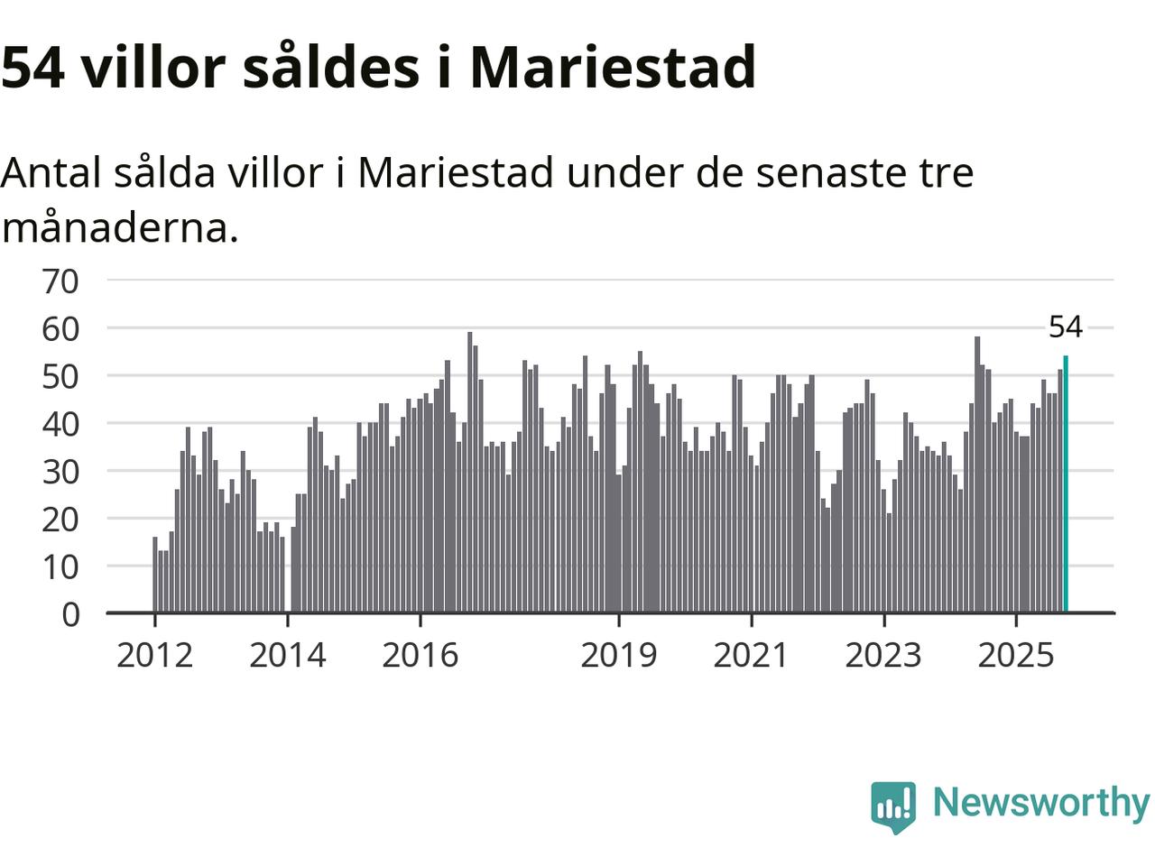 Sammanlagt såldes 54 villor i Mariestads kommun mellan augusti och oktober till ett genomsnittligt pris på 2,5 miljoner kronor. I fjol gjordes 42 affärer vid den här tiden på året.