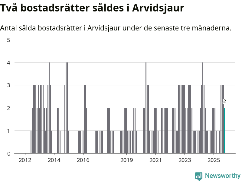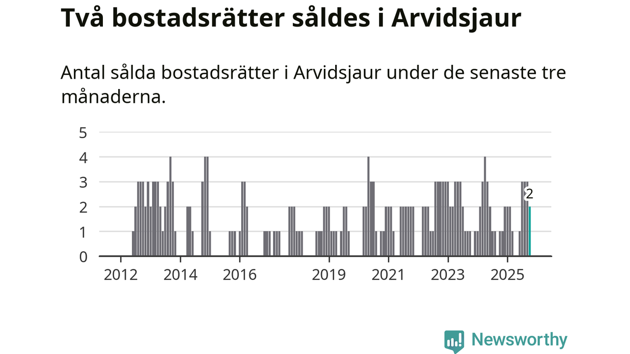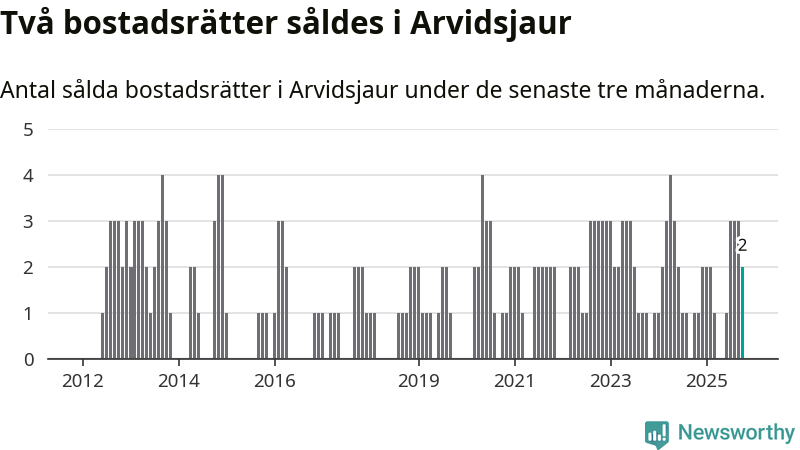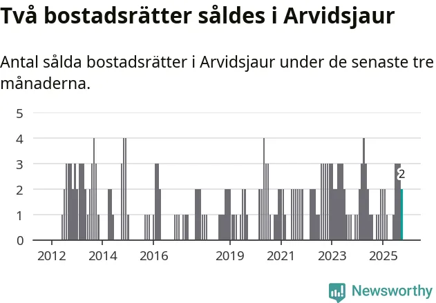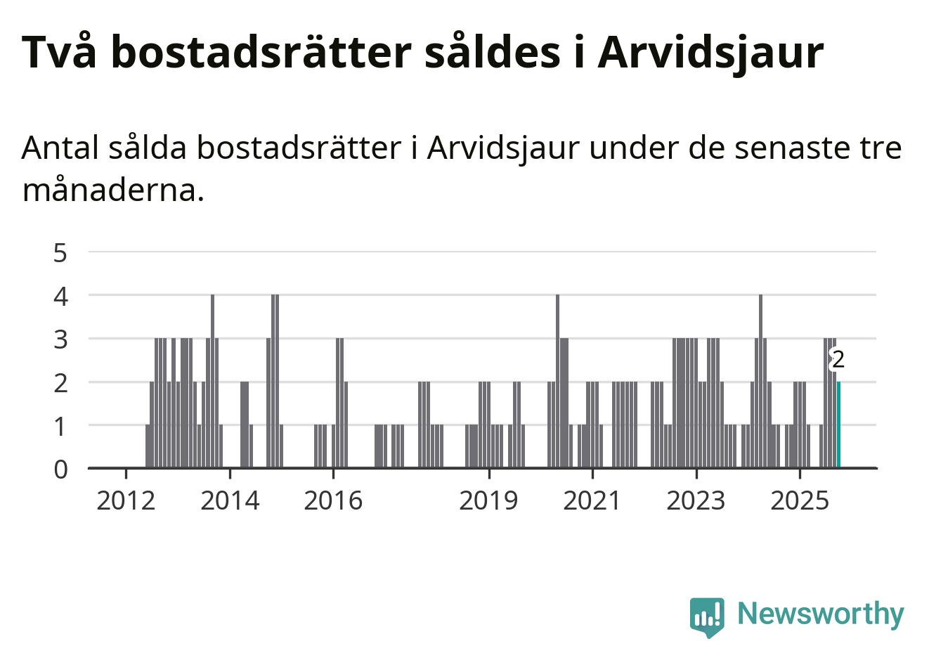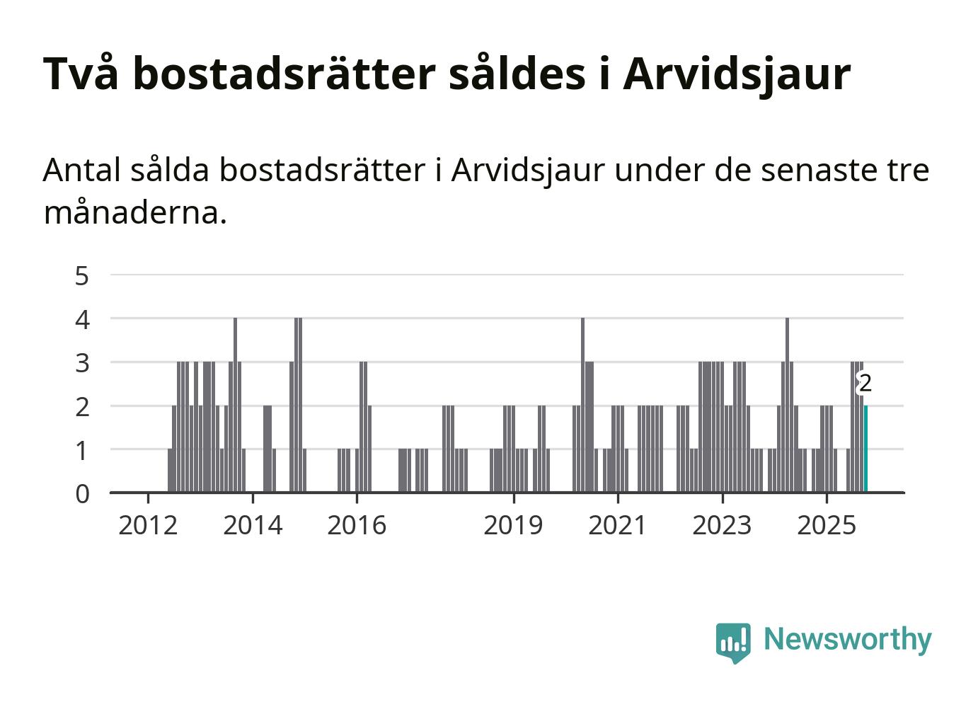 Mellan augusti och oktober gjordes sammanlagt två affärer med bostadsrätter i Arvidsjaurs kommun. Det kan jämföras med ett vid motsvarande tid i fjol.
