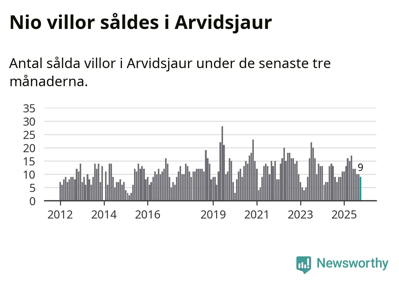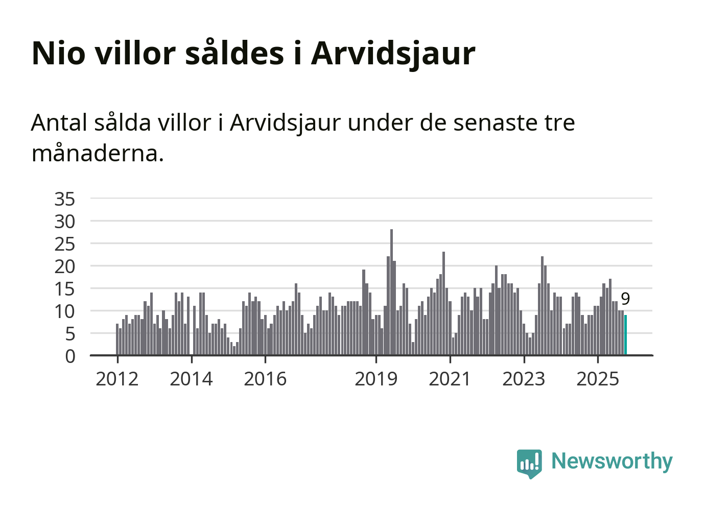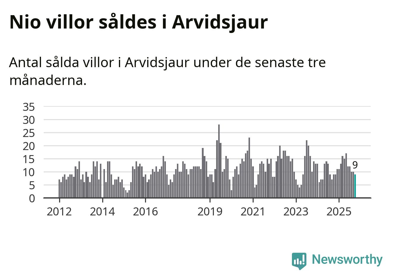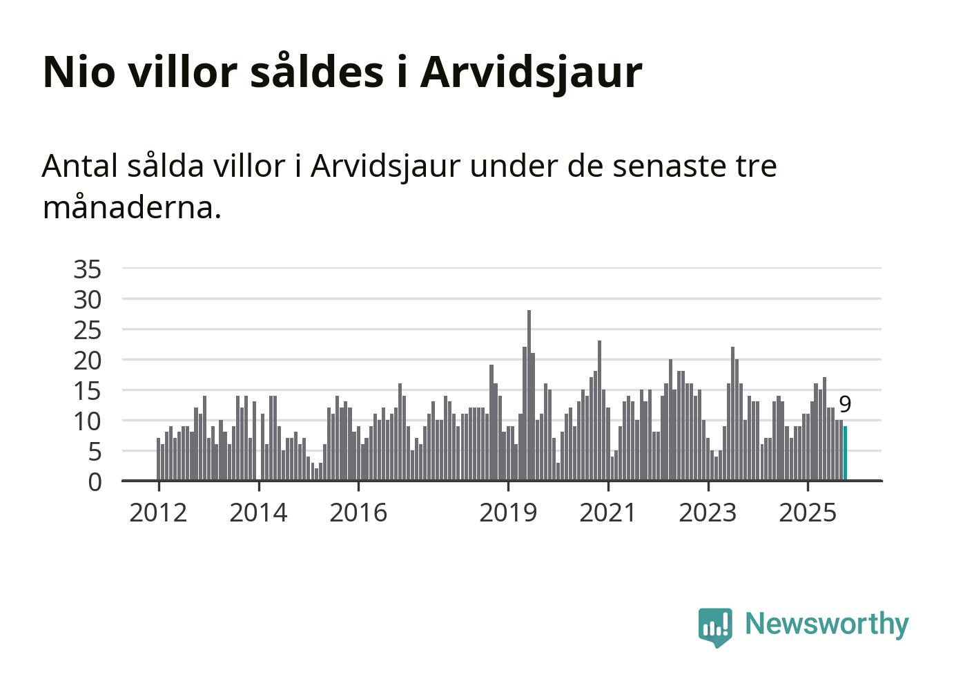 Mellan augusti och oktober gjordes sammanlagt nio affärer med villor i Arvidsjaurs kommun. Det är lika många affärer som vid motsvarande tid i fjol.