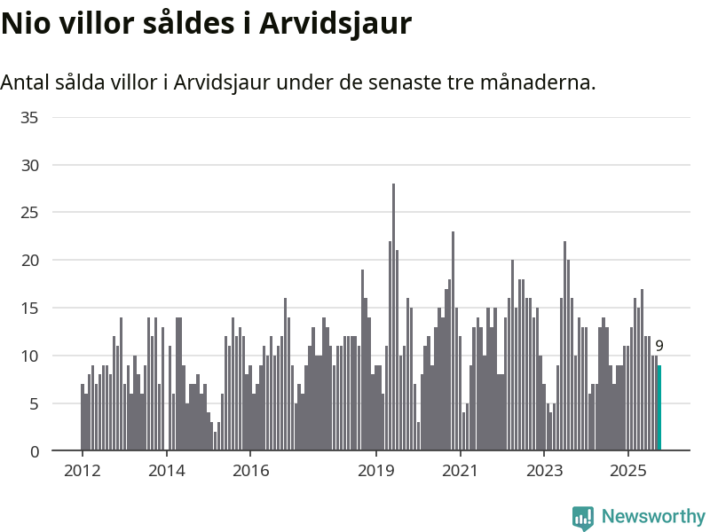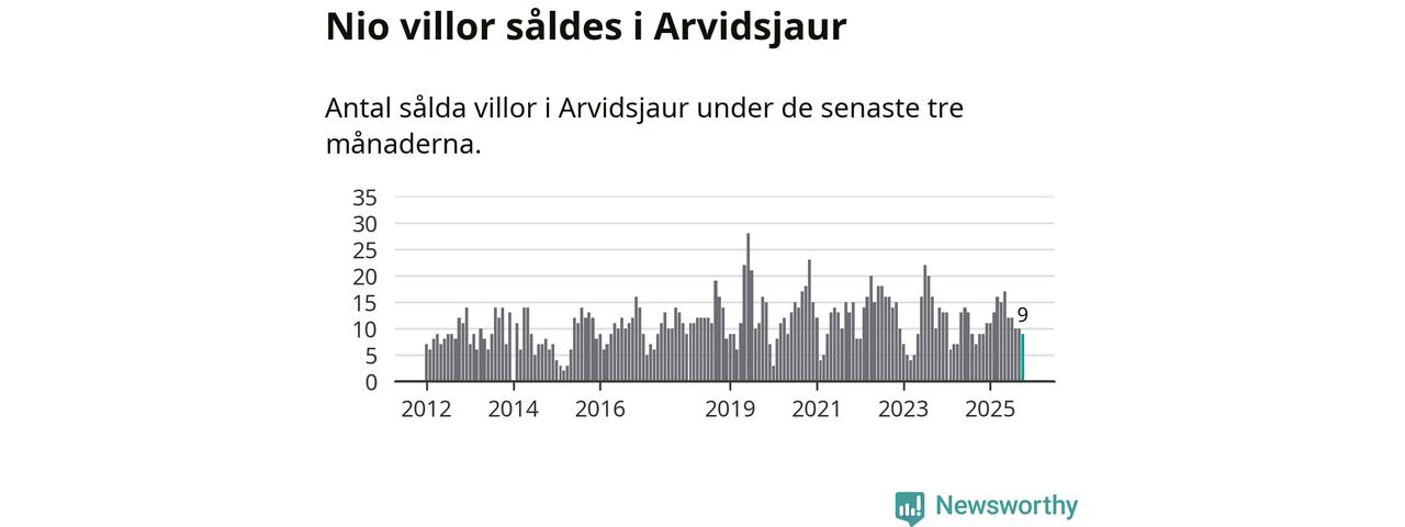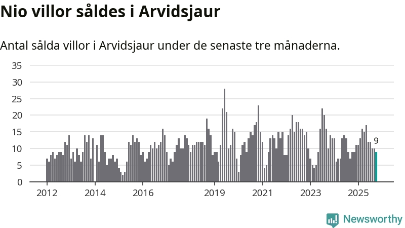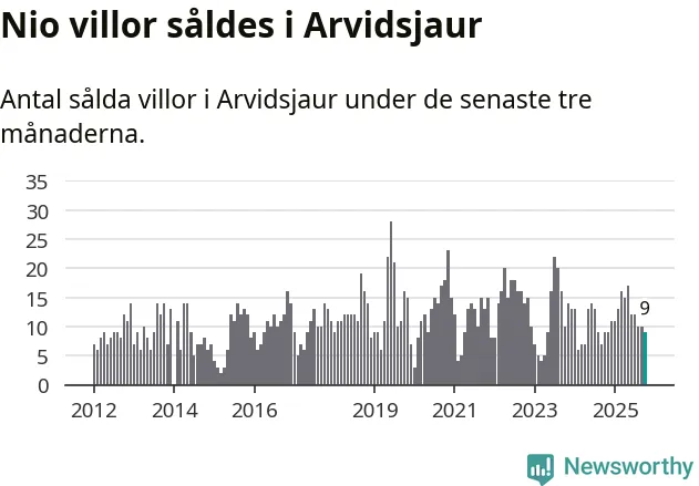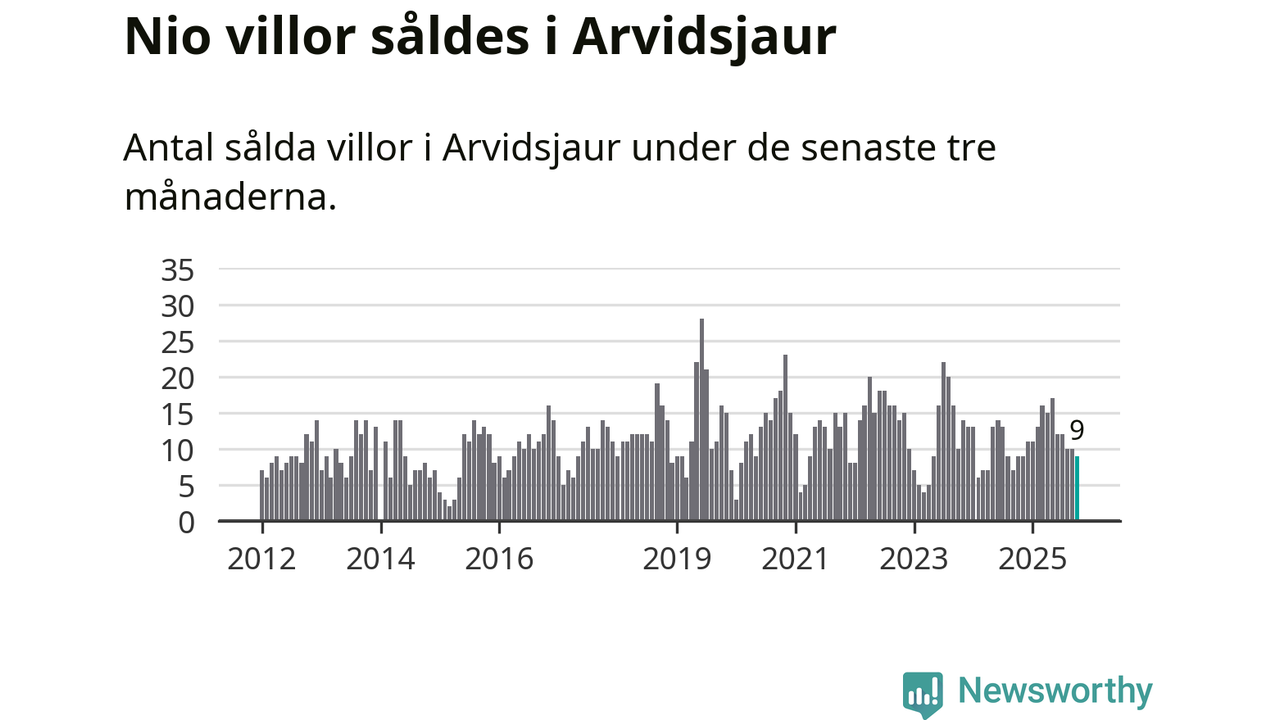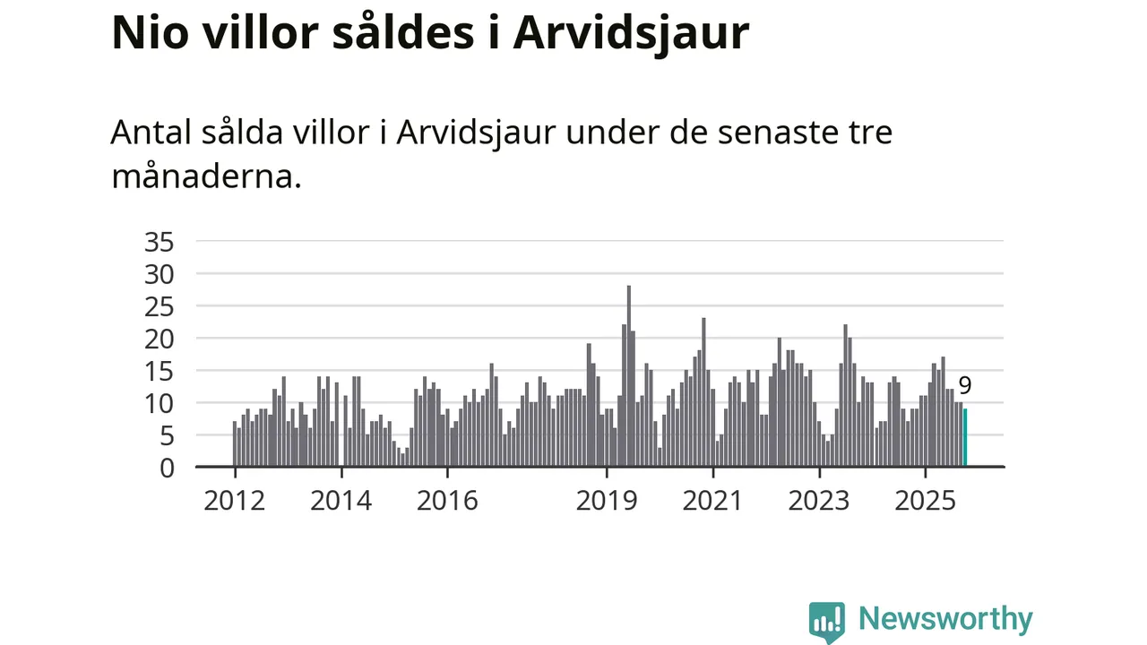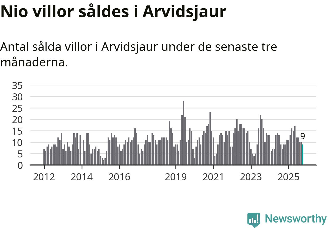 Mellan augusti och oktober gjordes sammanlagt nio affärer med villor i Arvidsjaurs kommun. Det är lika många affärer som vid motsvarande tid i fjol.