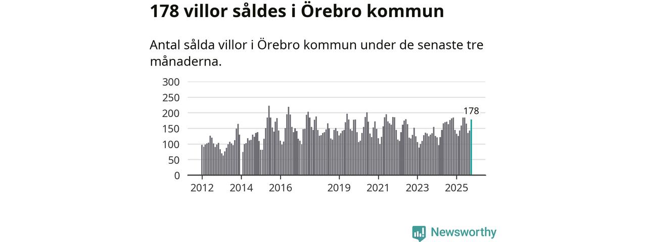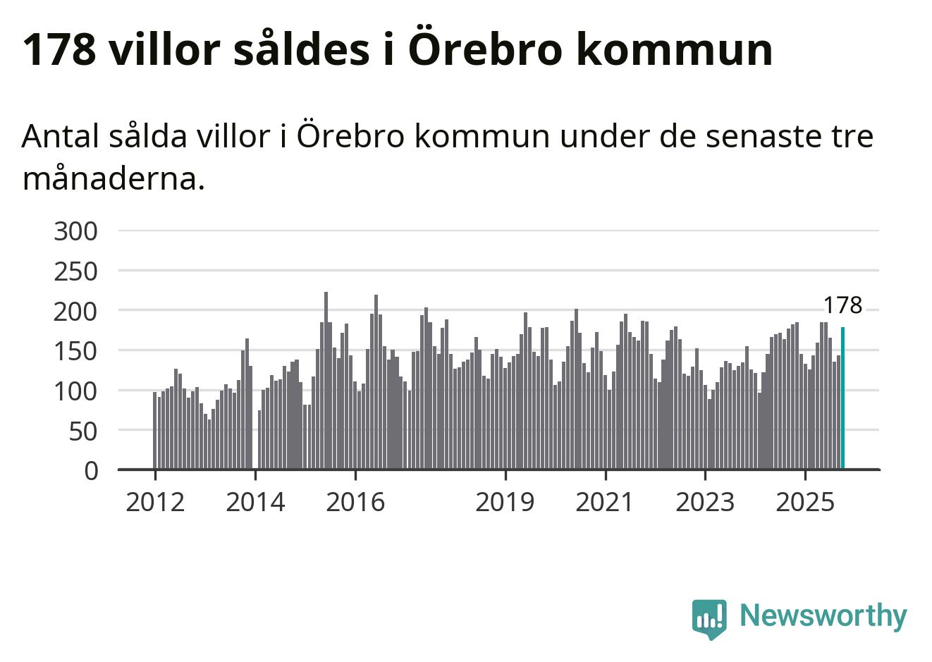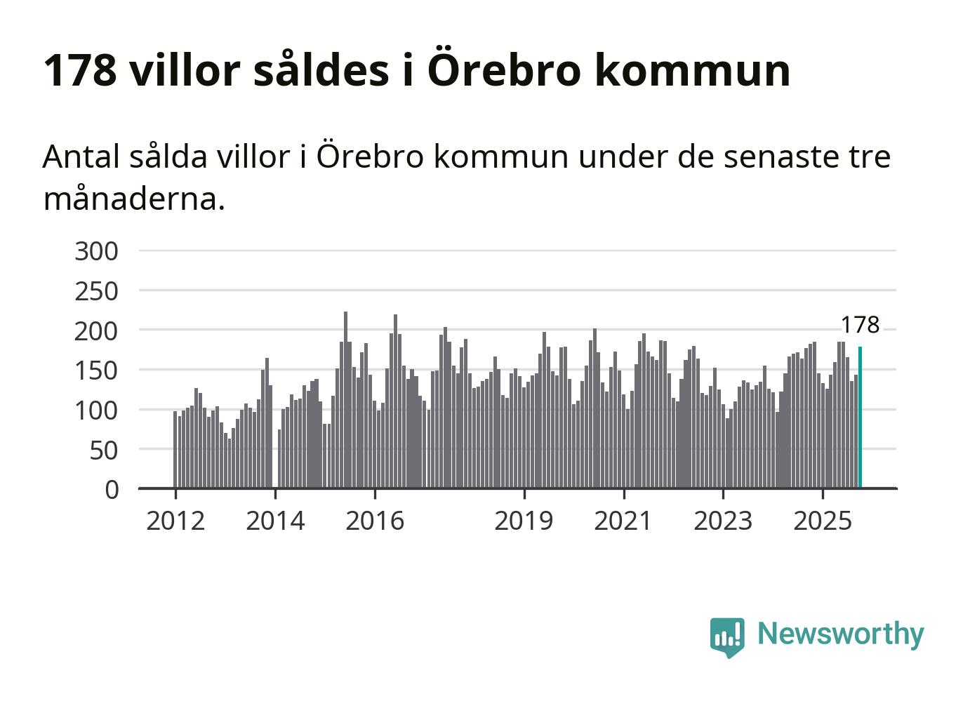 Sammanlagt såldes 178 villor i Örebro kommun mellan augusti och oktober till ett genomsnittligt pris på 4,1 miljoner kronor. I fjol gjordes 182 affärer vid den här tiden på året.