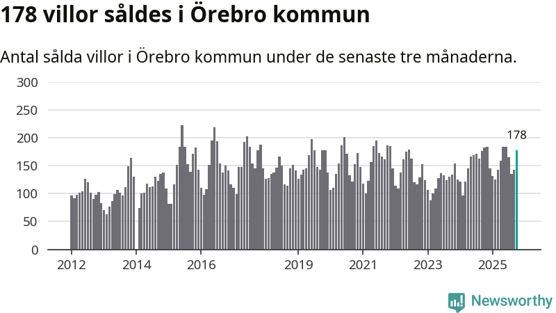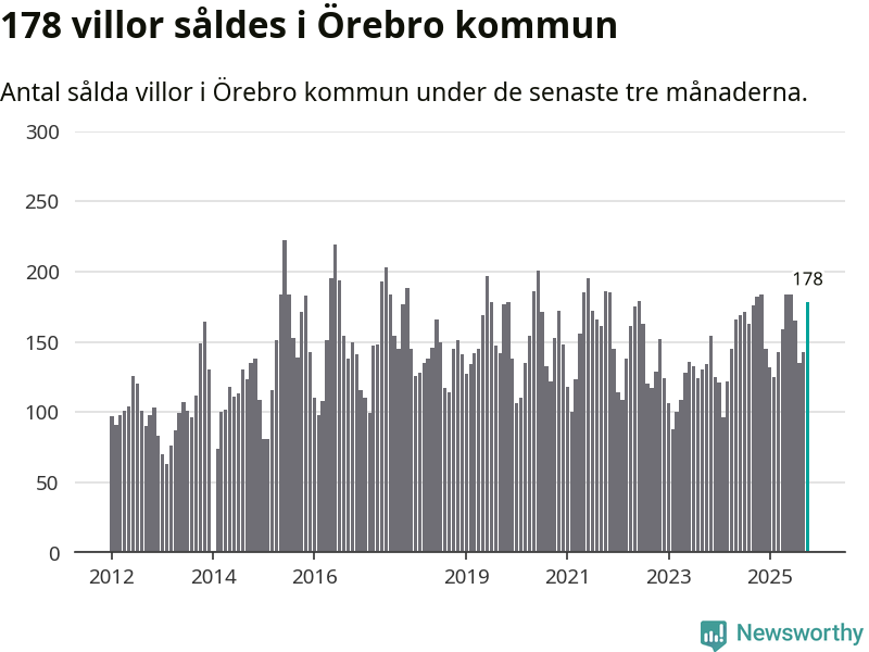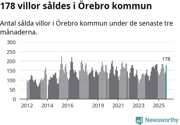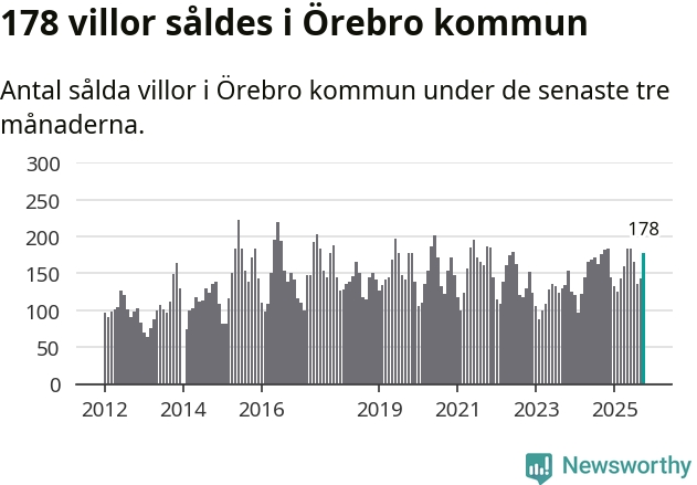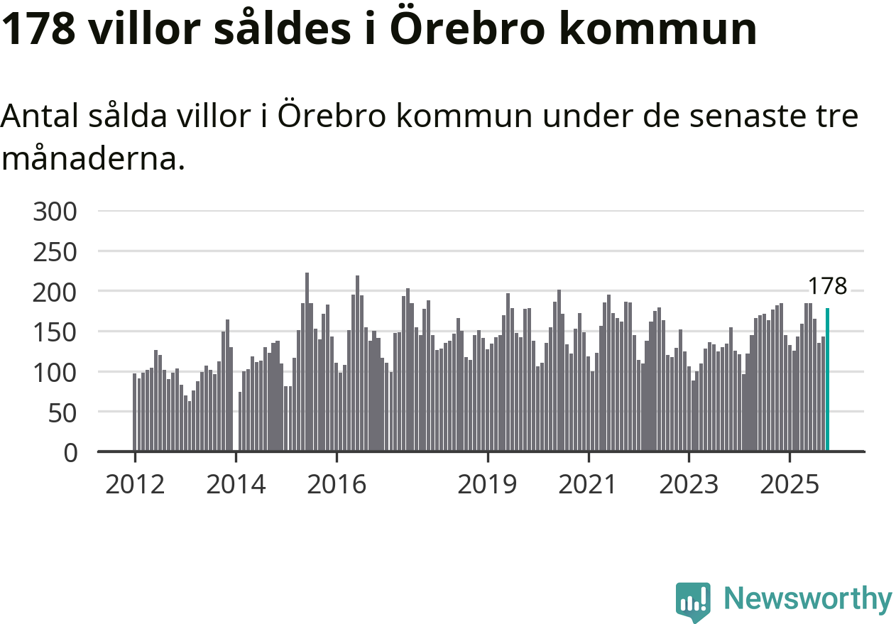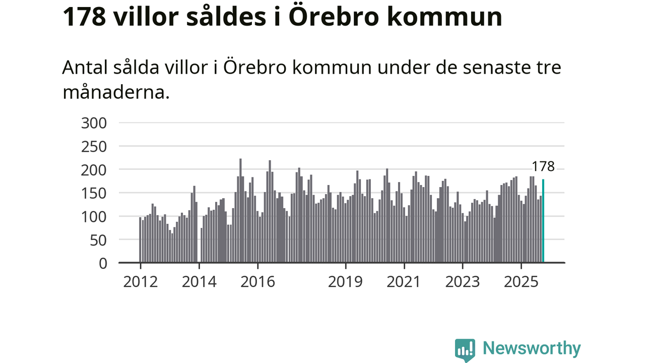 Sammanlagt såldes 178 villor i Örebro kommun mellan augusti och oktober till ett genomsnittligt pris på 4,1 miljoner kronor. I fjol gjordes 182 affärer vid den här tiden på året.