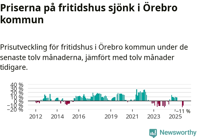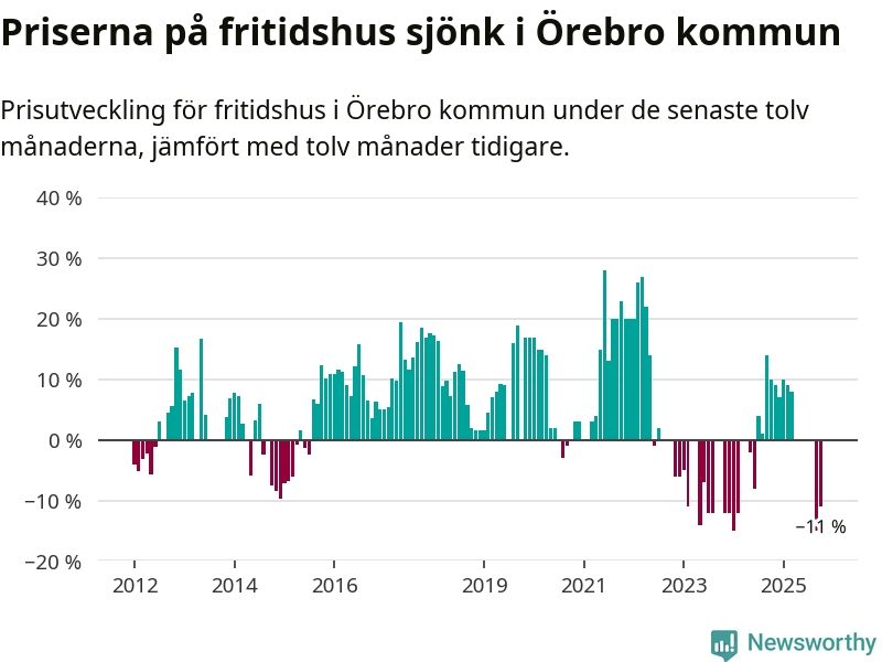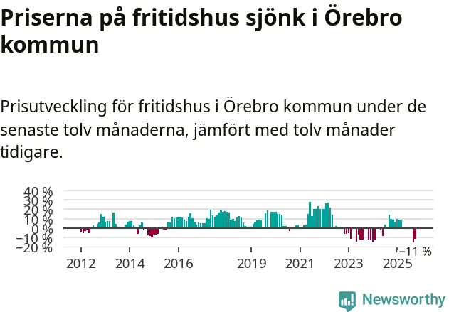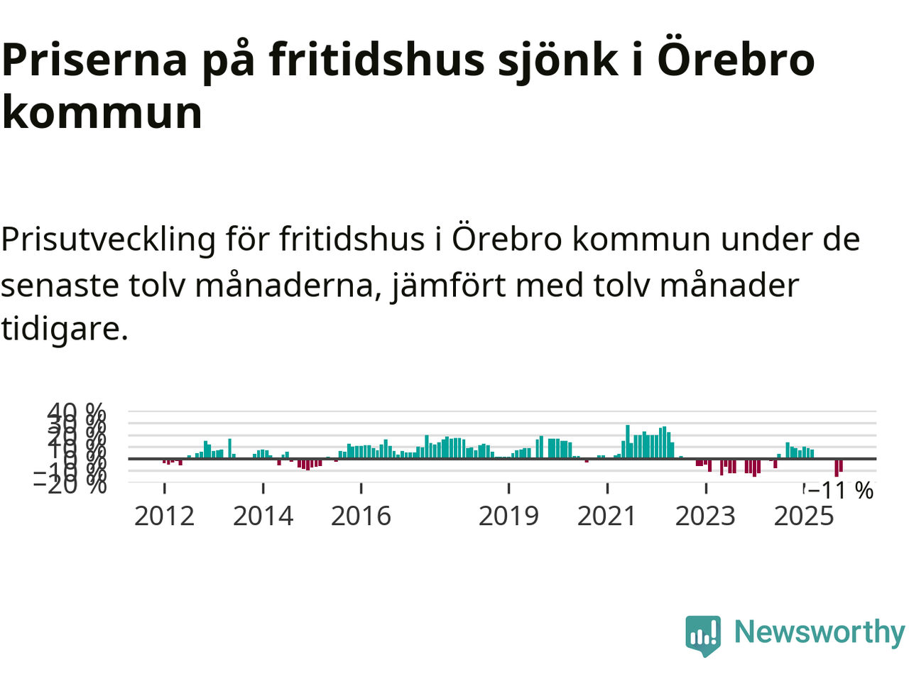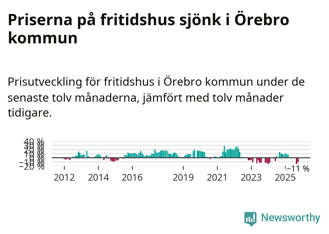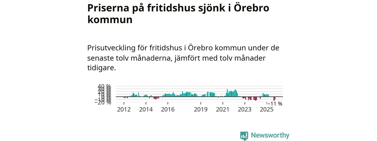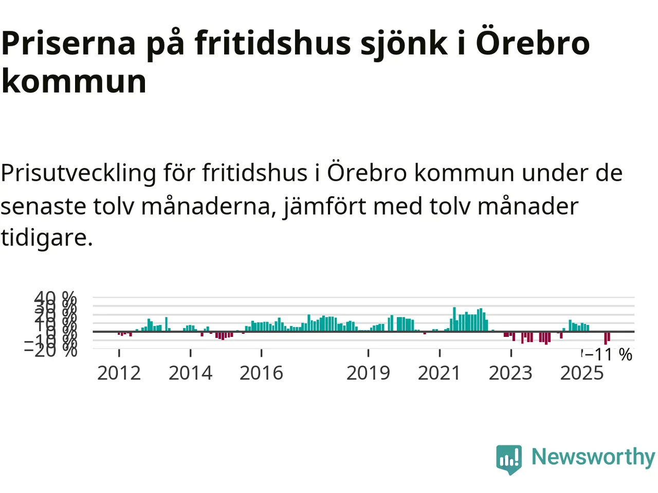 Priserna på fritidshus har gått ner i Örebro kommun. Medelpriset på försäljningarna under de senaste tolv månaderna visar på en nedgång med 11 procent.