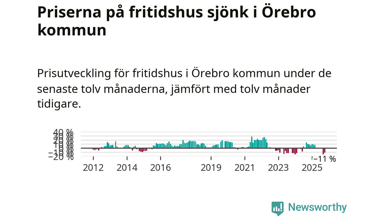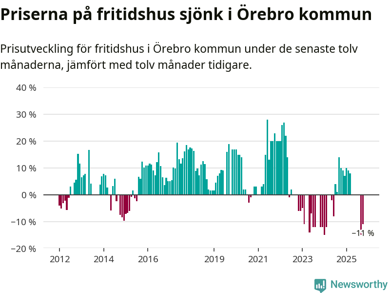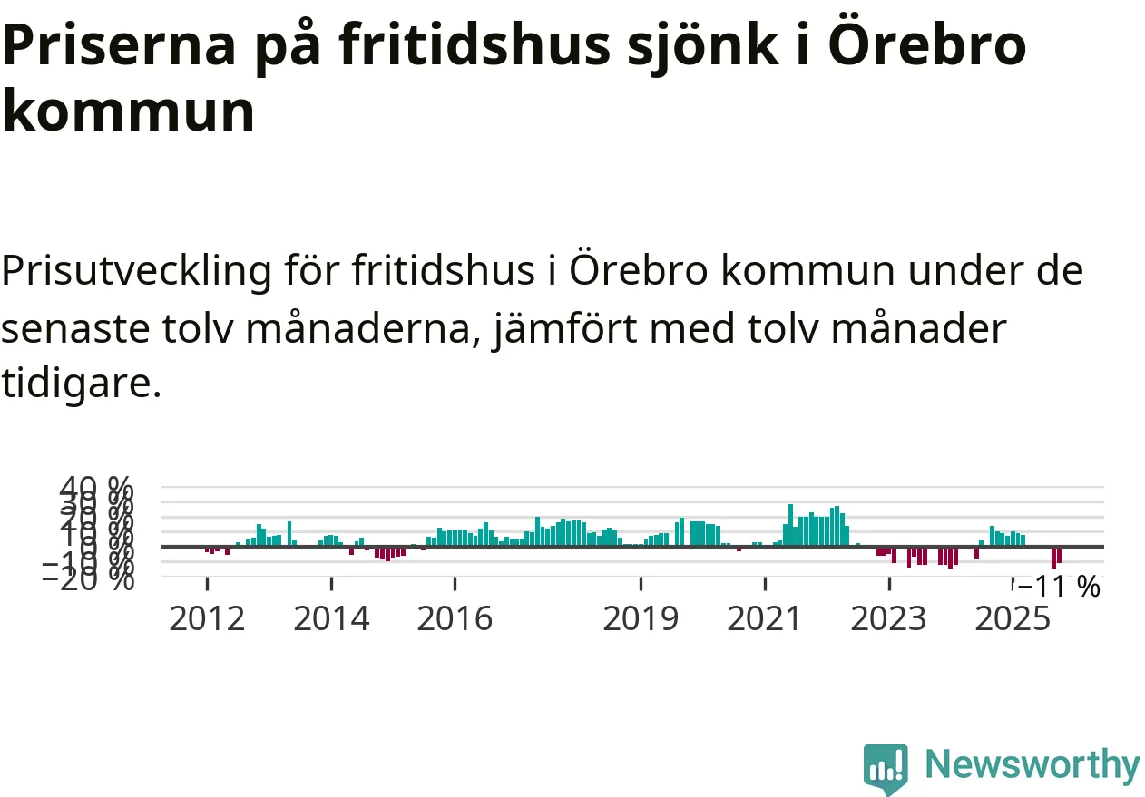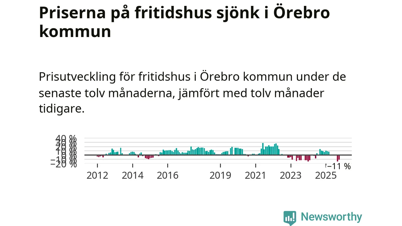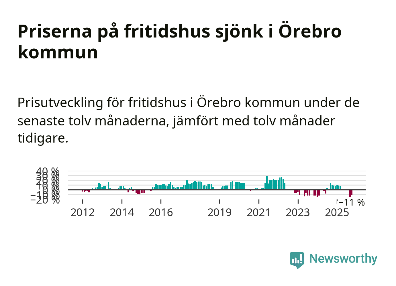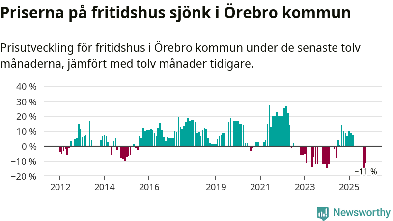 Priserna på fritidshus har gått ner i Örebro kommun. Medelpriset på försäljningarna under de senaste tolv månaderna visar på en nedgång med 11 procent.