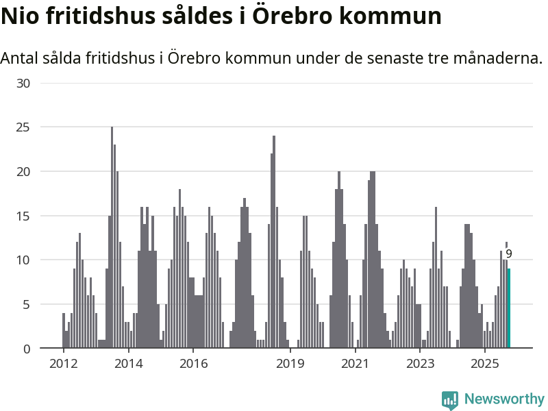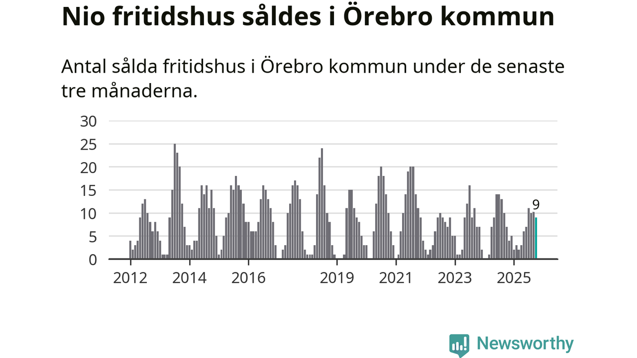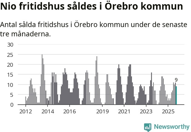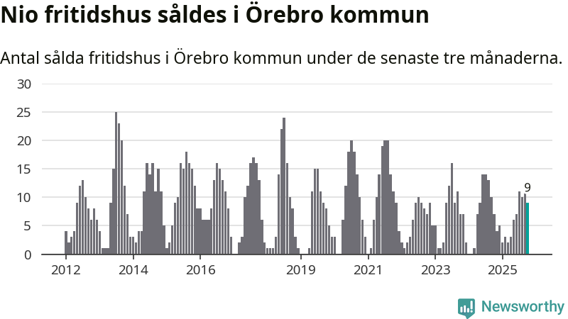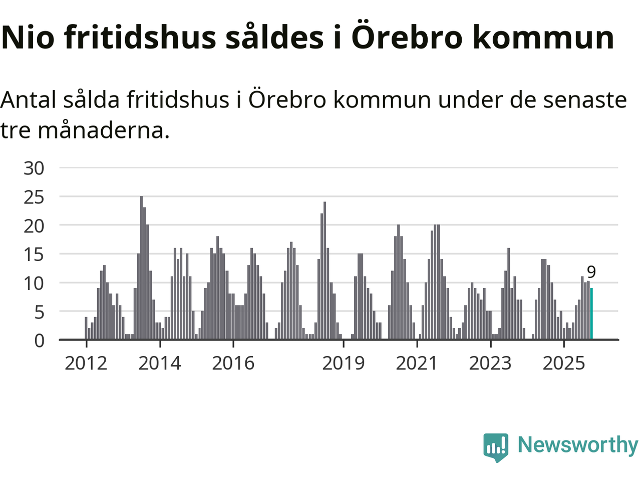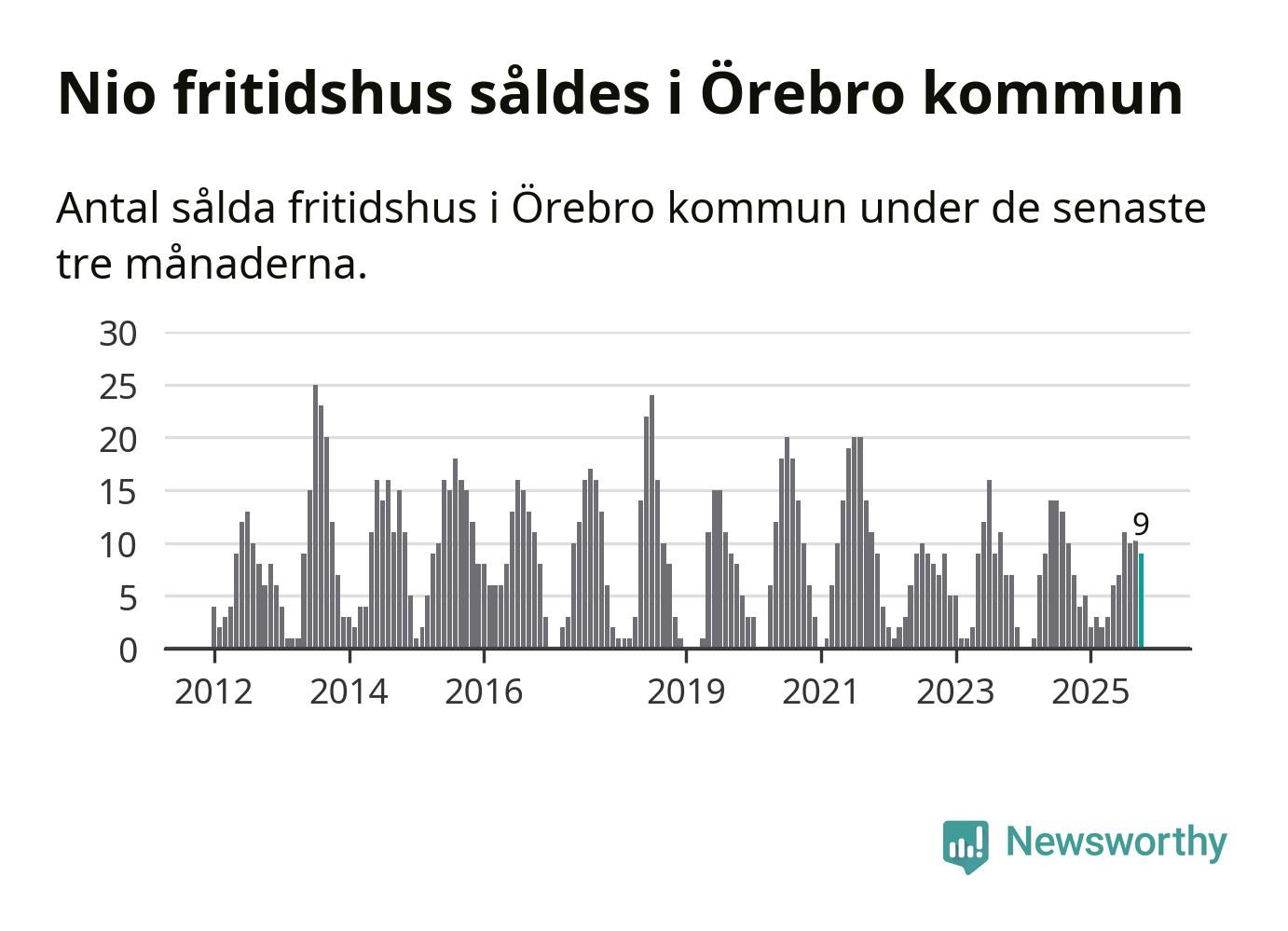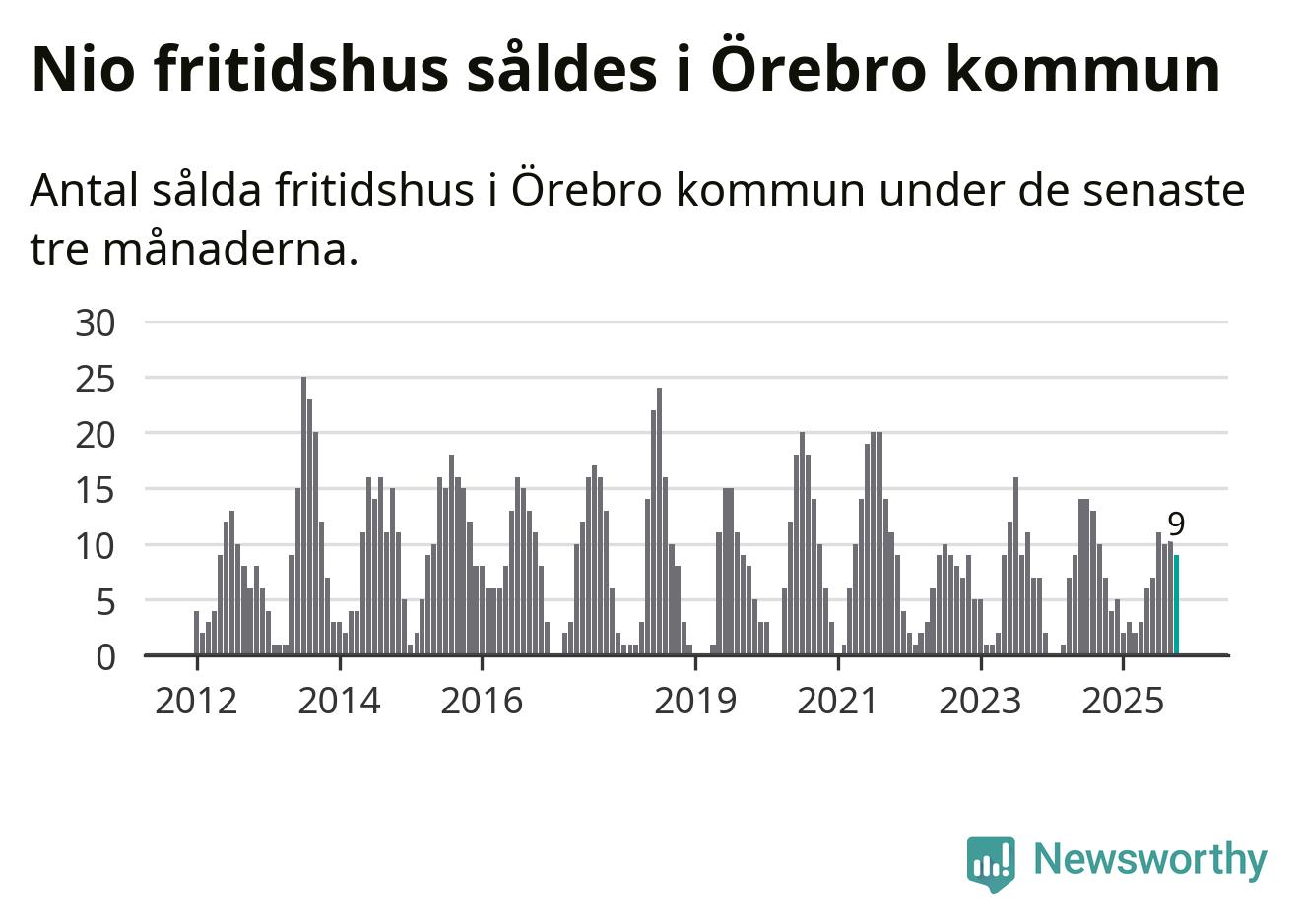 Sammanlagt såldes nio fritidshus i Örebro kommun mellan augusti och oktober till ett genomsnittligt pris på 1,4 miljoner kronor. I fjol gjordes sju affärer vid den här tiden på året.