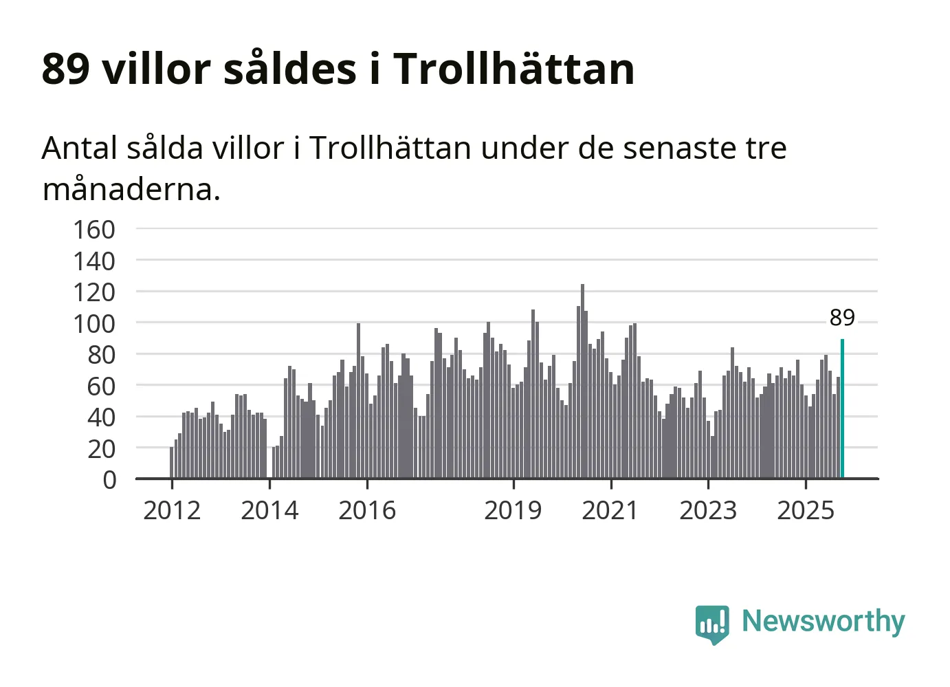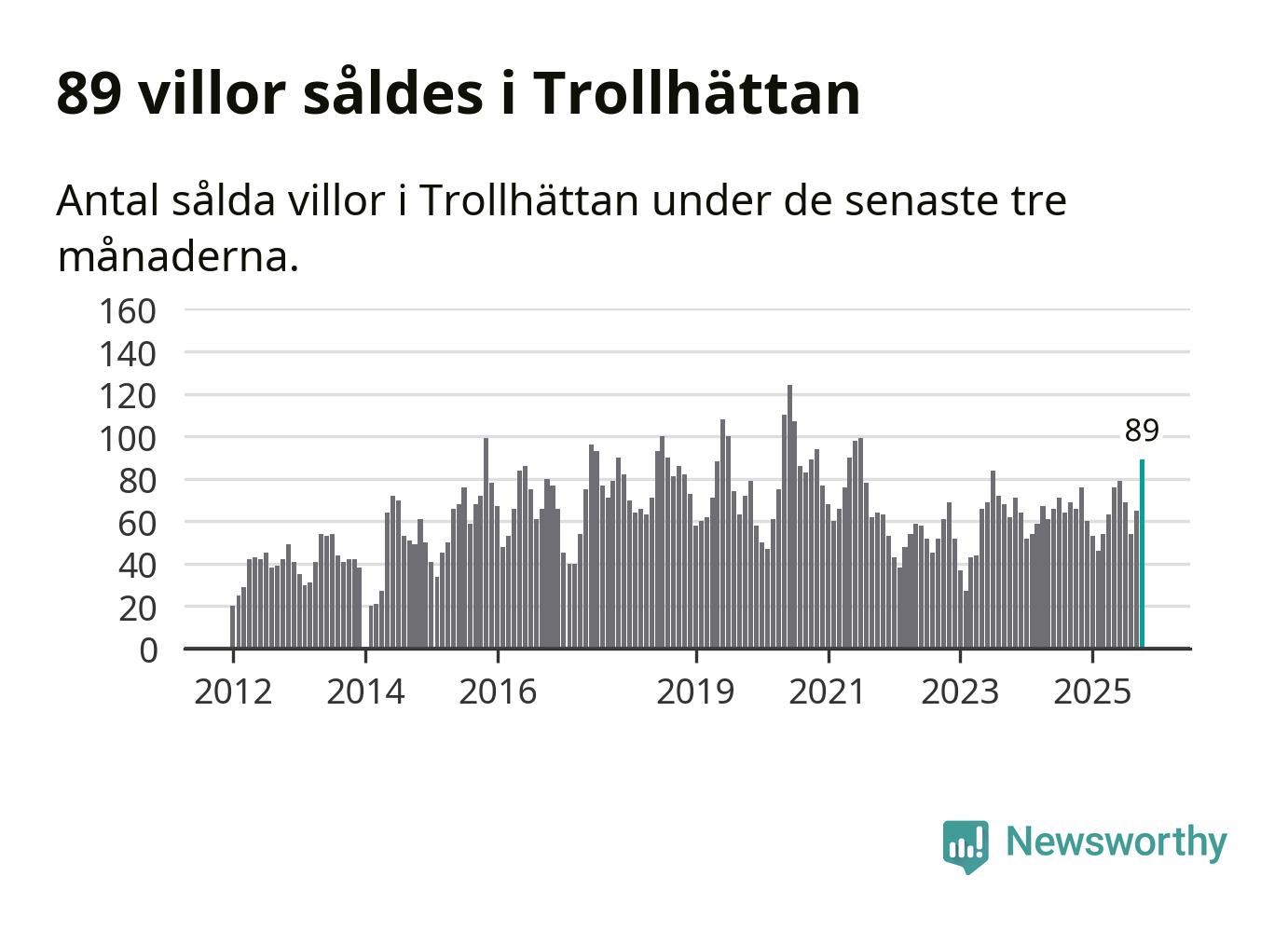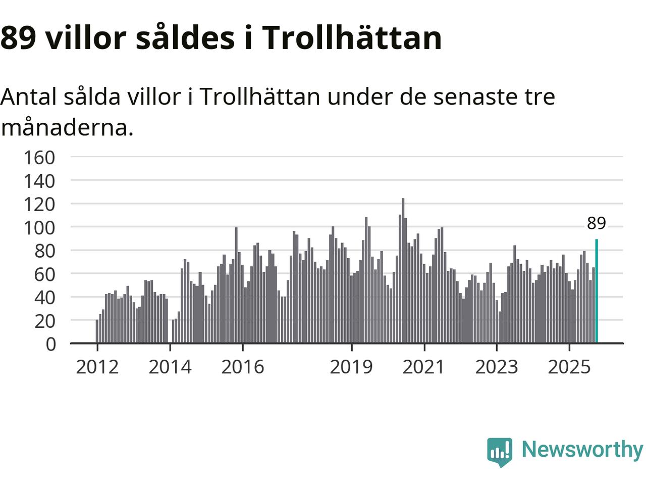 Mellan augusti och oktober såldes 89 villor i Trollhättans kommun. Det är fler än någon tremånadersperiod sedan 2021.