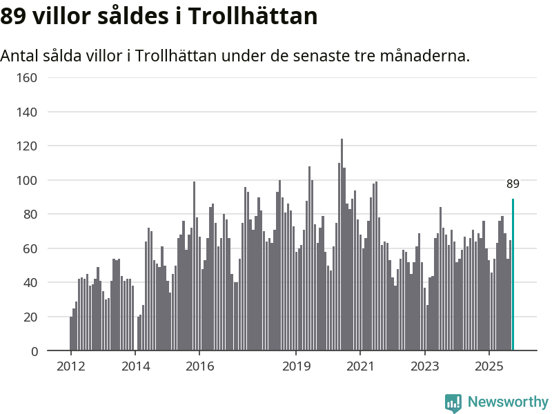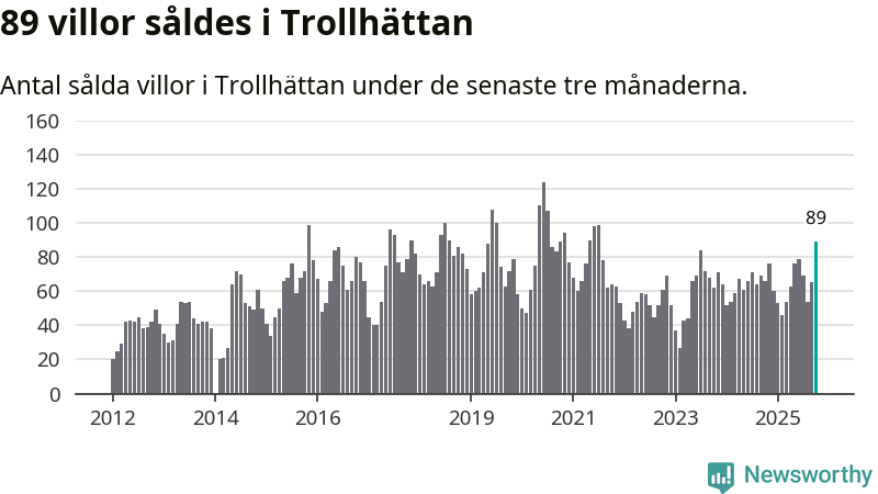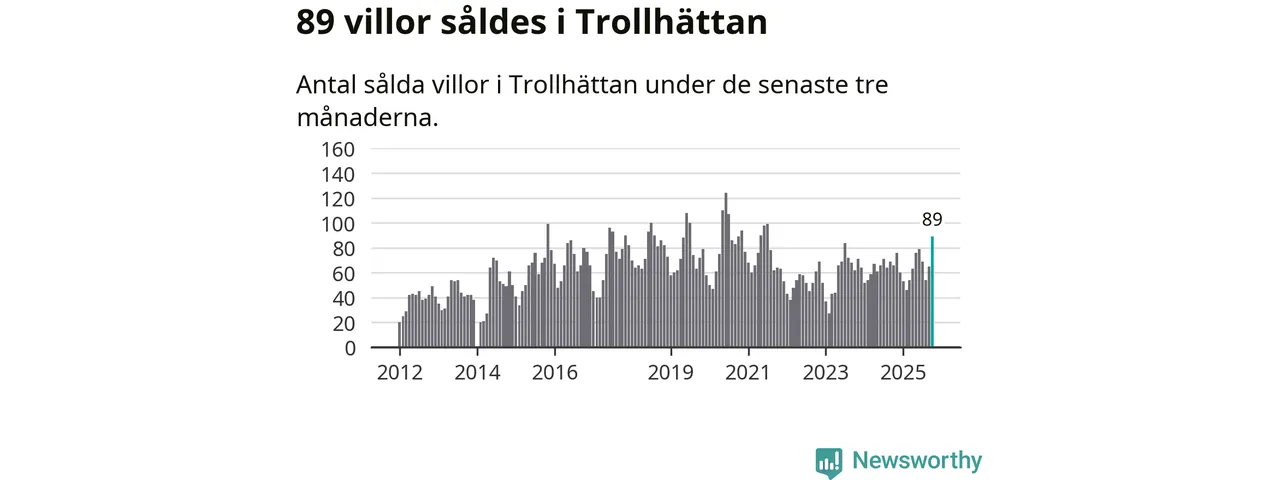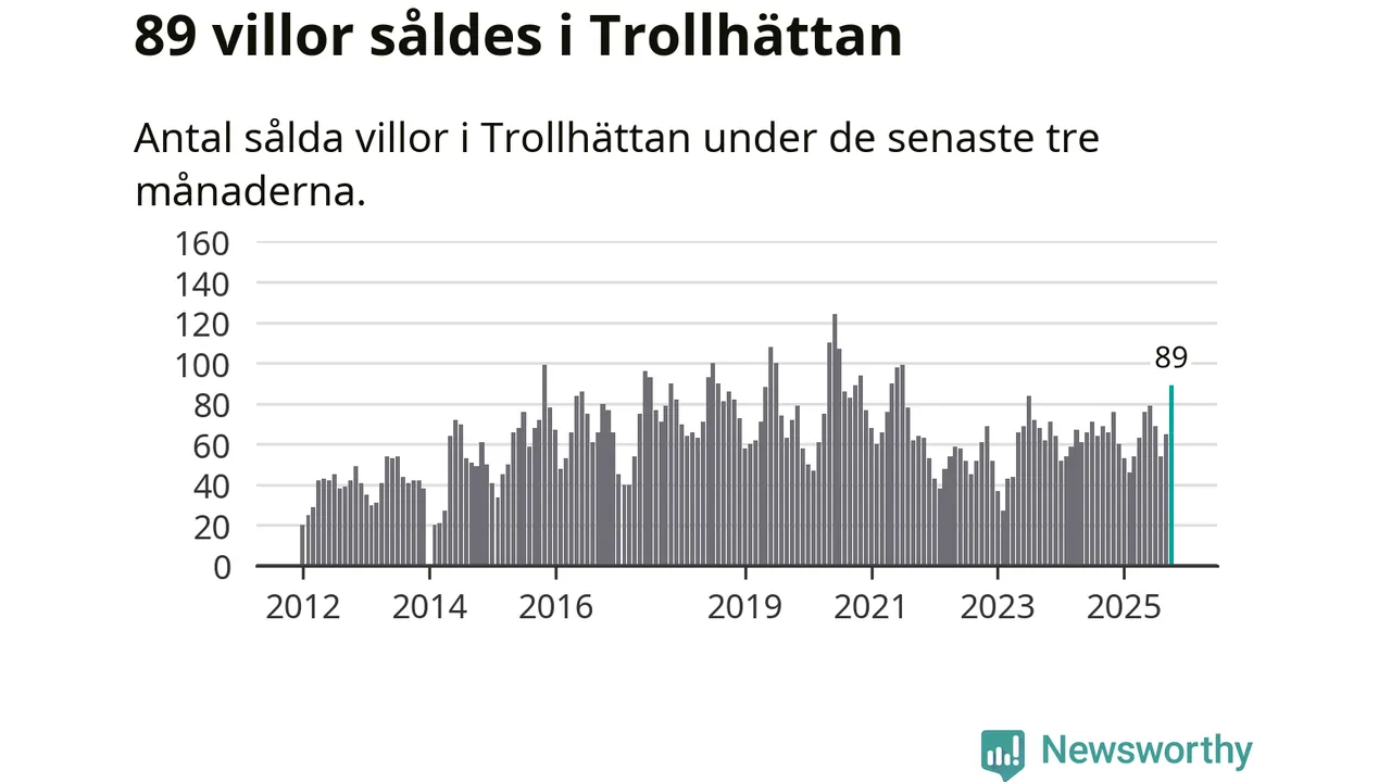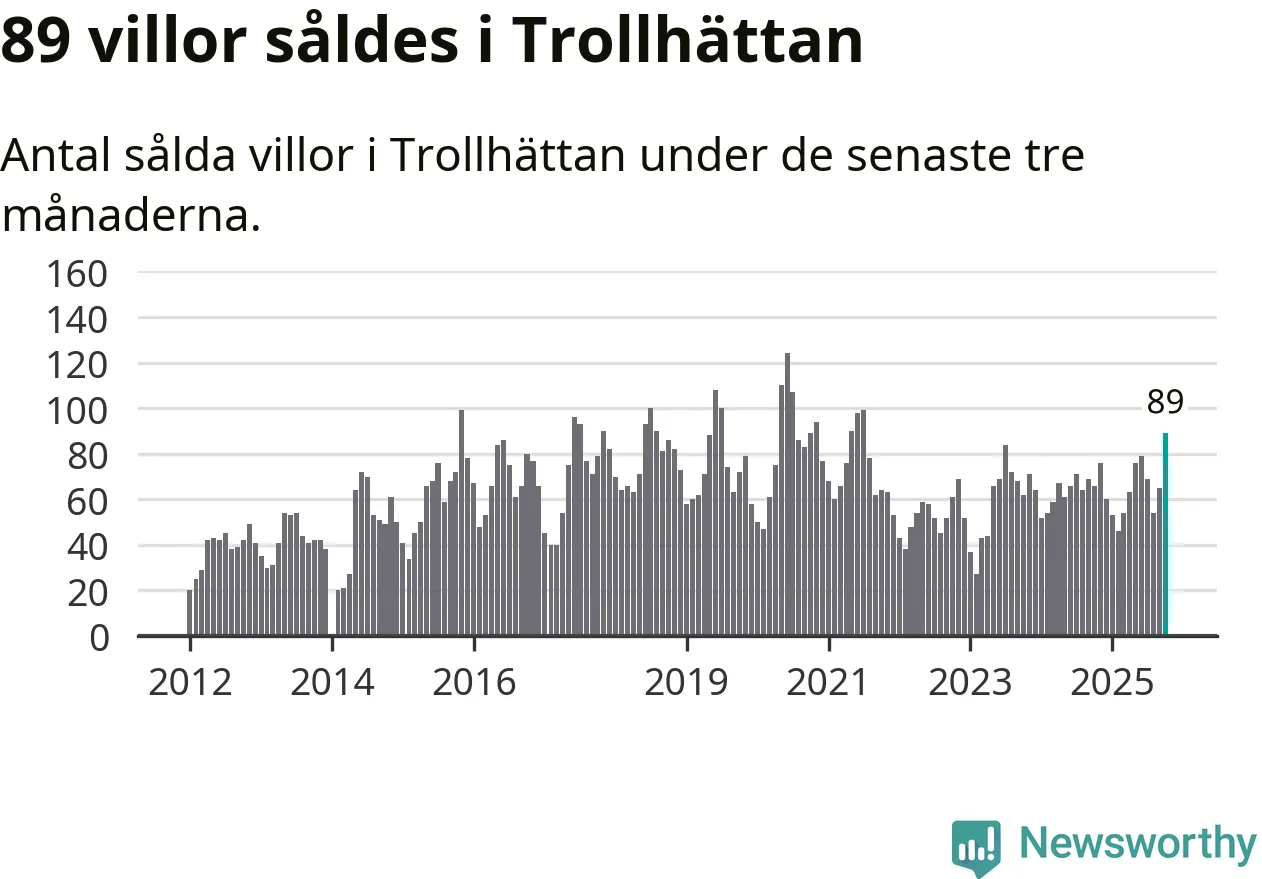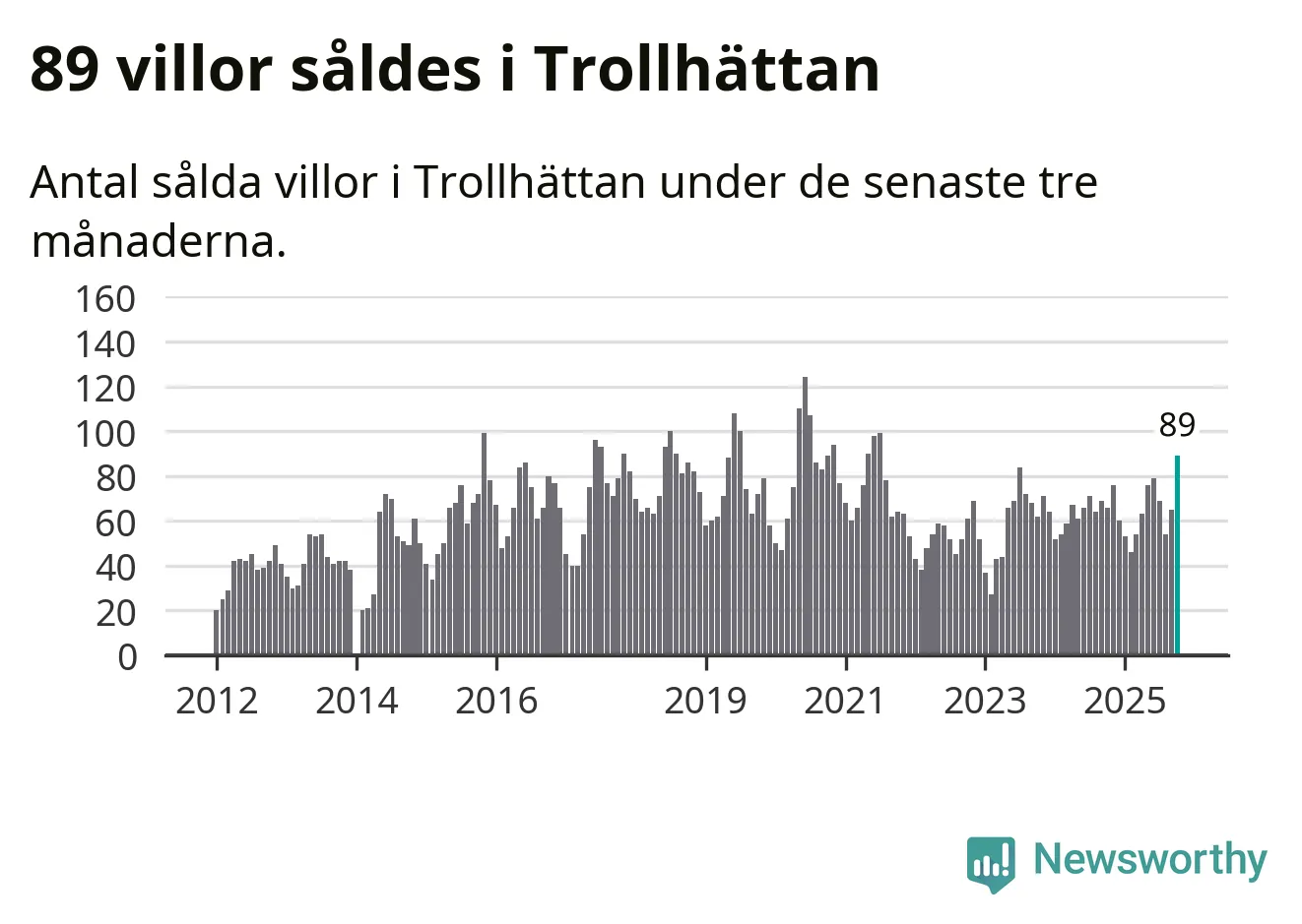 Mellan augusti och oktober såldes 89 villor i Trollhättans kommun. Det är fler än någon tremånadersperiod sedan 2021.