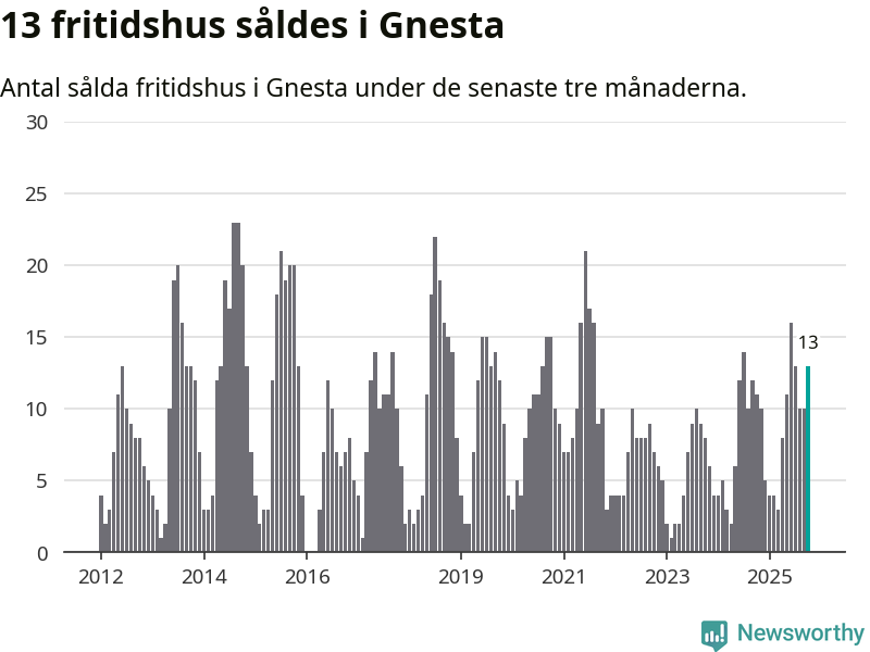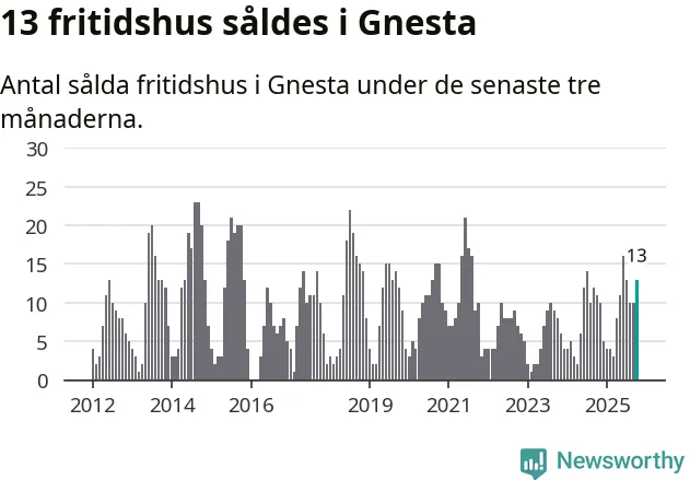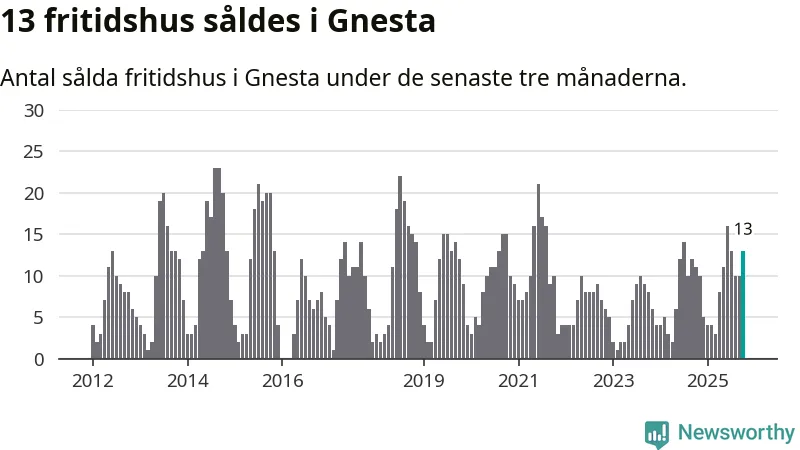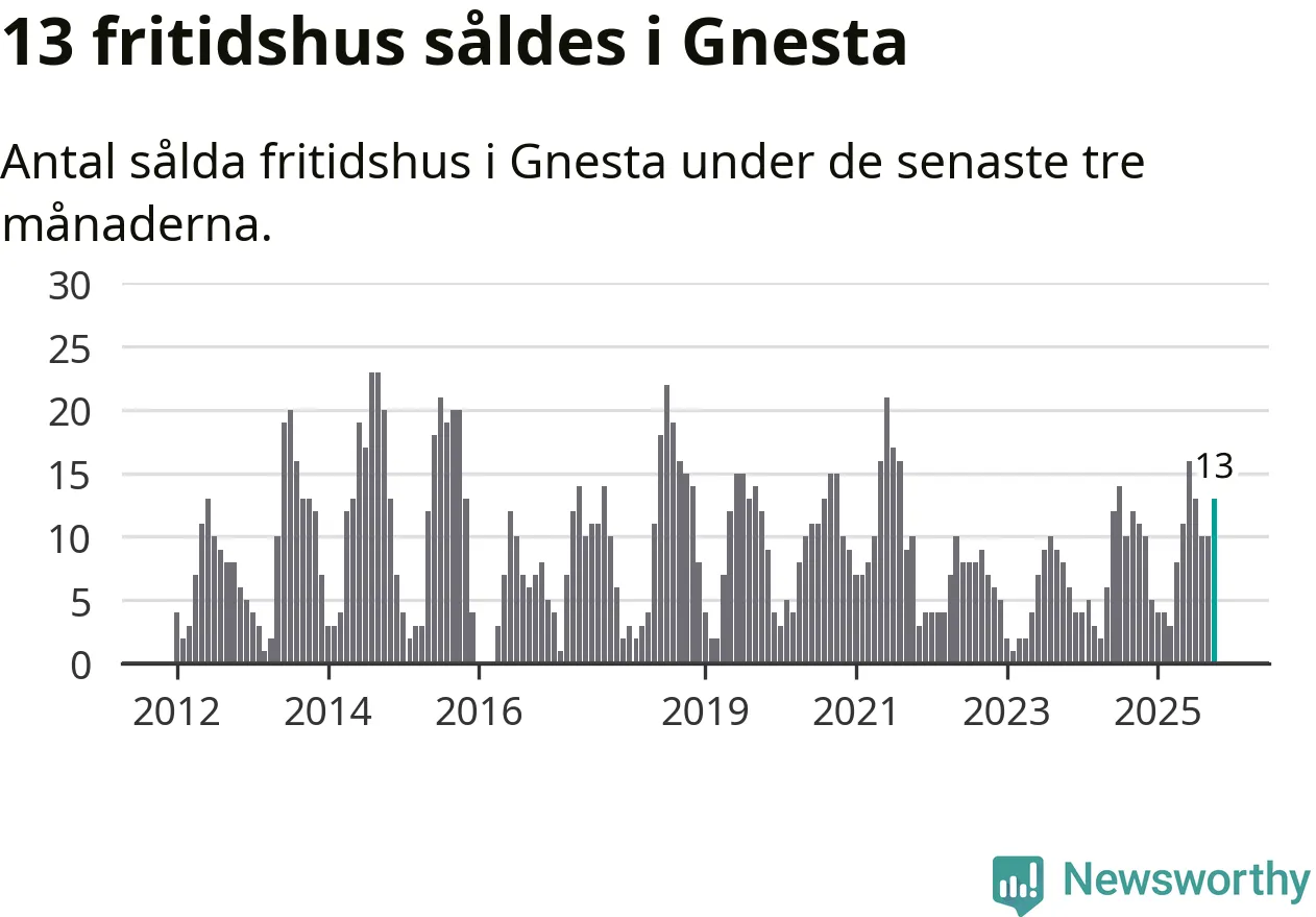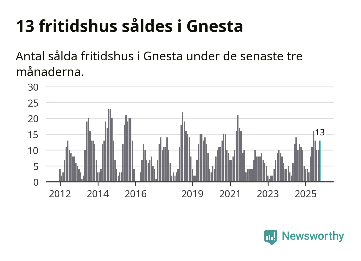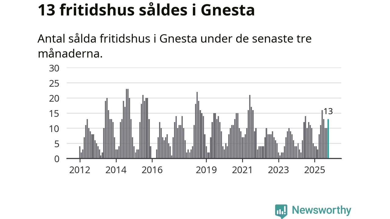 Sammanlagt såldes 13 fritidshus i Gnesta kommun mellan augusti och oktober till ett genomsnittligt pris på 2,4 miljoner kronor. I fjol gjordes elva affärer vid den här tiden på året.