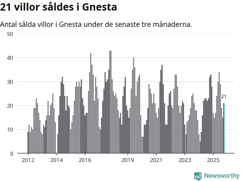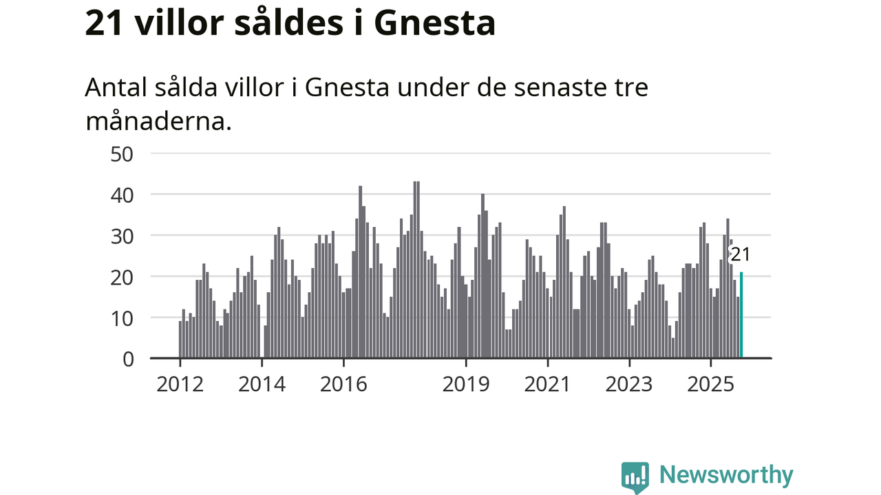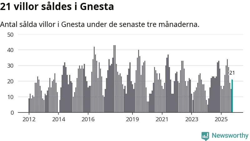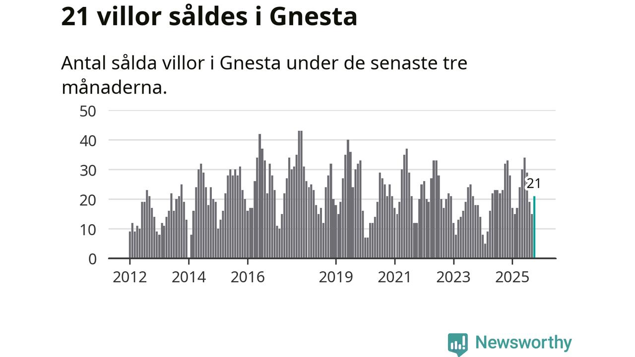Mellan augusti och oktober gjordes sammanlagt 21 affärer med villor i Gnesta kommun. Det kan jämföras med 32 vid motsvarande tid i fjol.