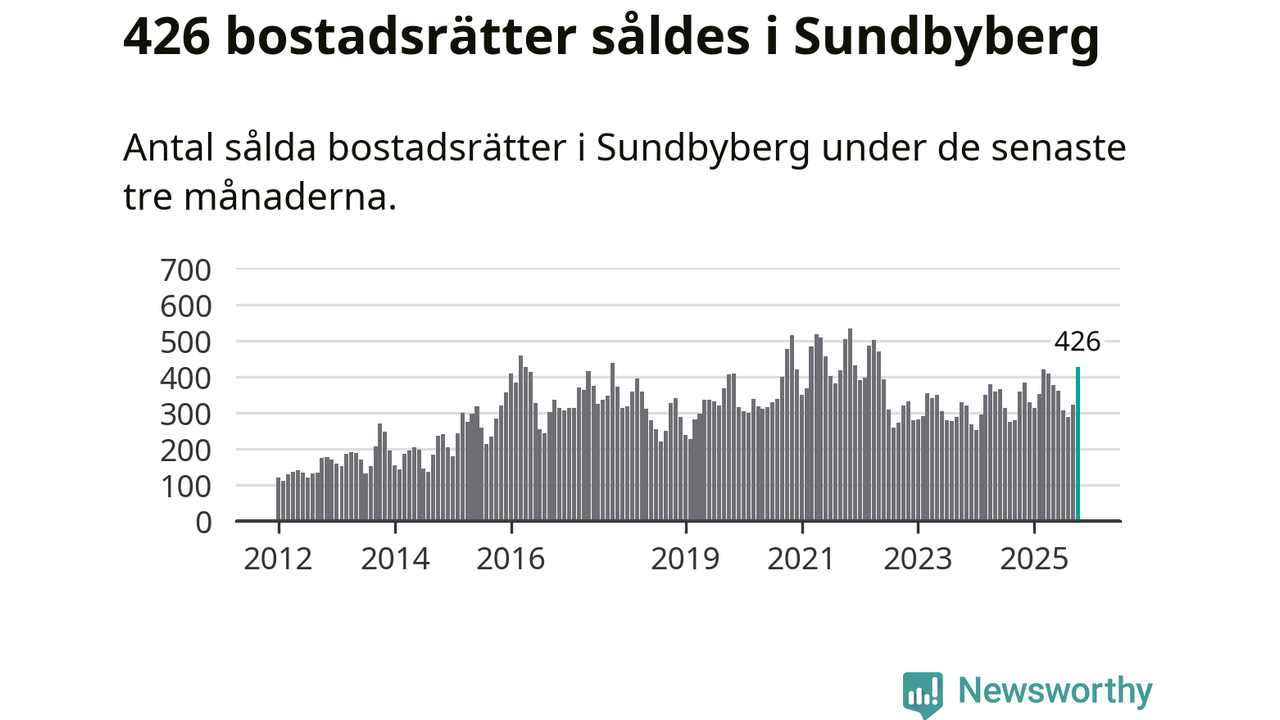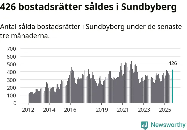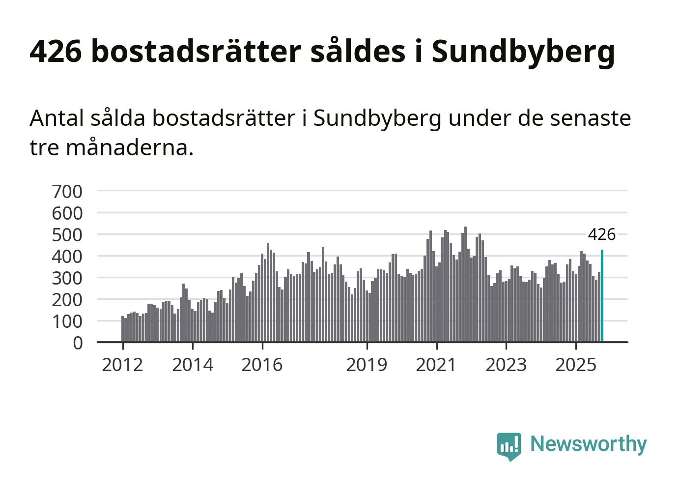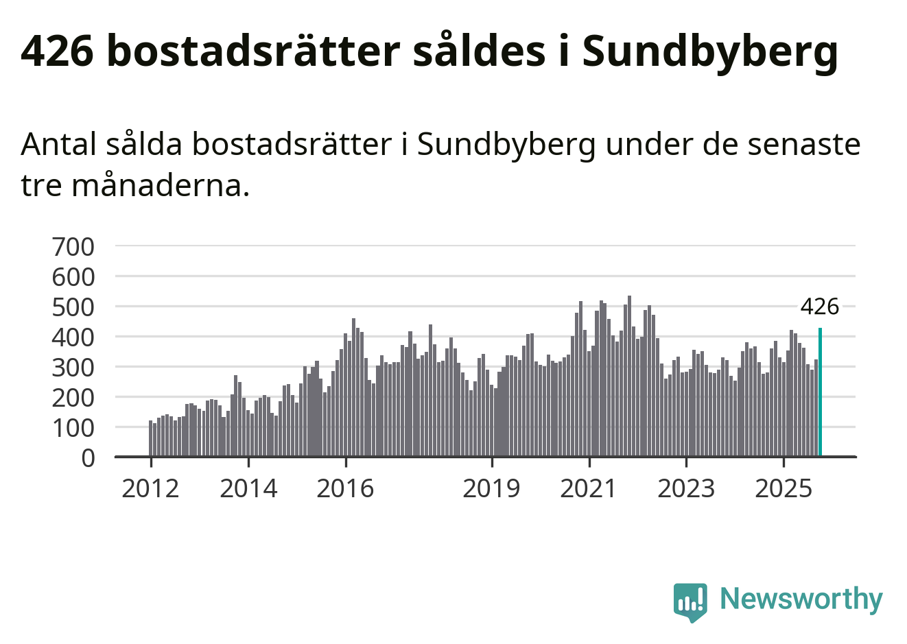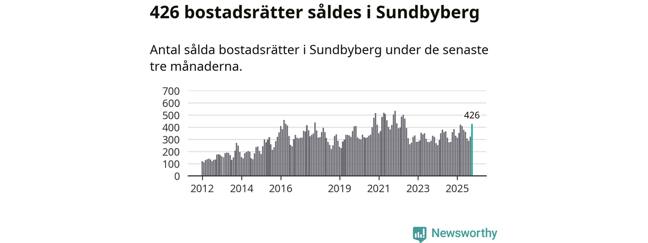 | Sundbyberg | +5 % ▲ | 426 | 4,0 miljoner |
