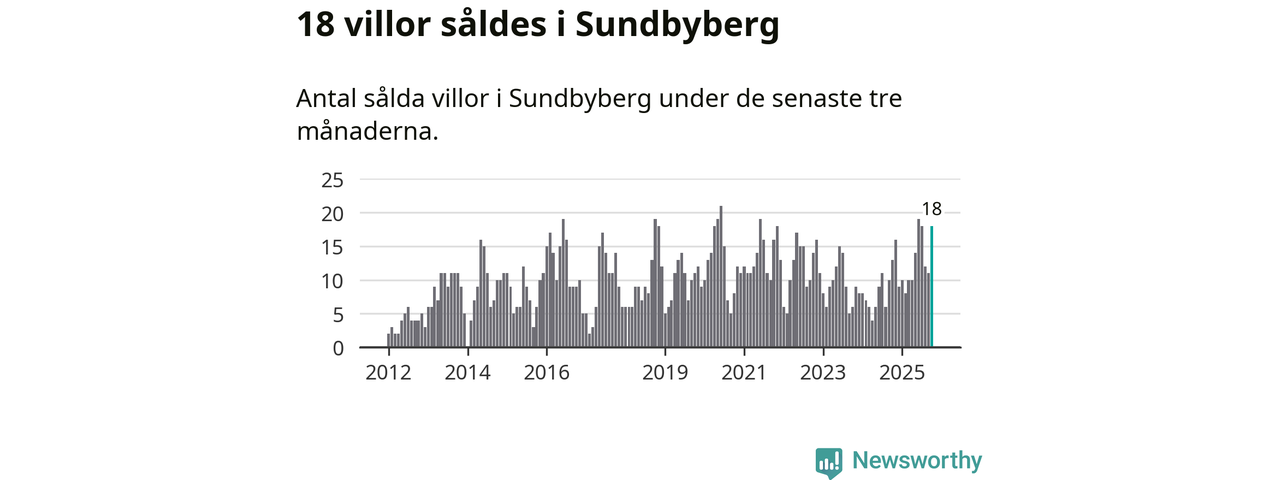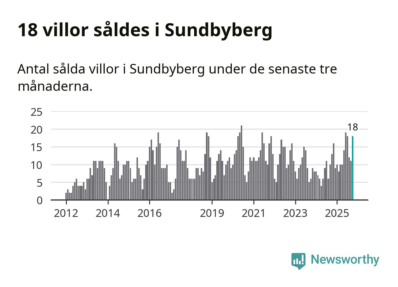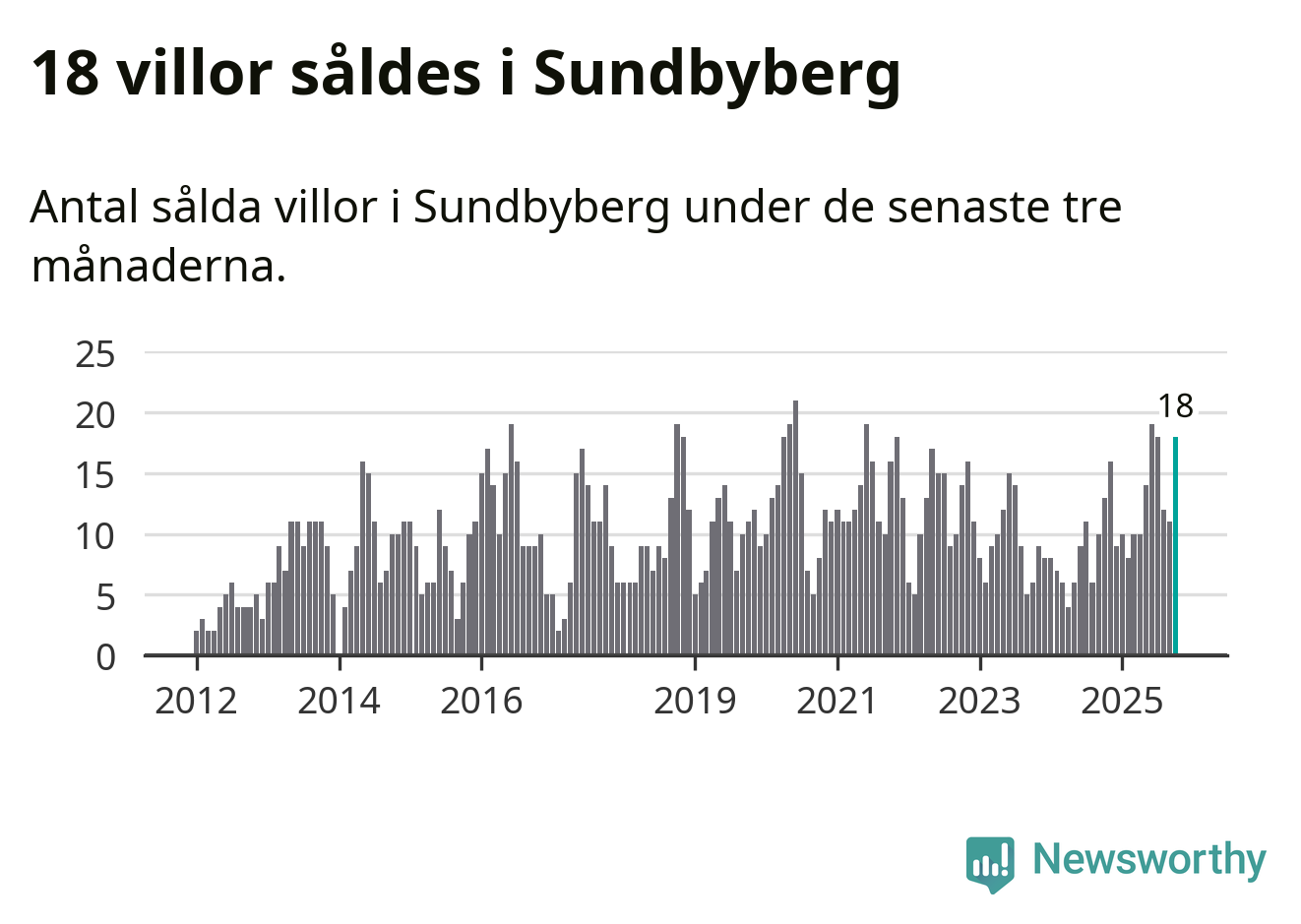 Mellan augusti och oktober gjordes sammanlagt 18 affärer med villor i Sundbybergs kommun. Det kan jämföras med 13 vid motsvarande tid i fjol.
