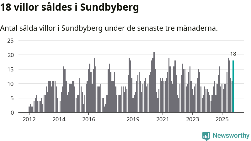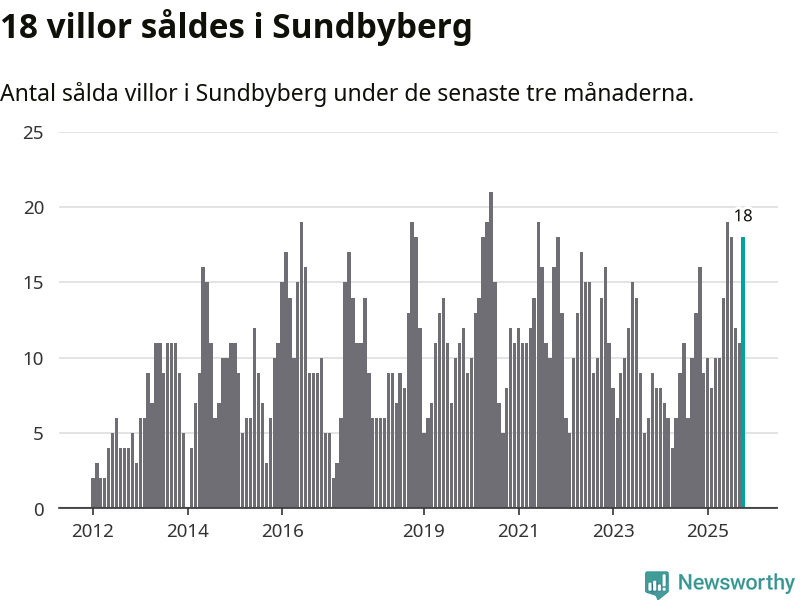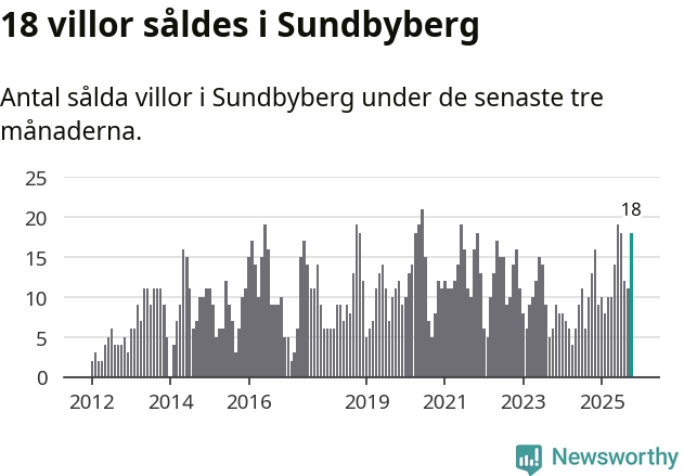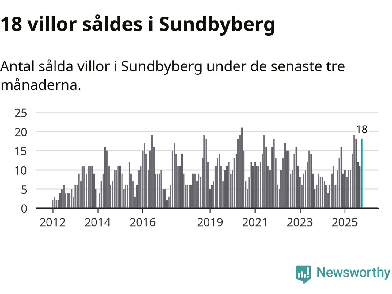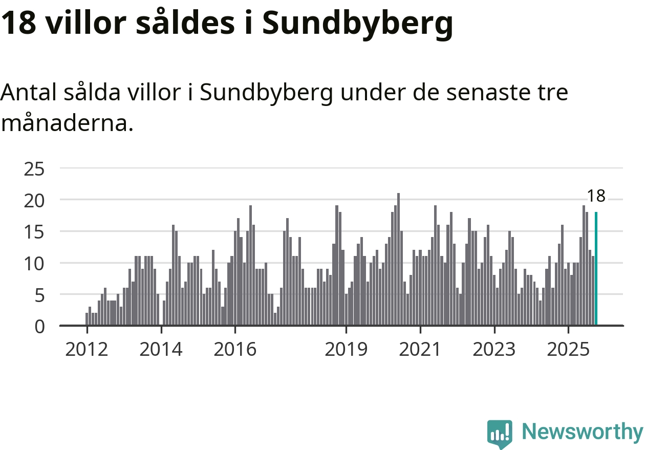 Mellan augusti och oktober gjordes sammanlagt 18 affärer med villor i Sundbybergs kommun. Det kan jämföras med 13 vid motsvarande tid i fjol.