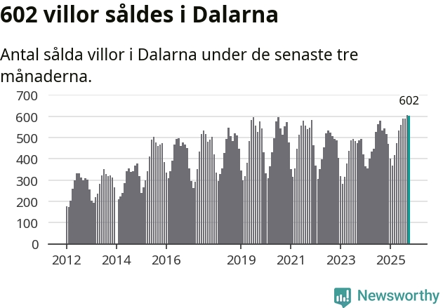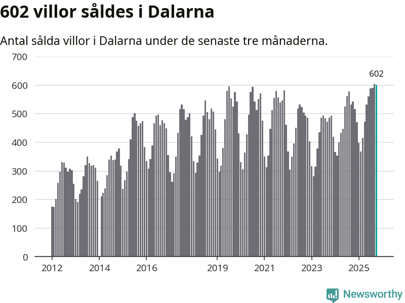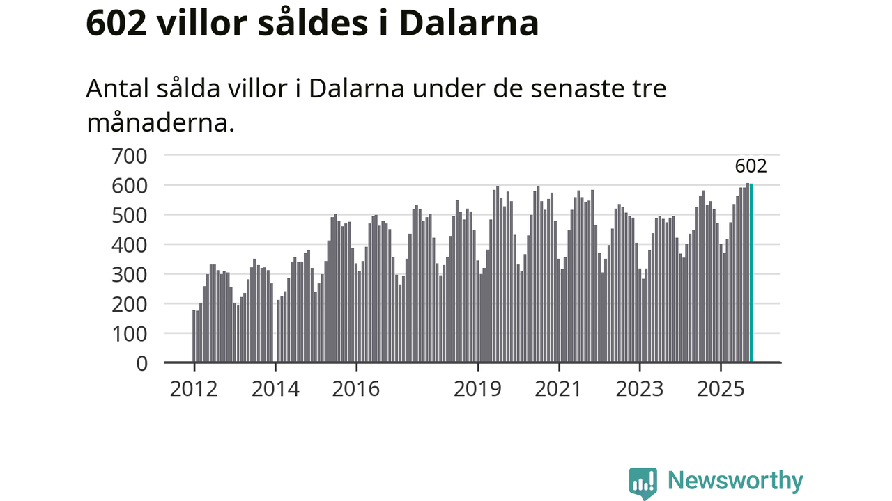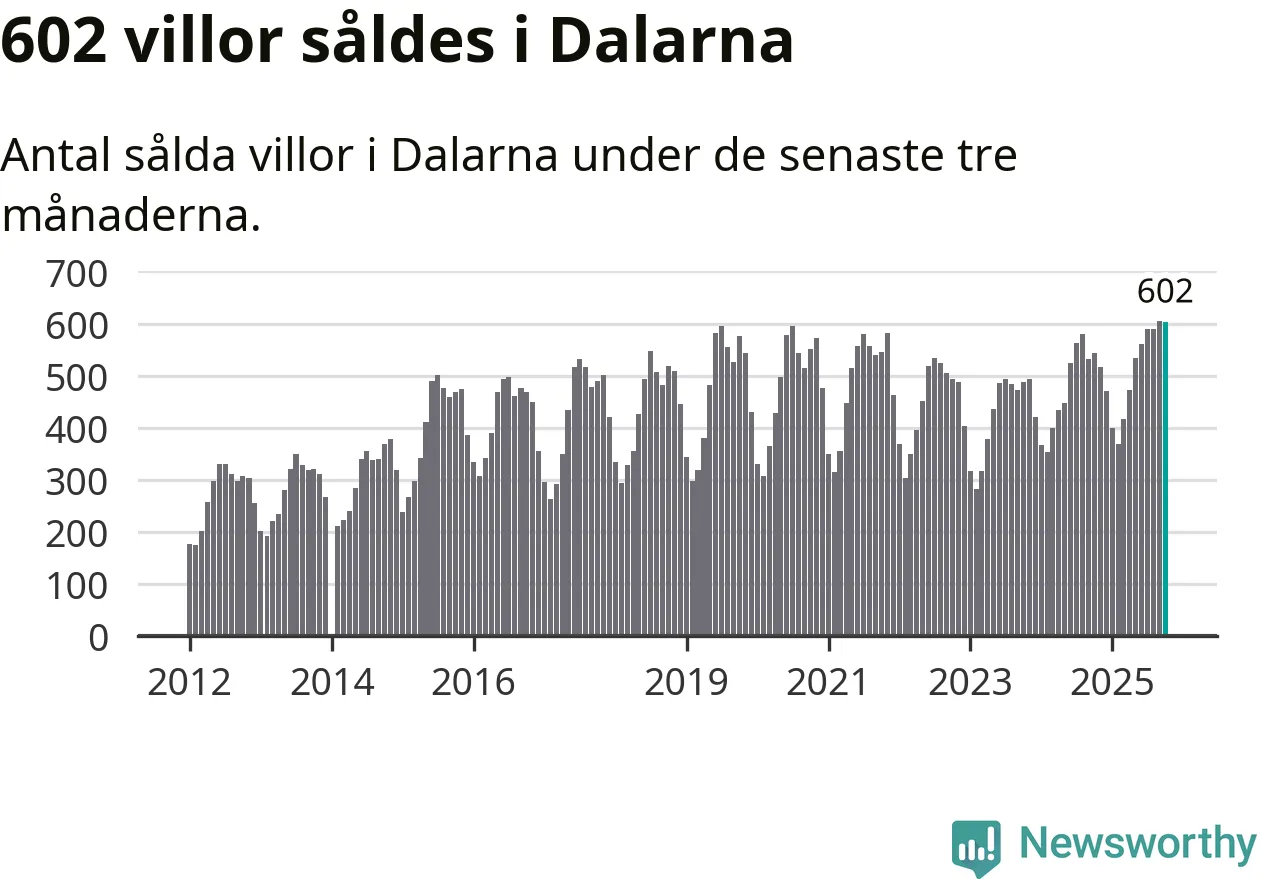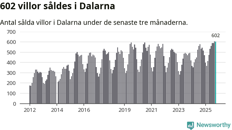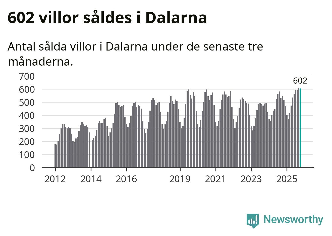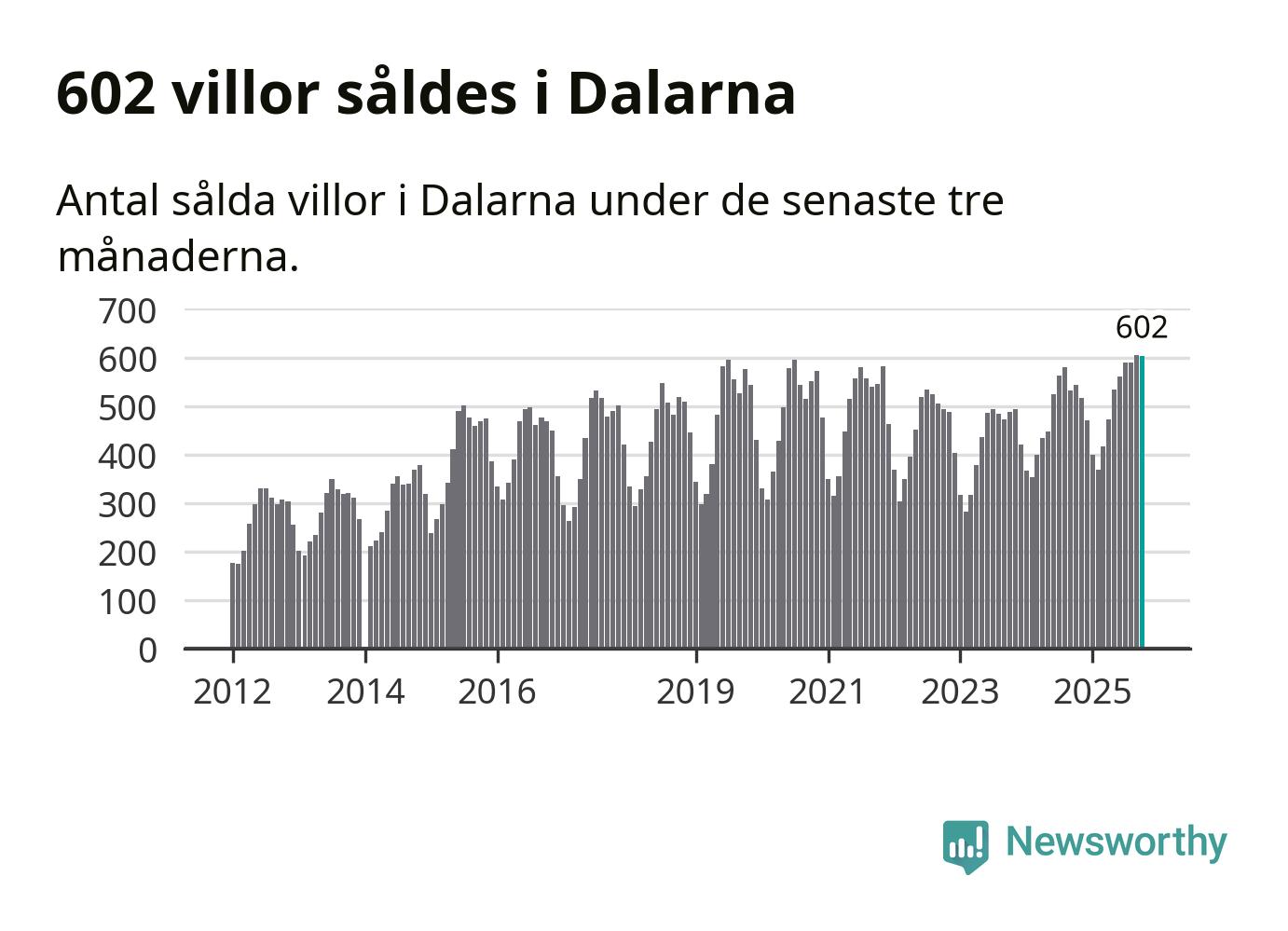 Sammanlagt såldes 602 villor i Dalarnas län mellan augusti och oktober till ett genomsnittligt pris på 2,2 miljoner kronor. I fjol gjordes 543 affärer vid den här tiden på året.