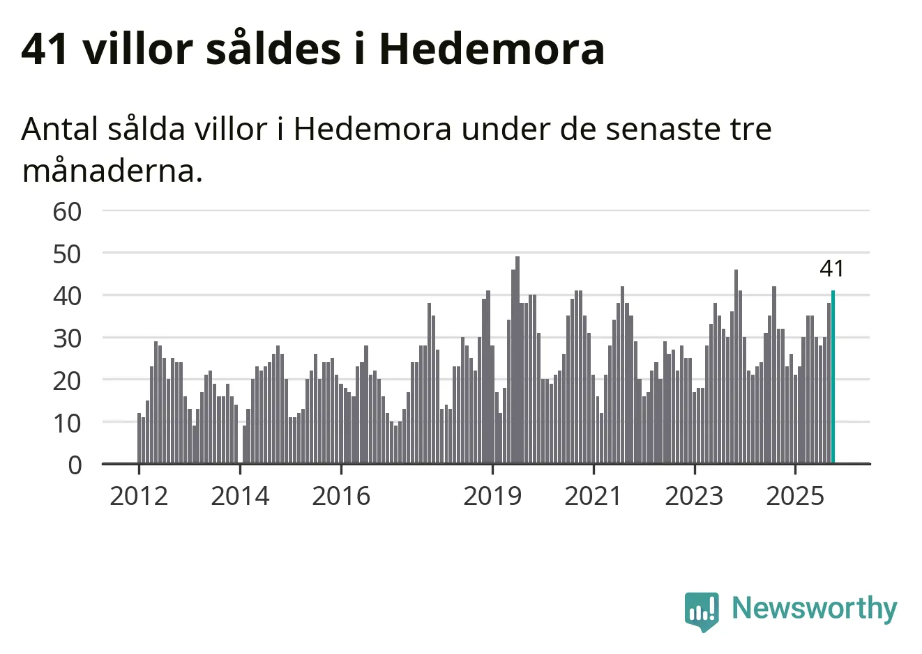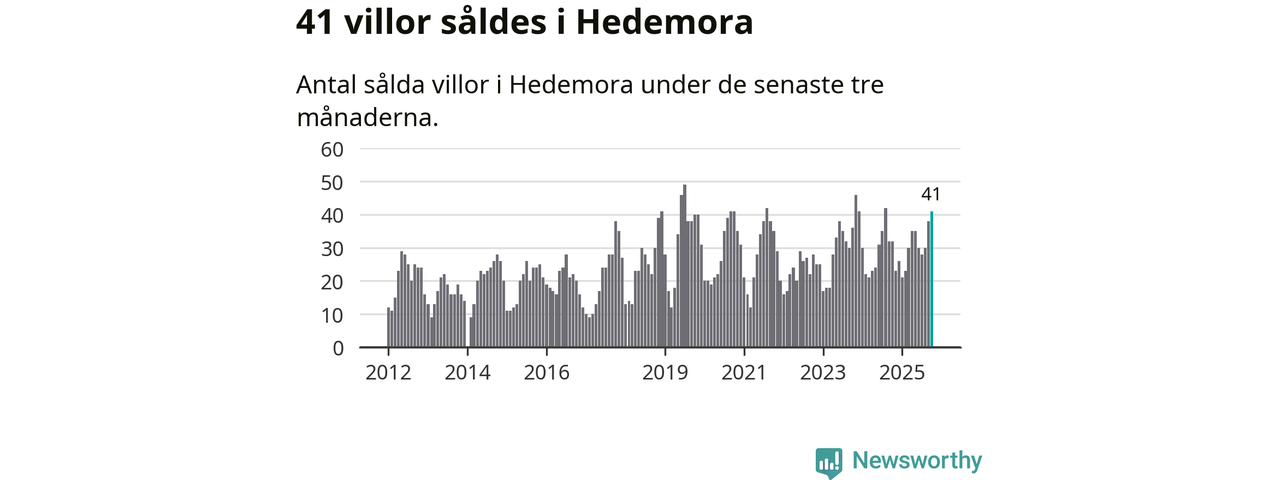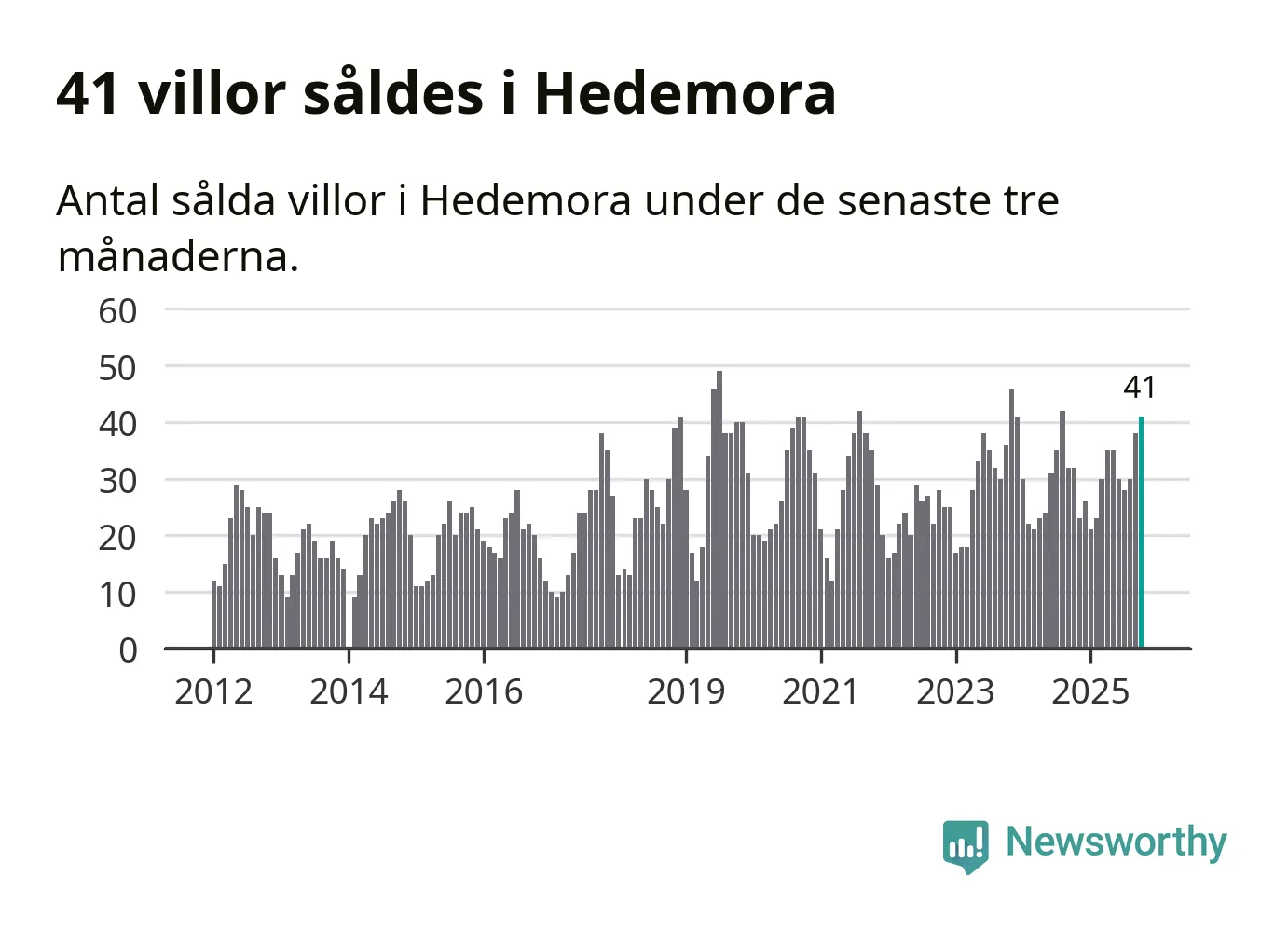 Mellan augusti och oktober gjordes sammanlagt 41 affärer med villor i Hedemora kommun. Det kan jämföras med 32 vid motsvarande tid i fjol.
