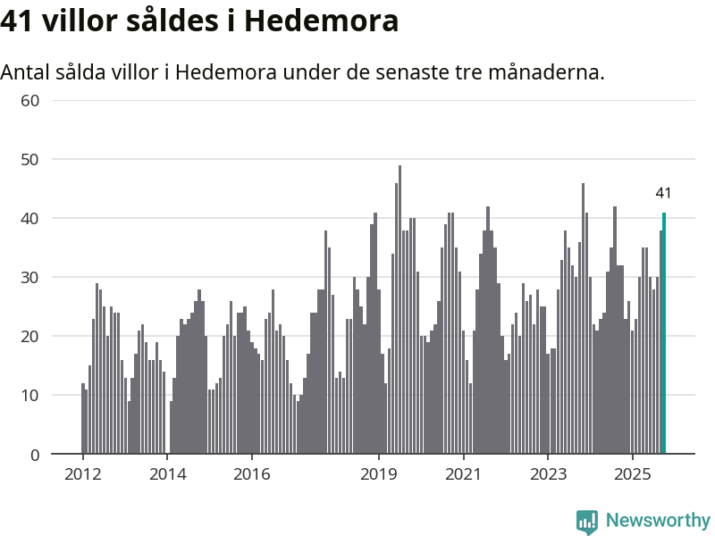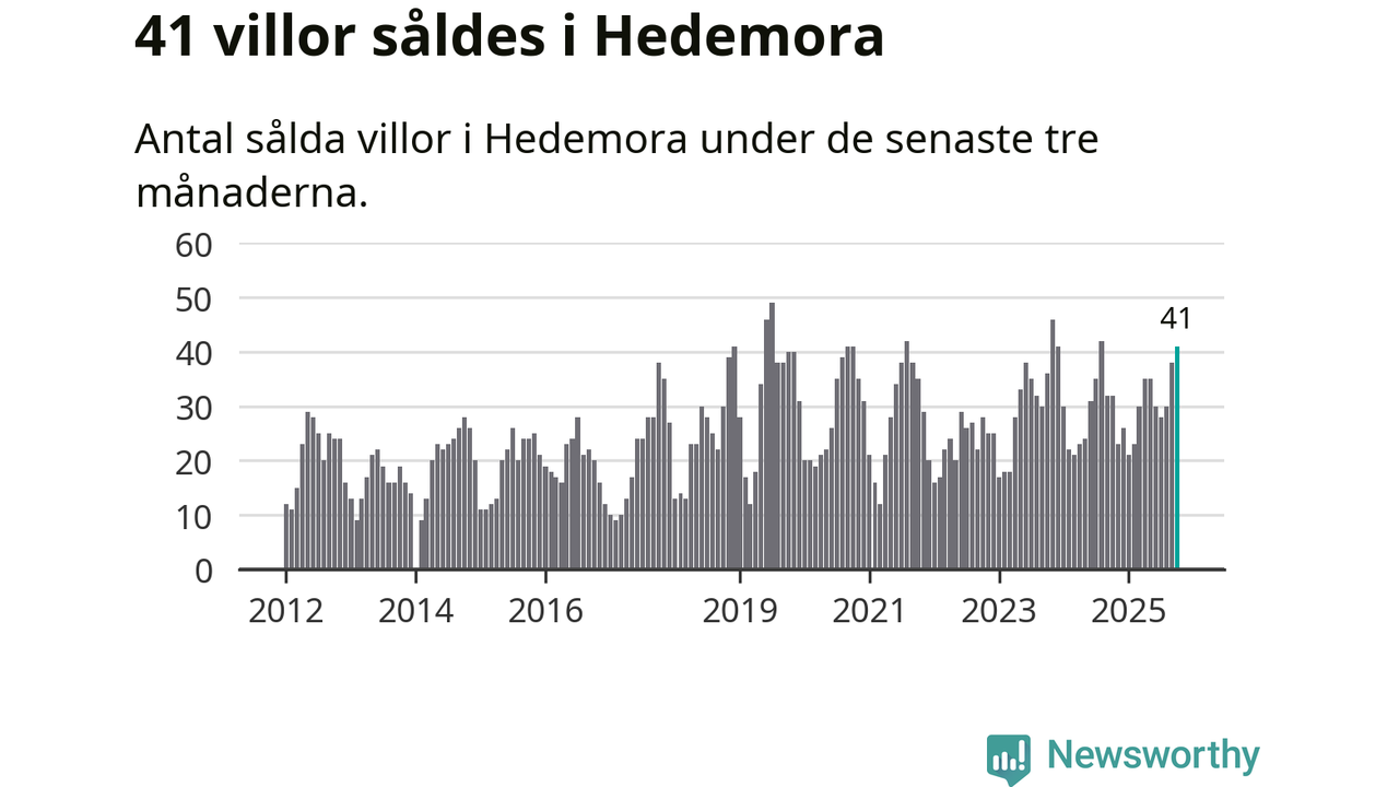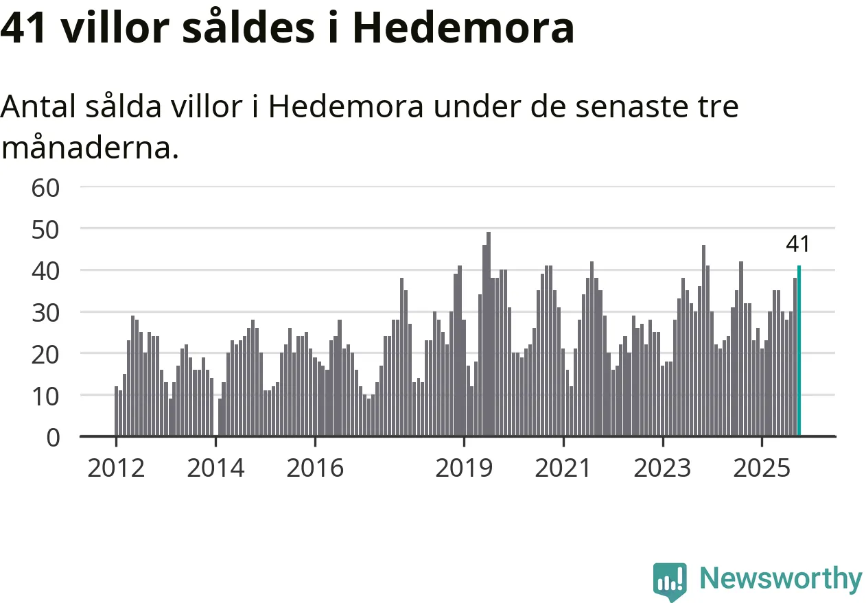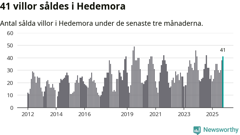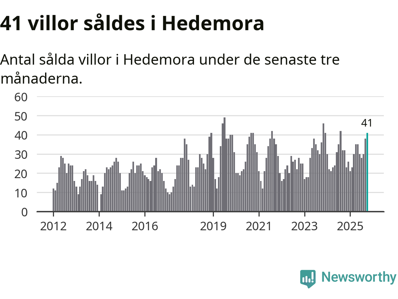 Mellan augusti och oktober gjordes sammanlagt 41 affärer med villor i Hedemora kommun. Det kan jämföras med 32 vid motsvarande tid i fjol.