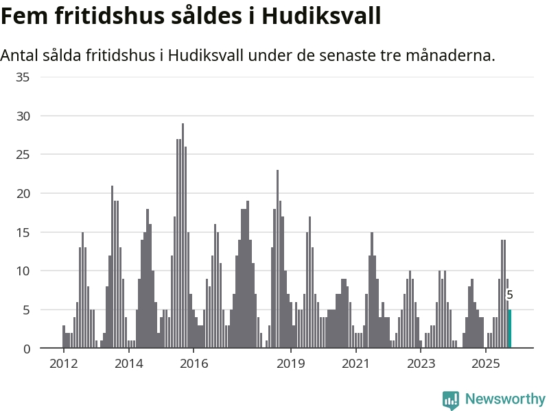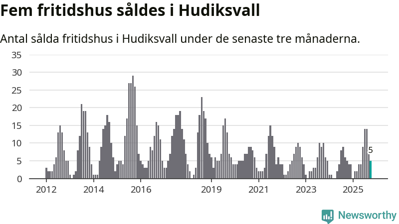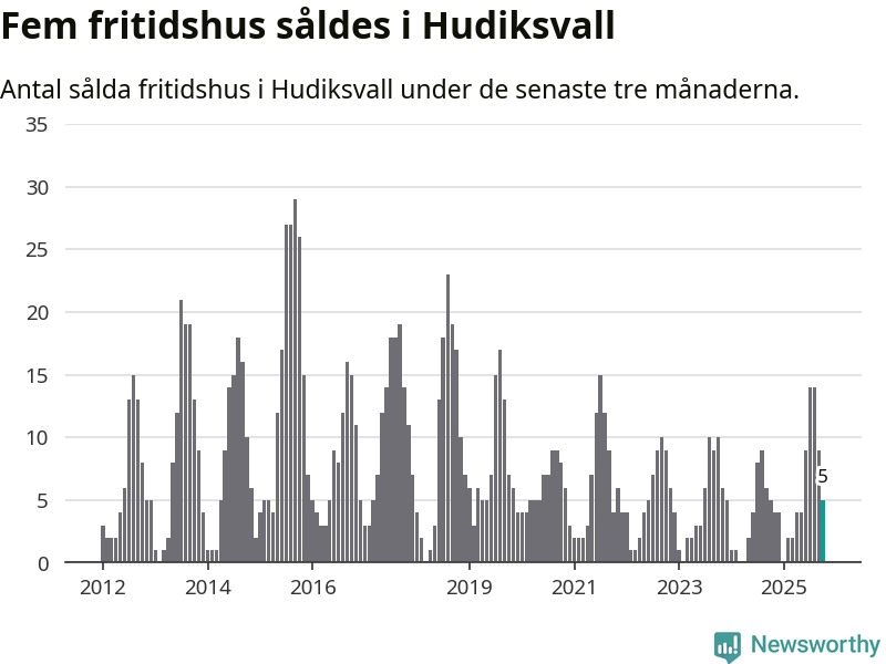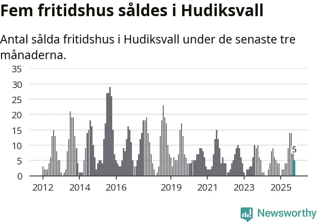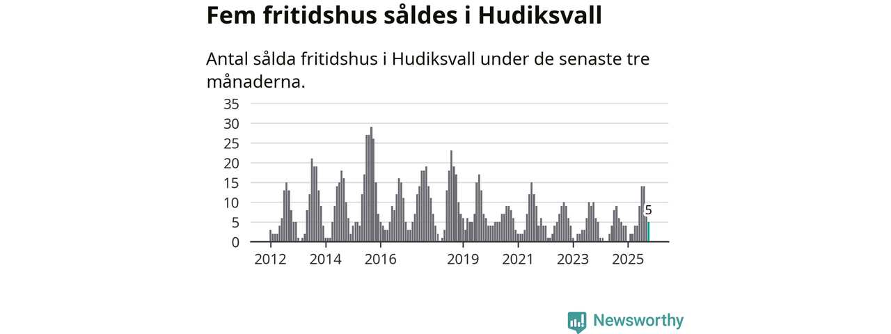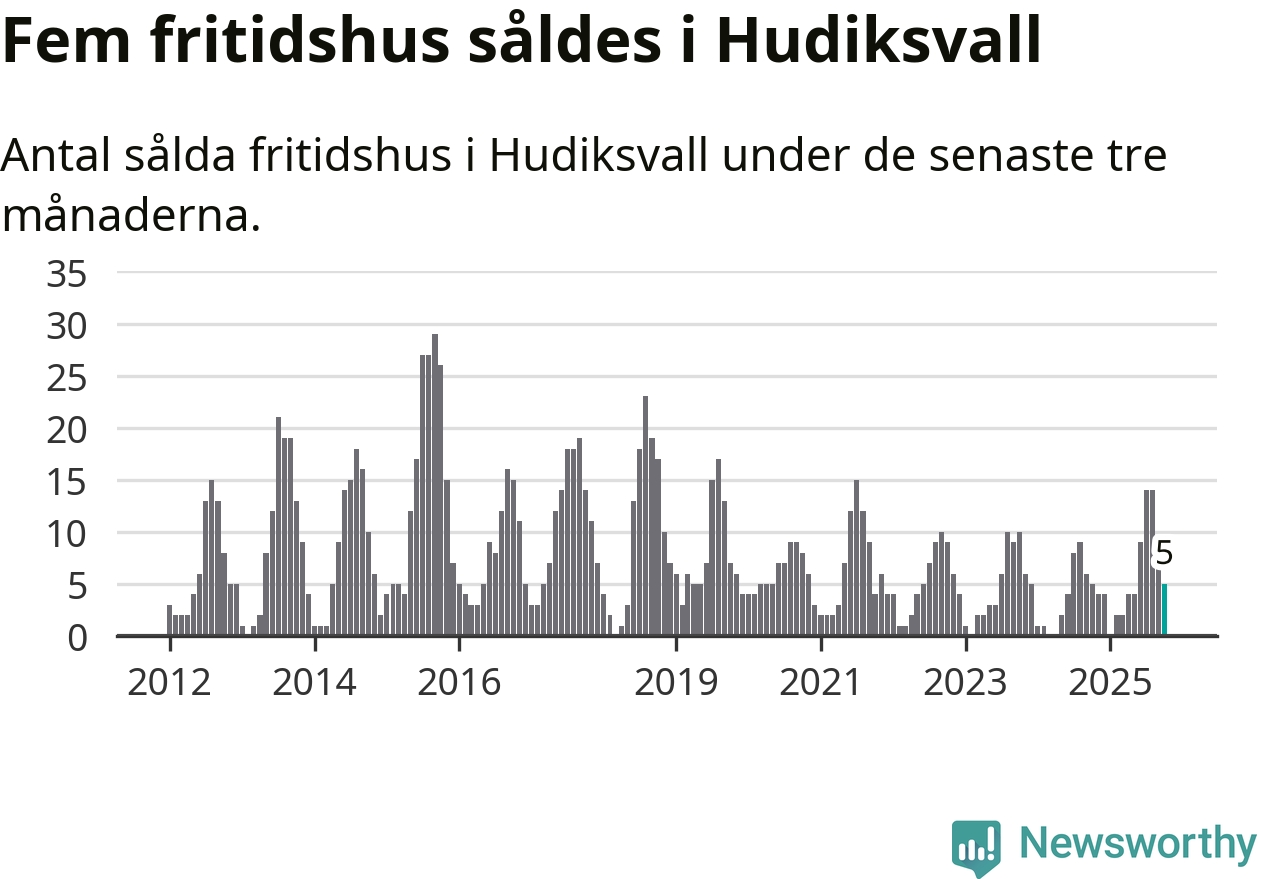 Mellan augusti och oktober gjordes sammanlagt fem affärer med fritidshus i Hudiksvalls kommun. Det är lika många affärer som vid motsvarande tid i fjol.