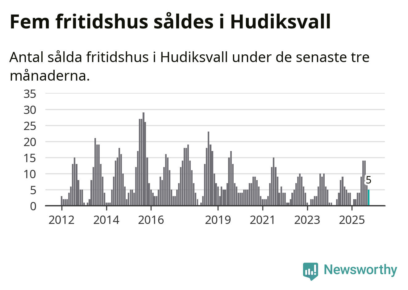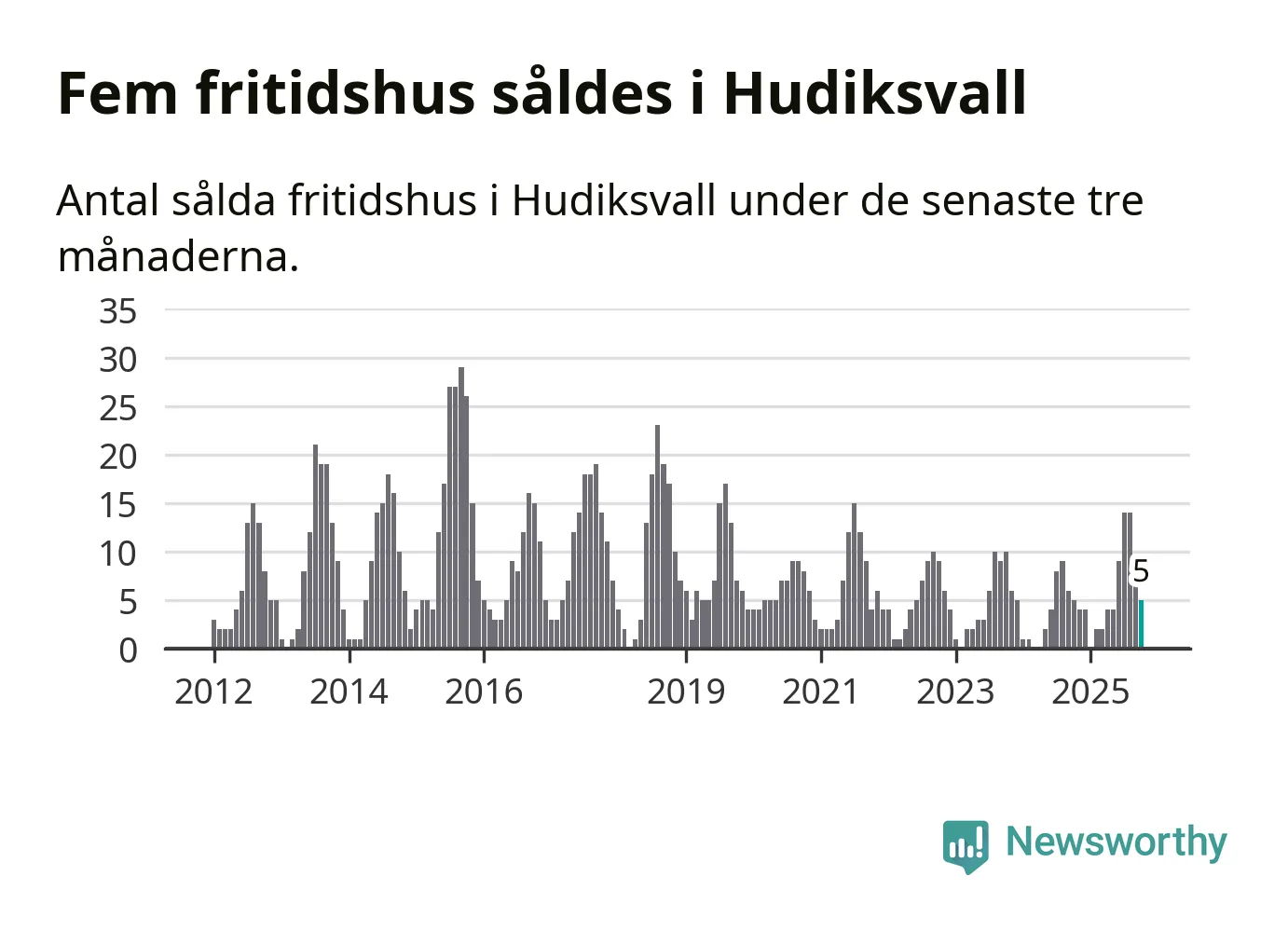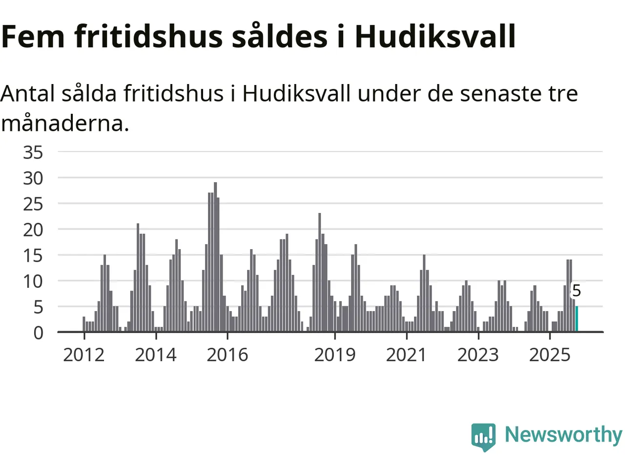 Mellan augusti och oktober gjordes sammanlagt fem affärer med fritidshus i Hudiksvalls kommun. Det är lika många affärer som vid motsvarande tid i fjol.