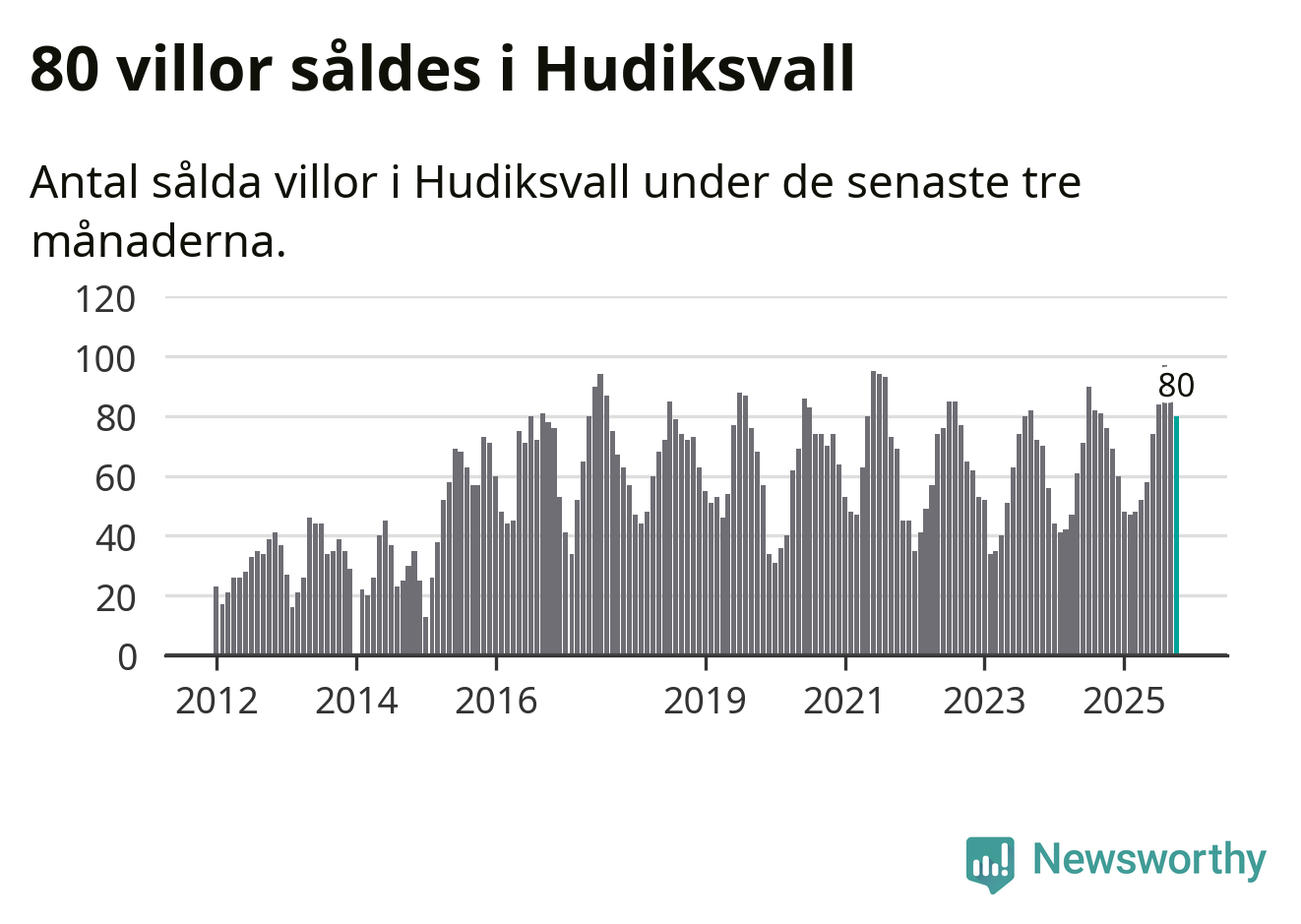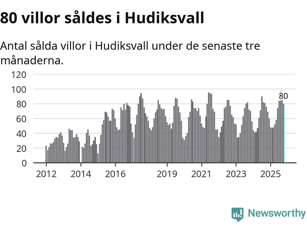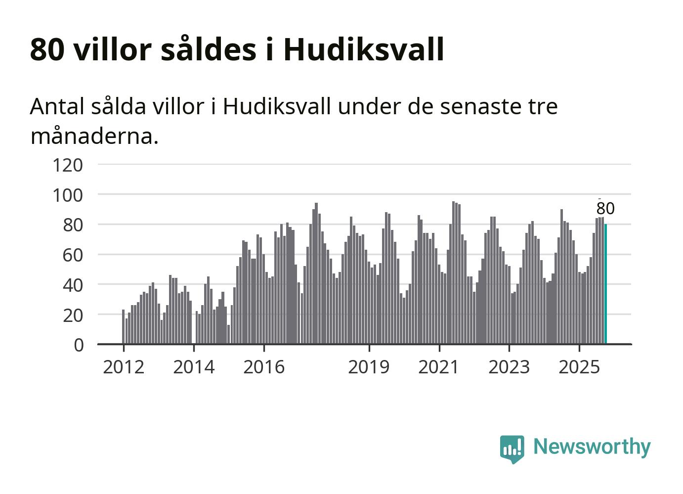 Sammanlagt såldes 80 villor i Hudiksvalls kommun mellan augusti och oktober till ett genomsnittligt pris på 2,3 miljoner kronor. I fjol gjordes 76 affärer vid den här tiden på året.