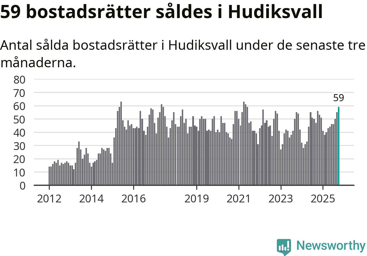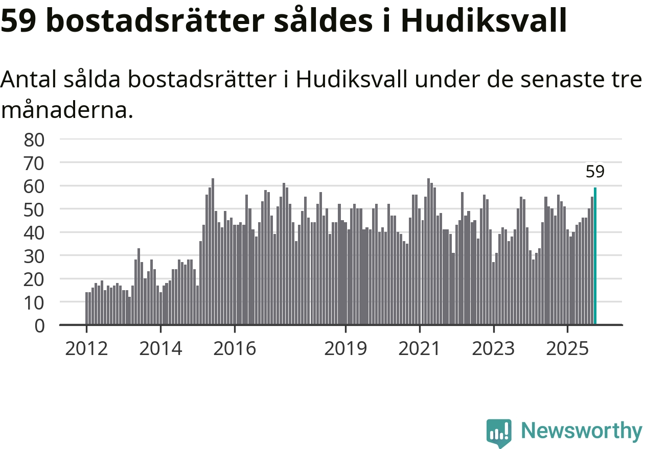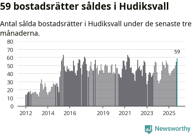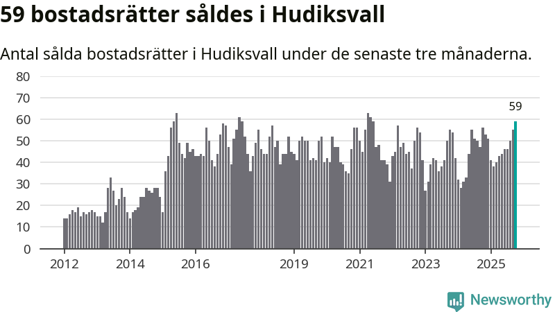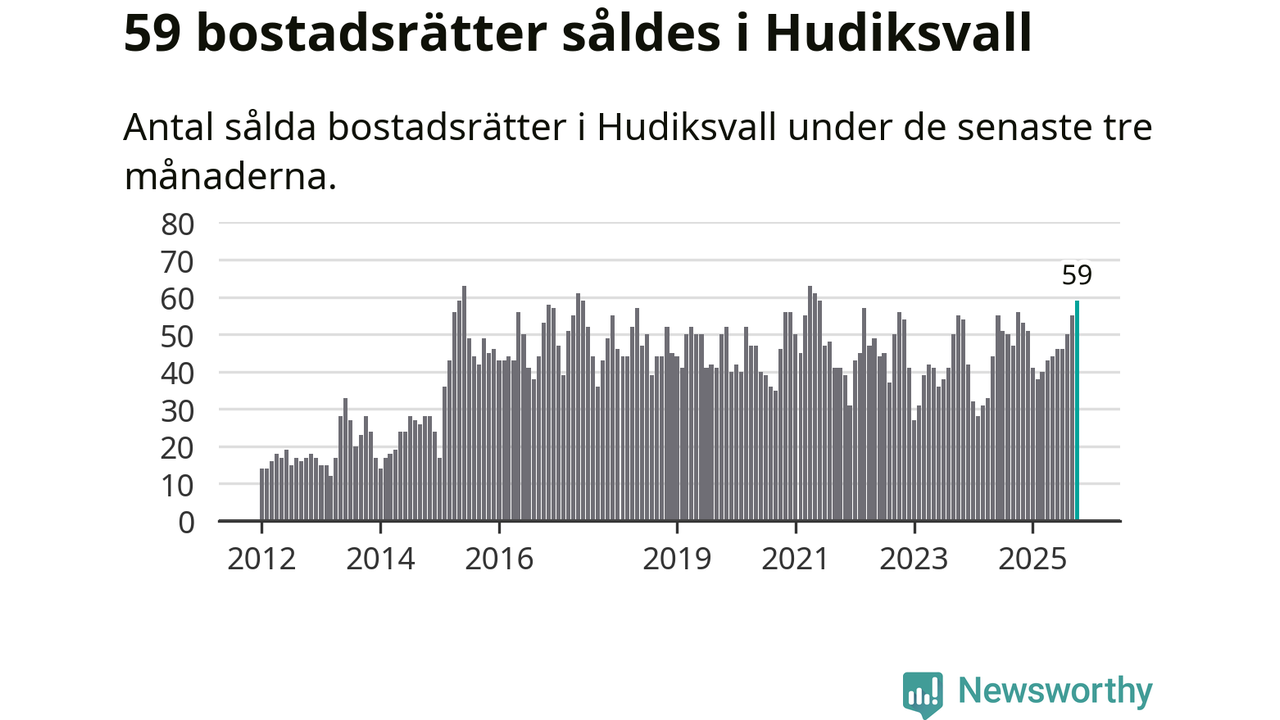 Mellan augusti och oktober såldes 59 bostadsrätter i Hudiksvalls kommun. Det är fler än någon tremånadersperiod sedan 2021.