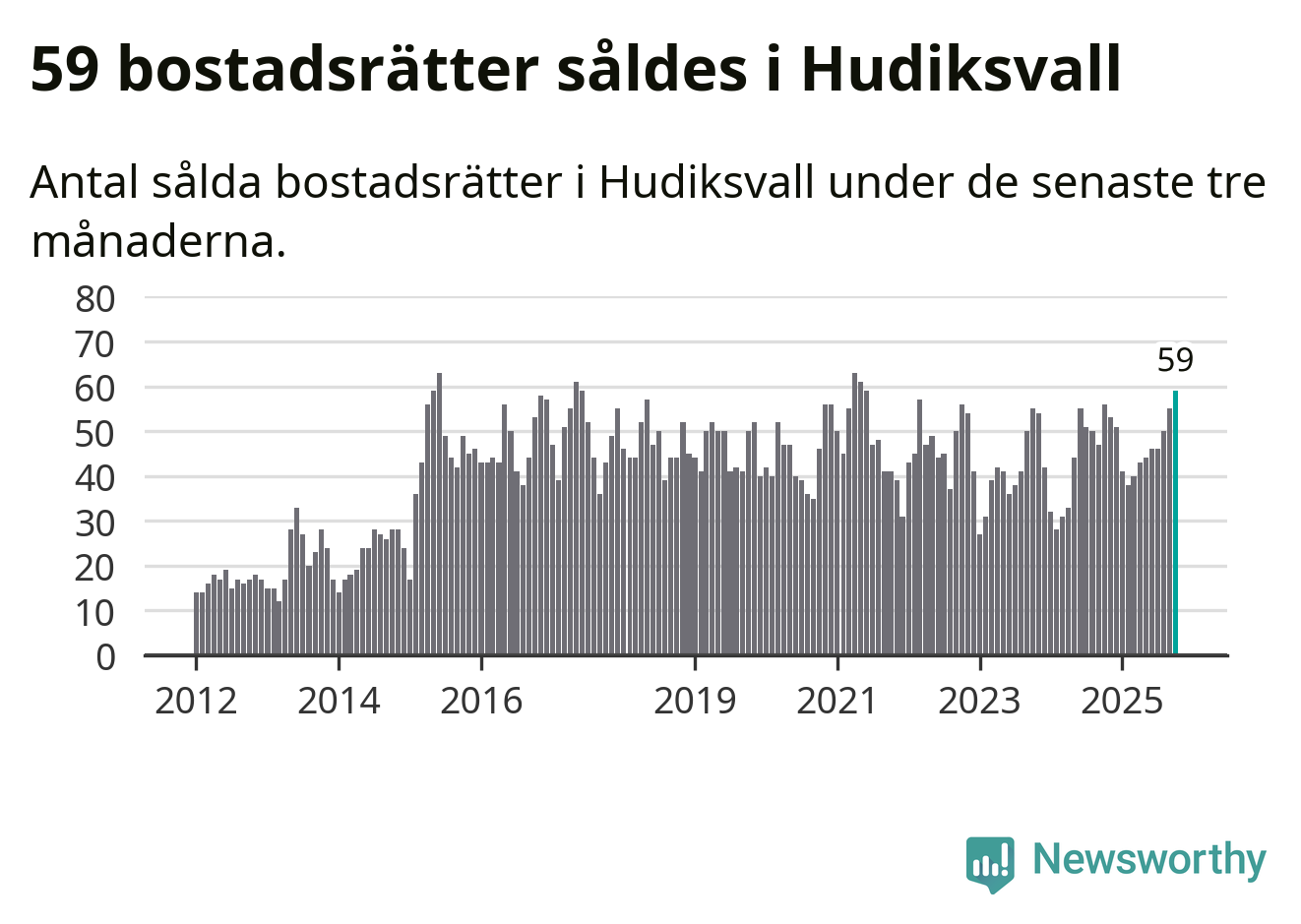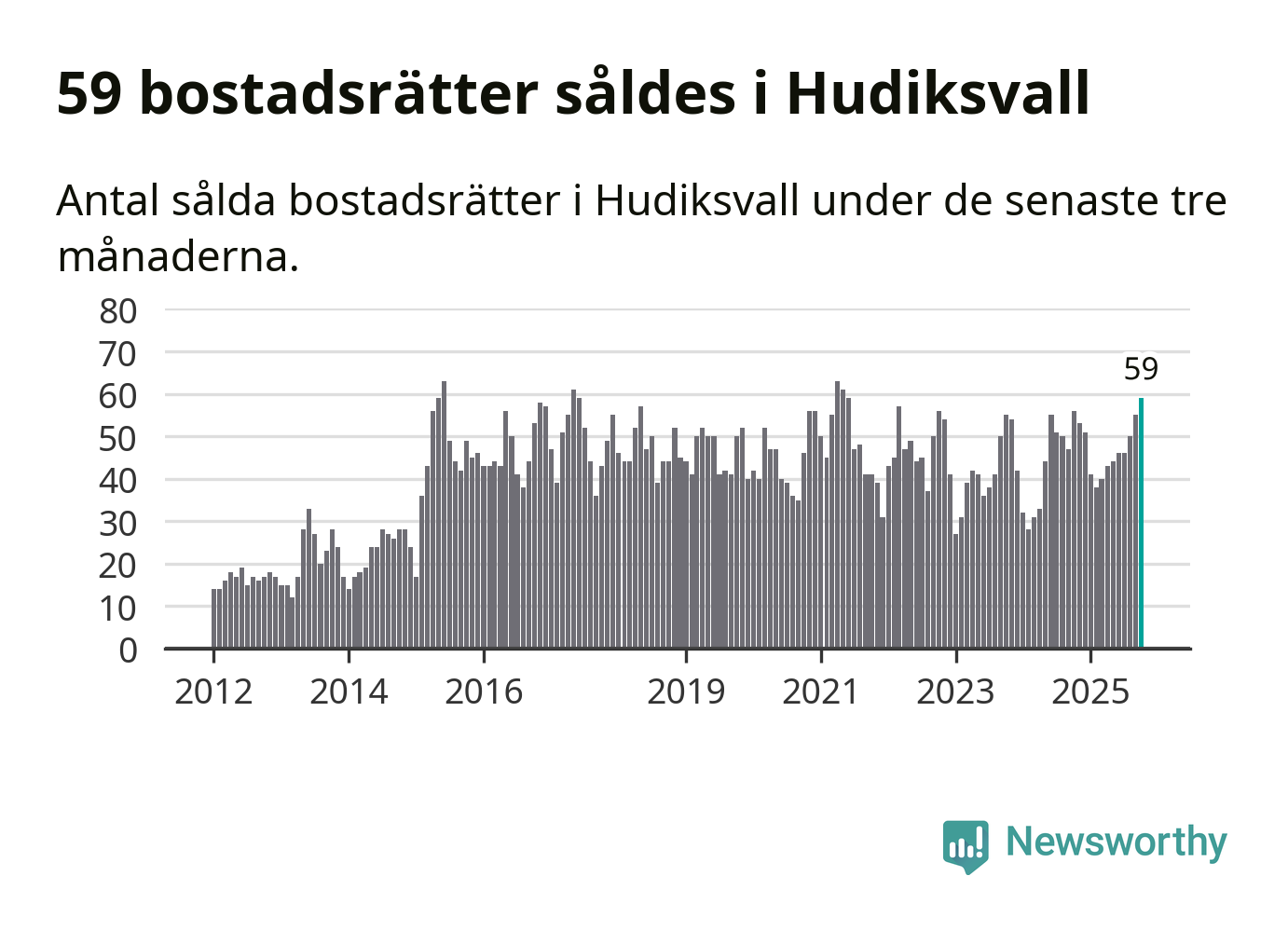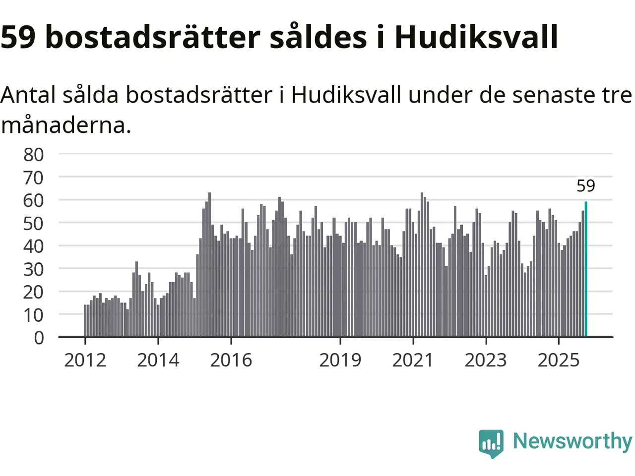 Mellan augusti och oktober såldes 59 bostadsrätter i Hudiksvalls kommun. Det är fler än någon tremånadersperiod sedan 2021.