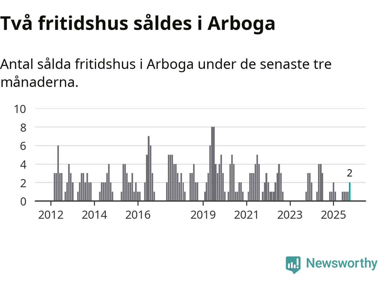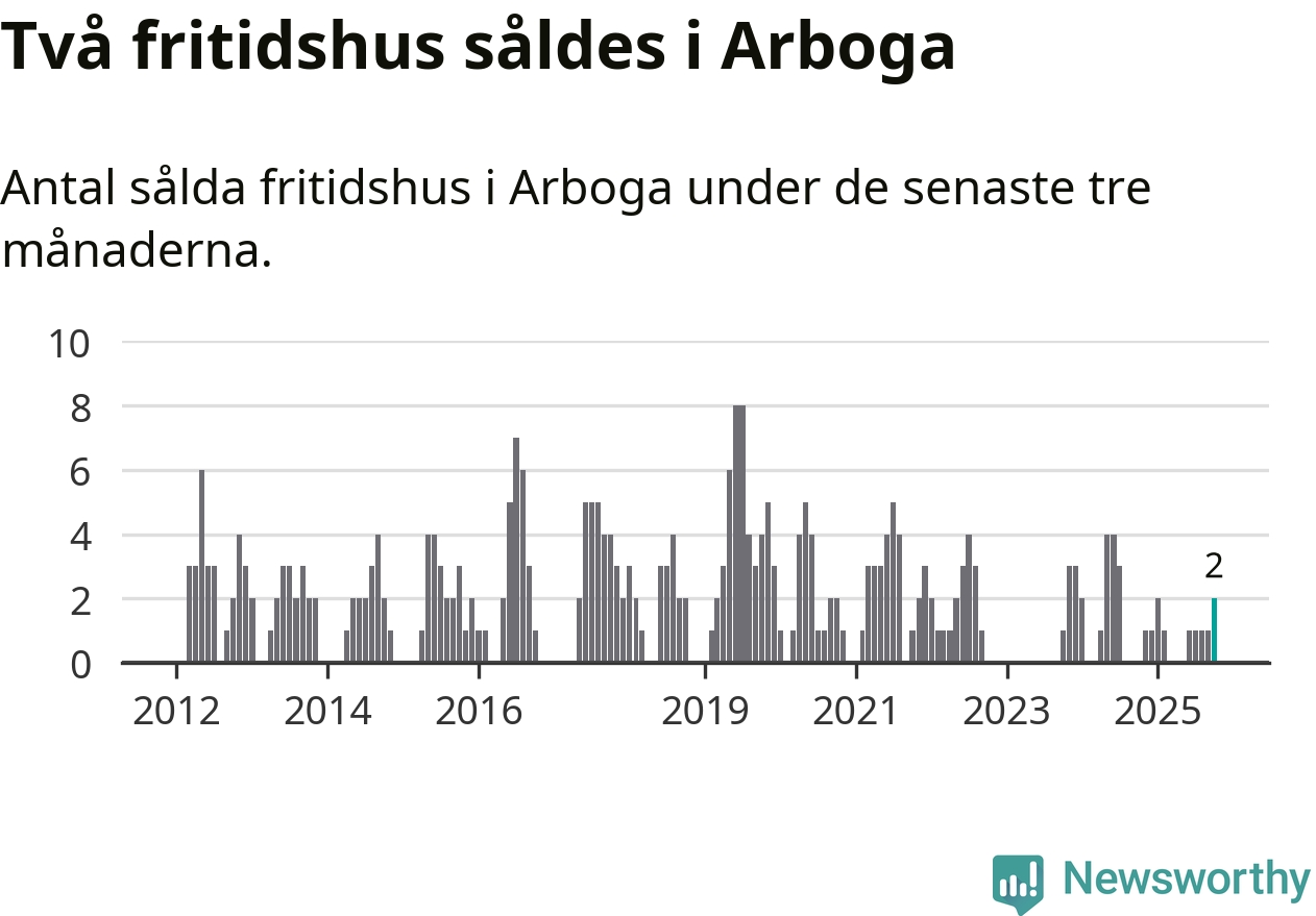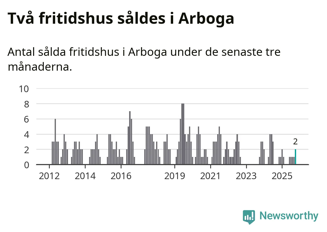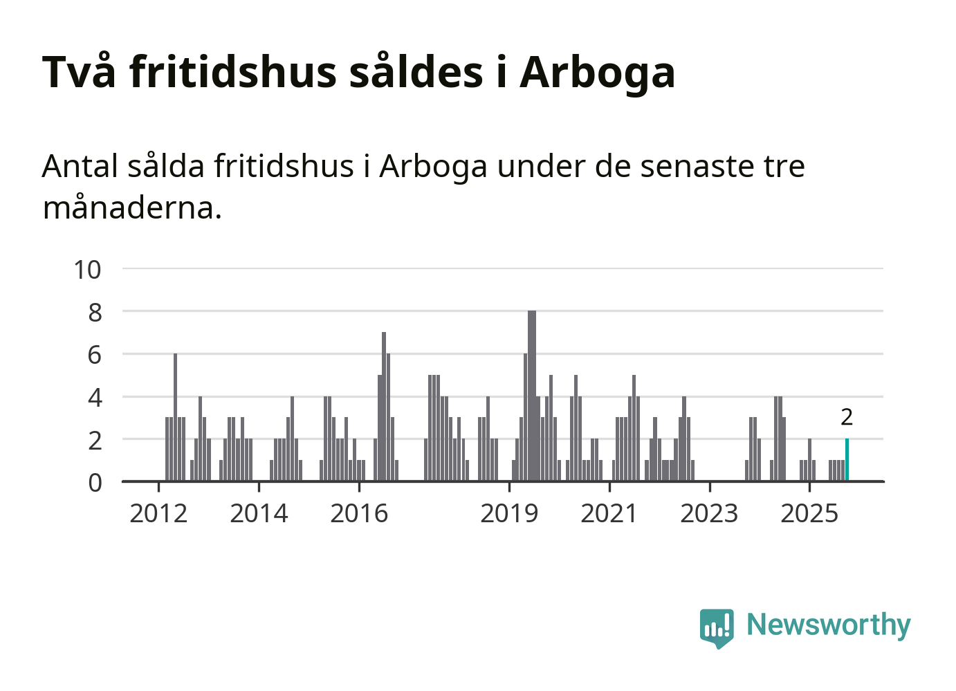 Mellan augusti och oktober gjordes sammanlagt två affärer med fritidshus i Arboga kommun.
