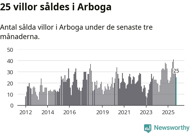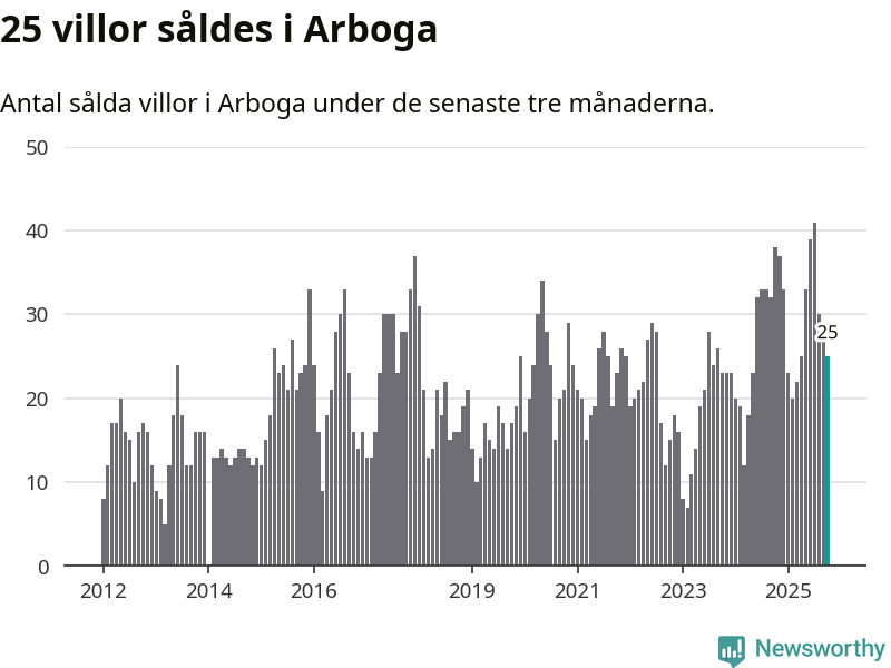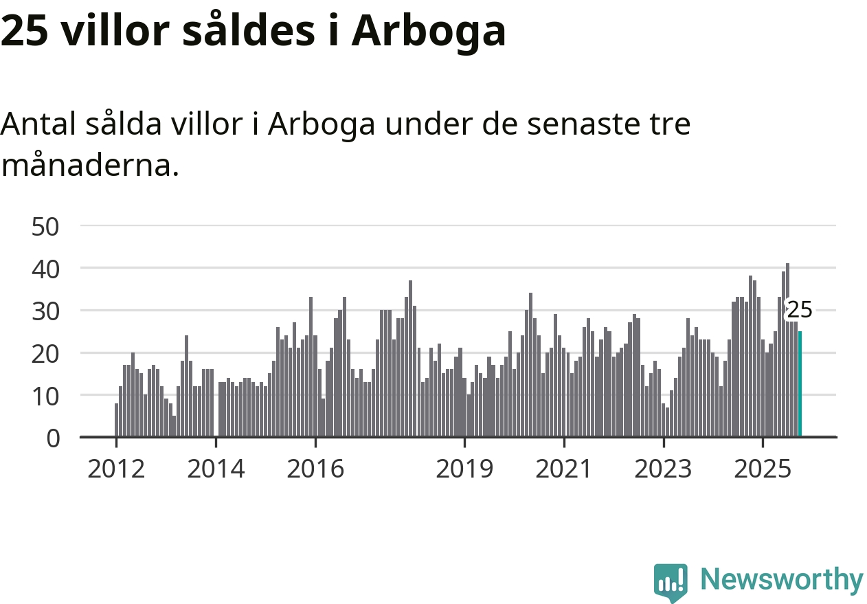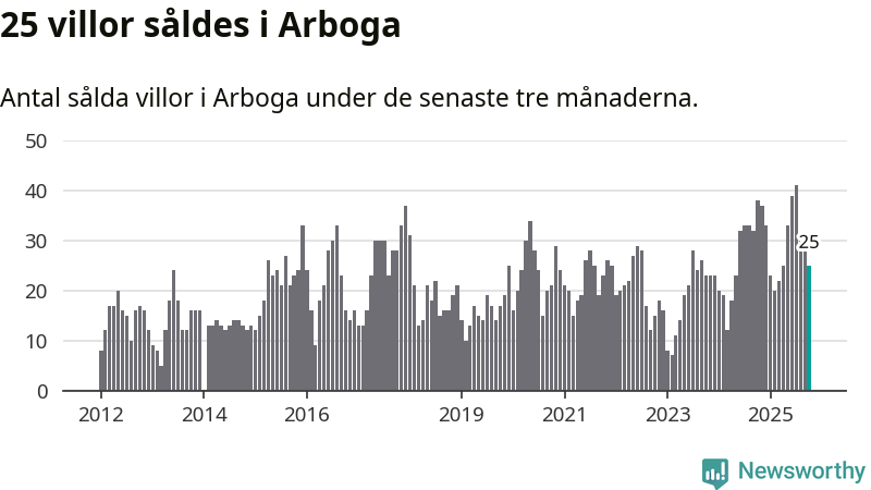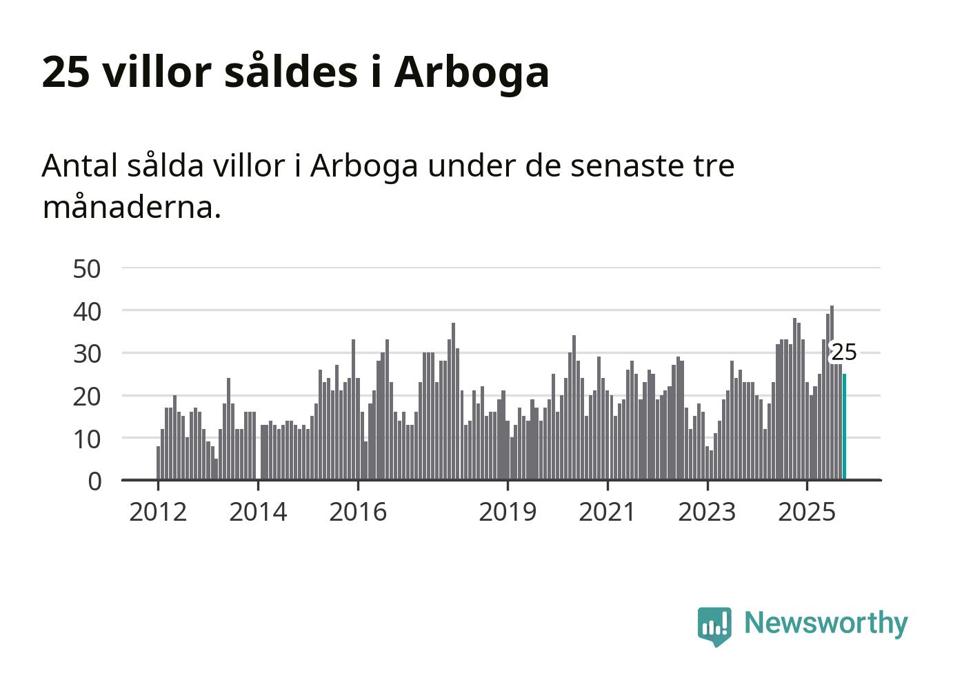Mellan augusti och oktober gjordes sammanlagt 25 affärer med villor i Arboga kommun. Det kan jämföras med 38 vid motsvarande tid i fjol.