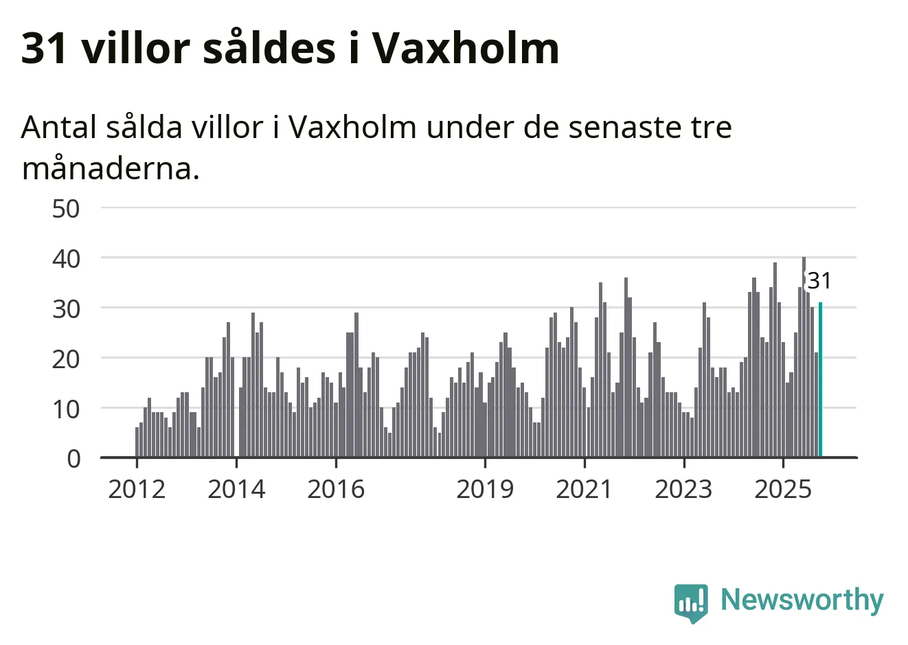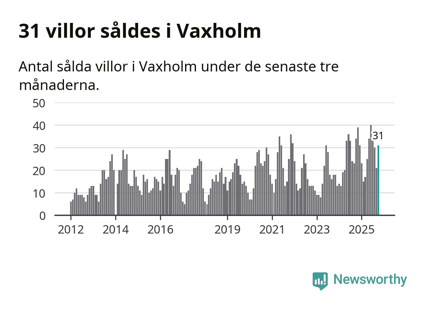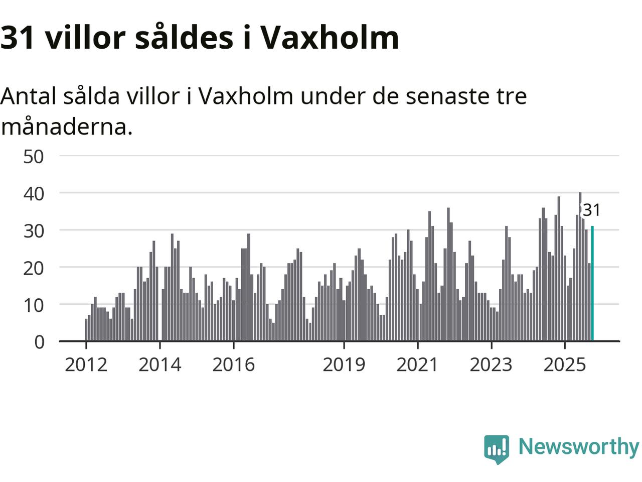 Mellan augusti och oktober gjordes sammanlagt 31 affärer med villor i Vaxholms kommun. Det kan jämföras med 34 vid motsvarande tid i fjol.