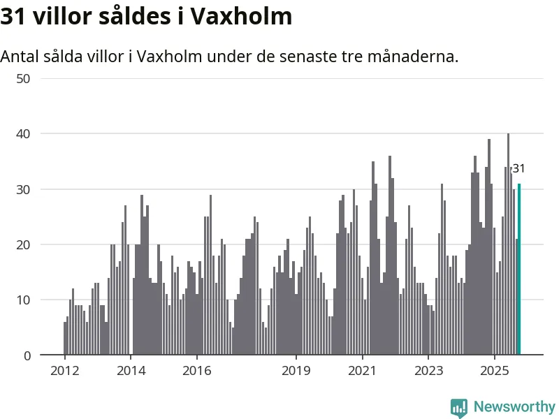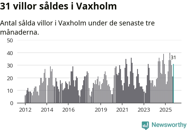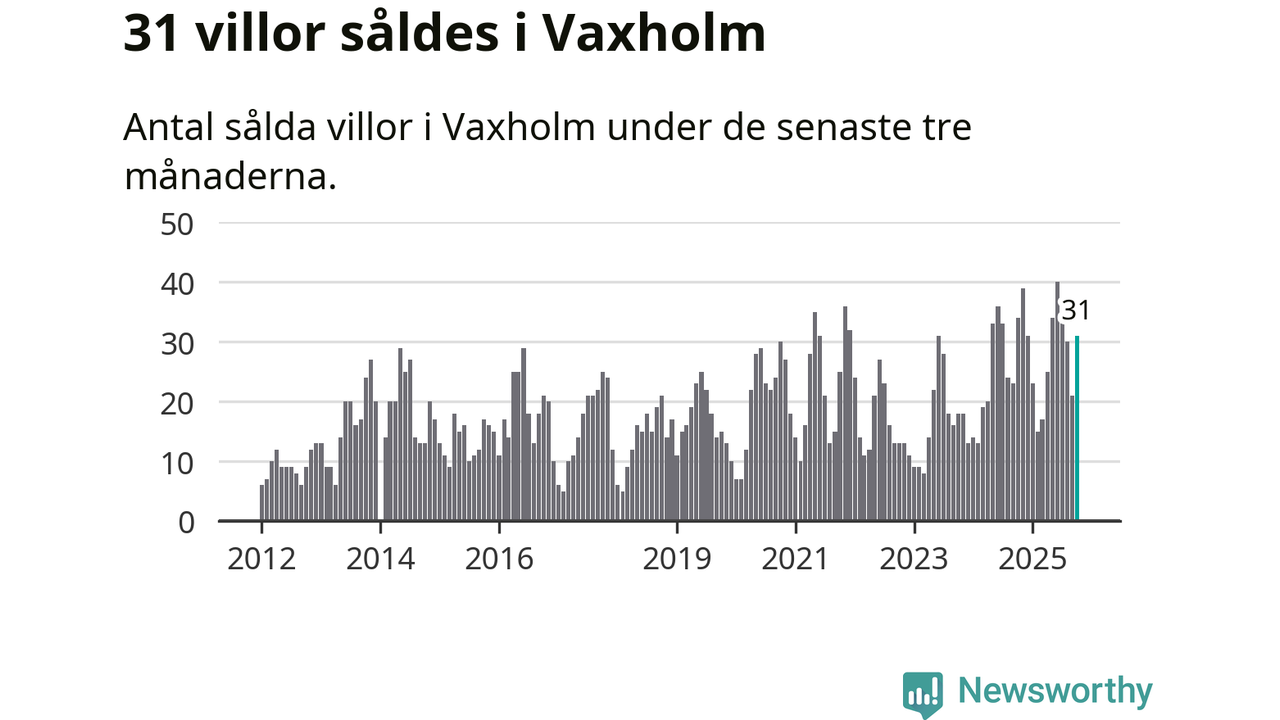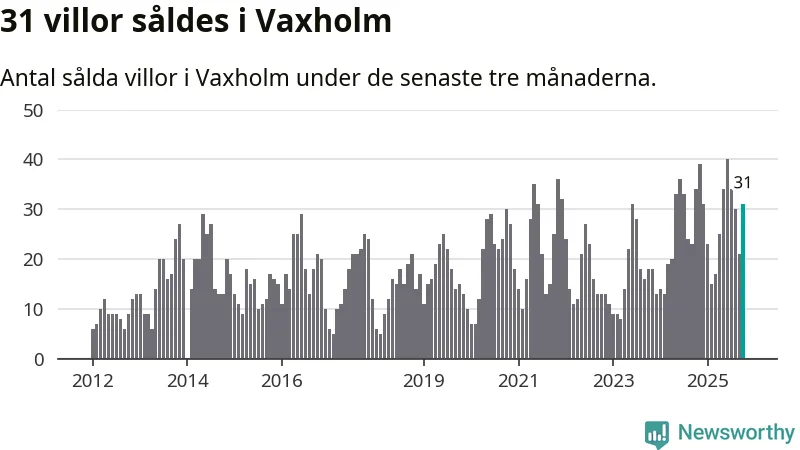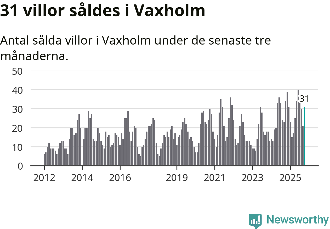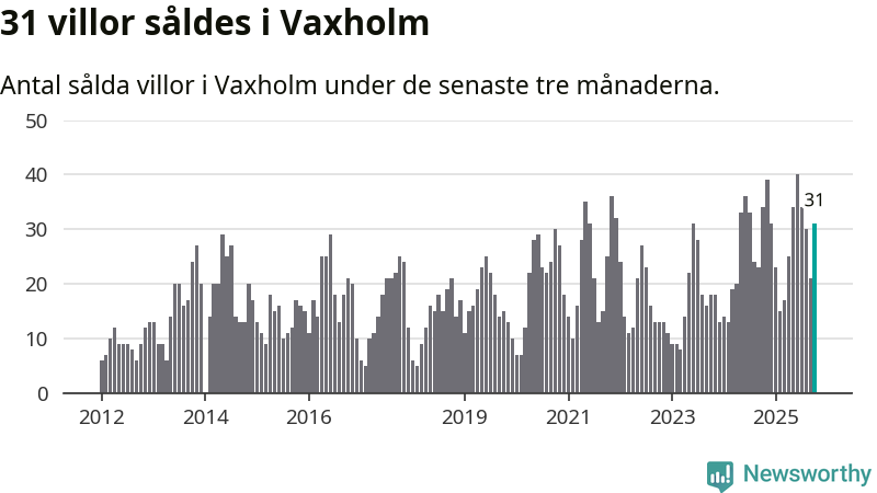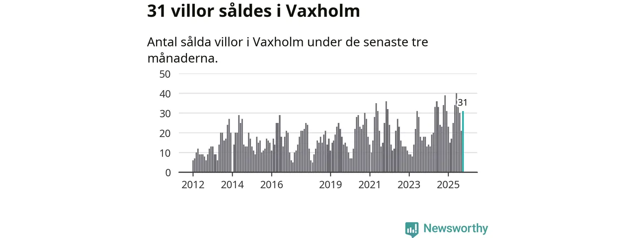 Mellan augusti och oktober gjordes sammanlagt 31 affärer med villor i Vaxholms kommun. Det kan jämföras med 34 vid motsvarande tid i fjol.