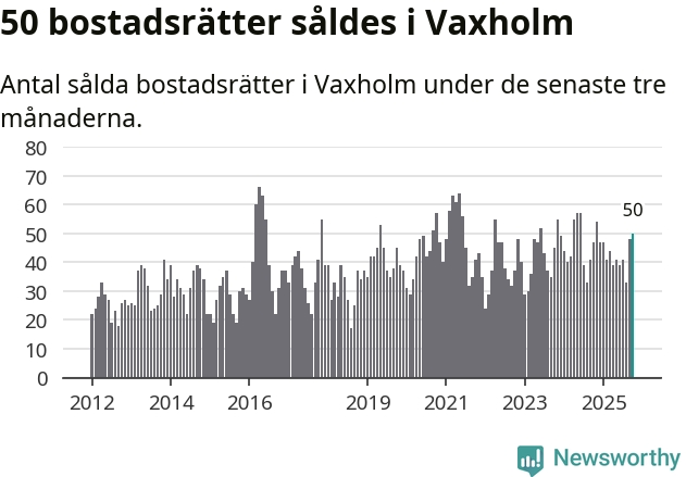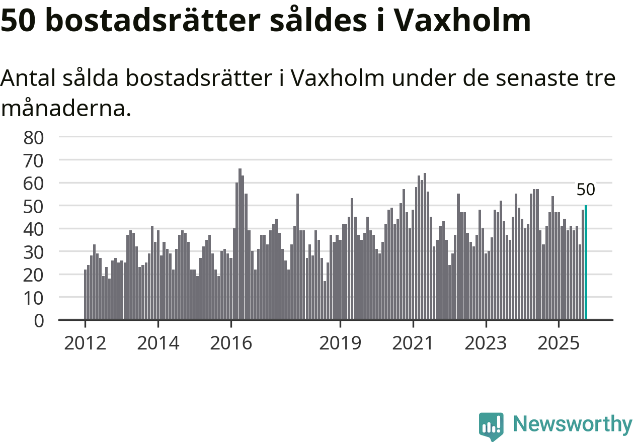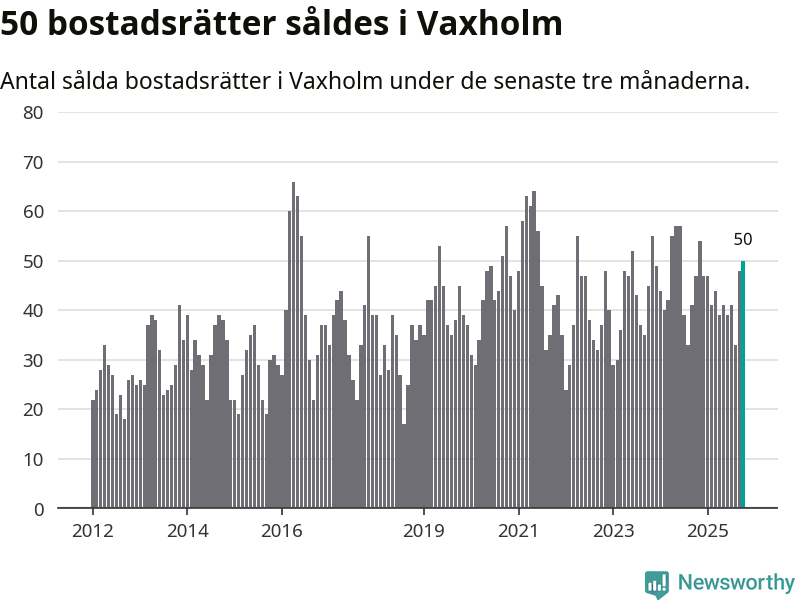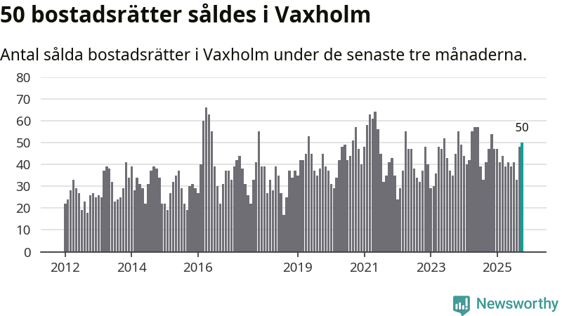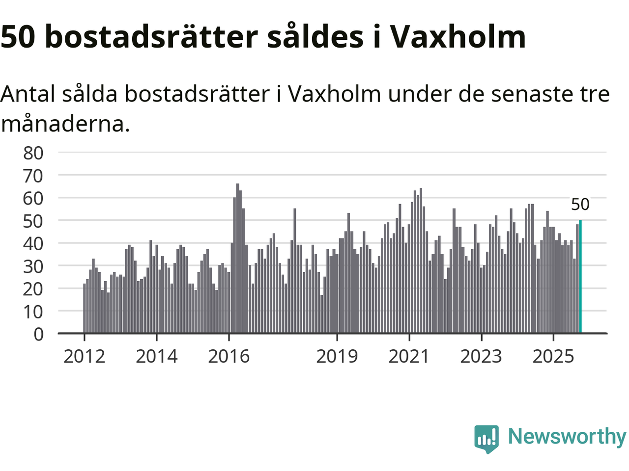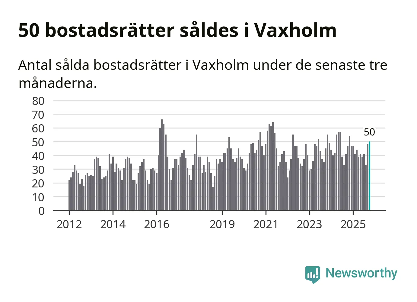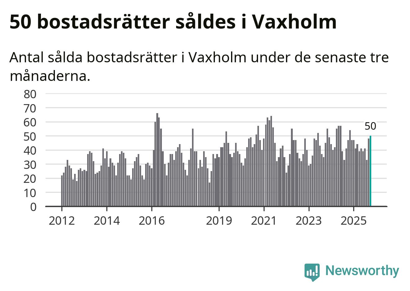 Sammanlagt såldes 50 bostadsrätter i Vaxholms kommun mellan augusti och oktober till ett genomsnittligt pris på 3,4 miljoner kronor. I fjol gjordes 47 affärer vid den här tiden på året.