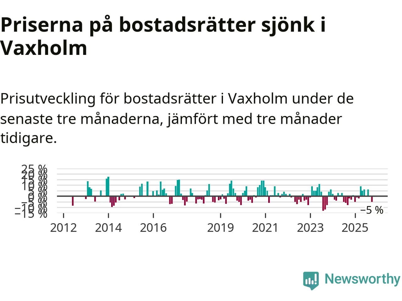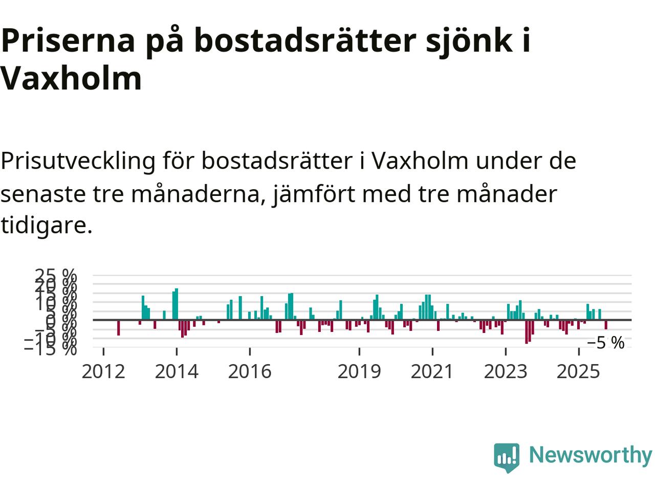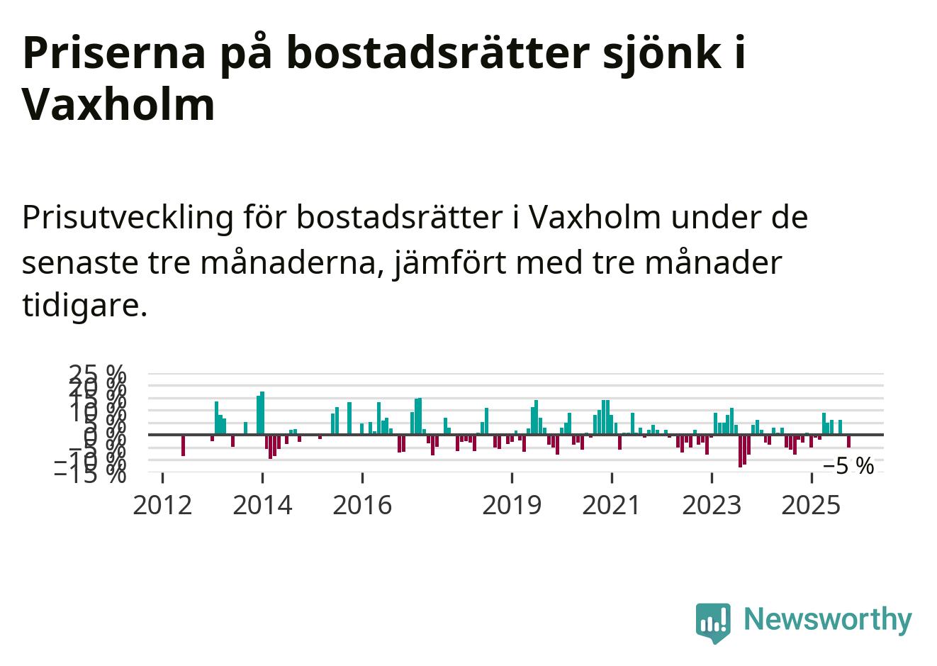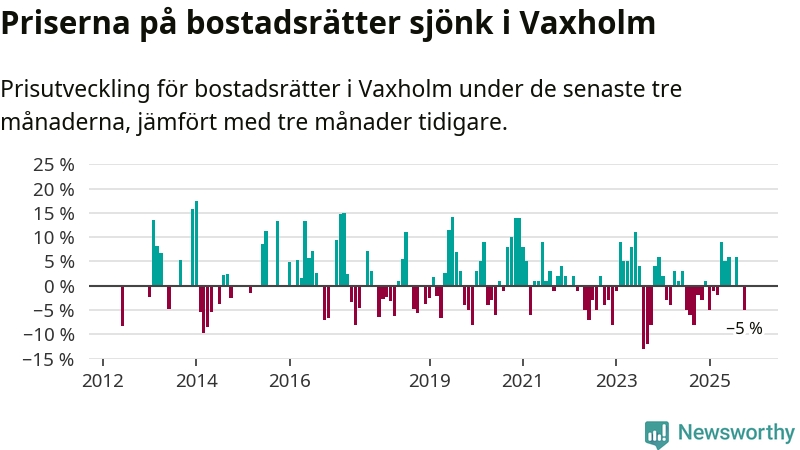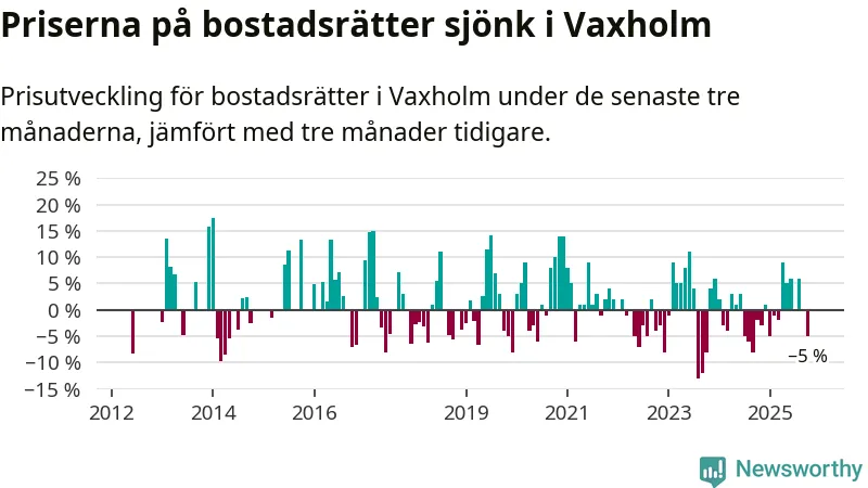 Priserna på bostadsrätter har gått ner i Vaxholms kommun. Medelpriset på försäljningarna under de senaste tre månaderna visar på en nedgång med 5 procent.
