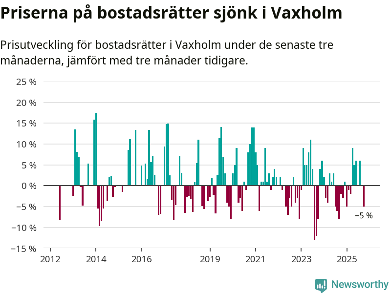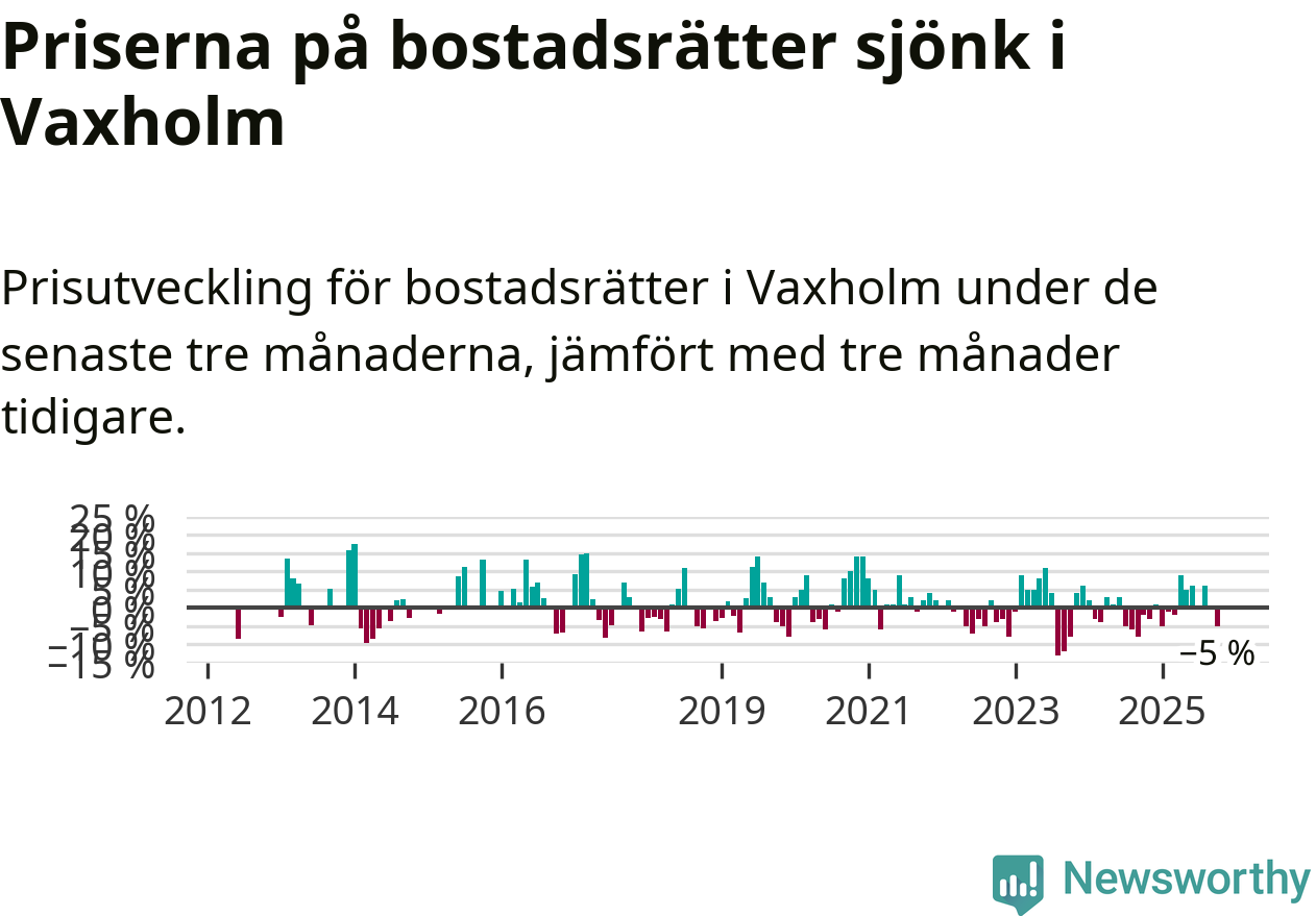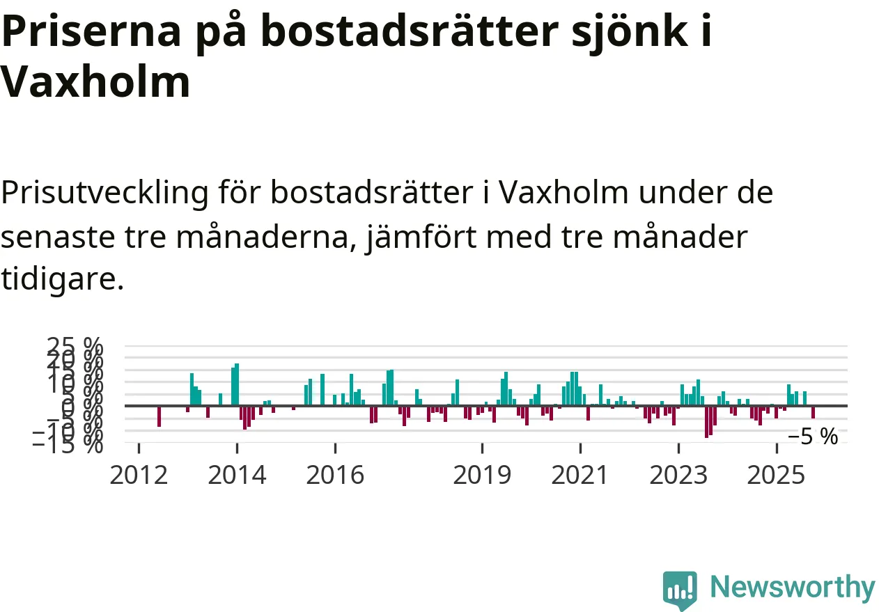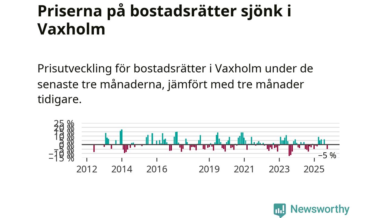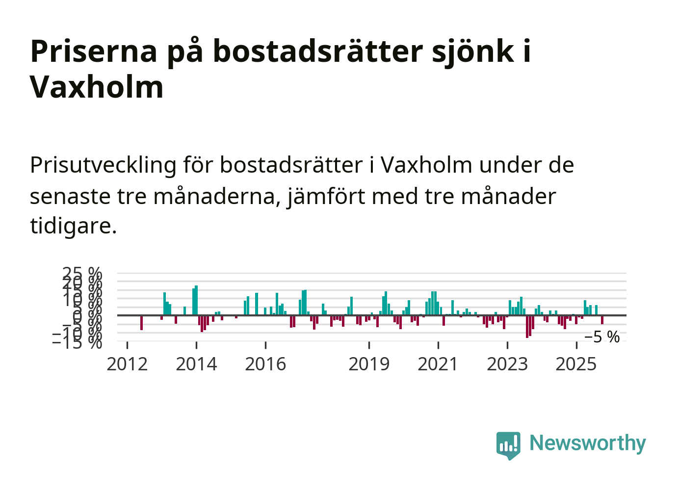 Priserna på bostadsrätter har gått ner i Vaxholms kommun. Medelpriset på försäljningarna under de senaste tre månaderna visar på en nedgång med 5 procent.