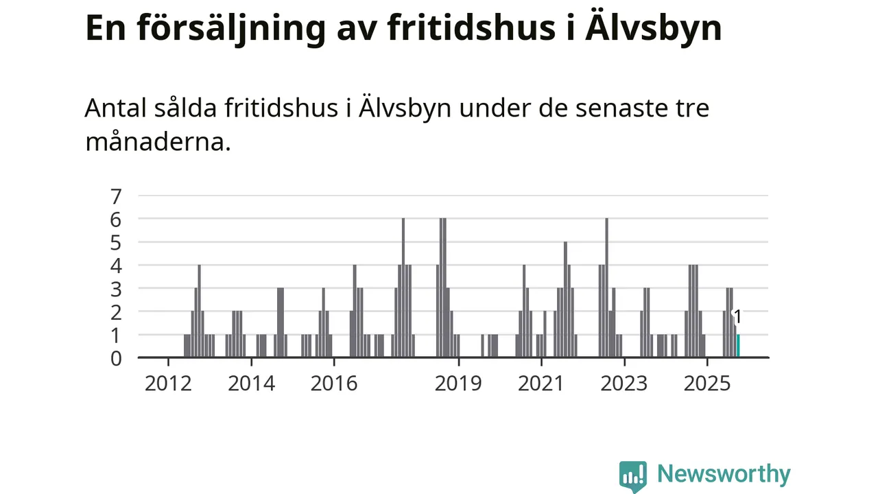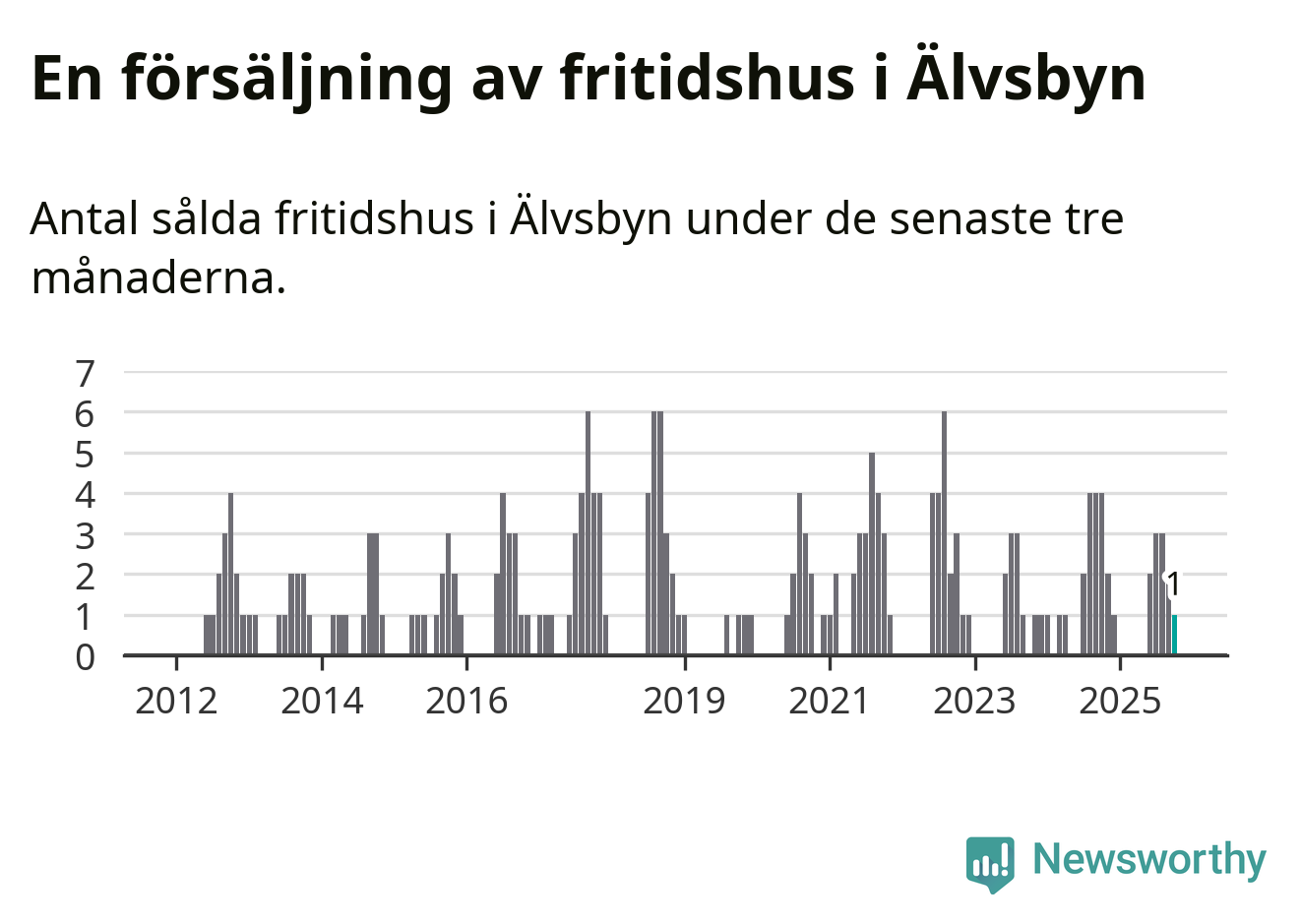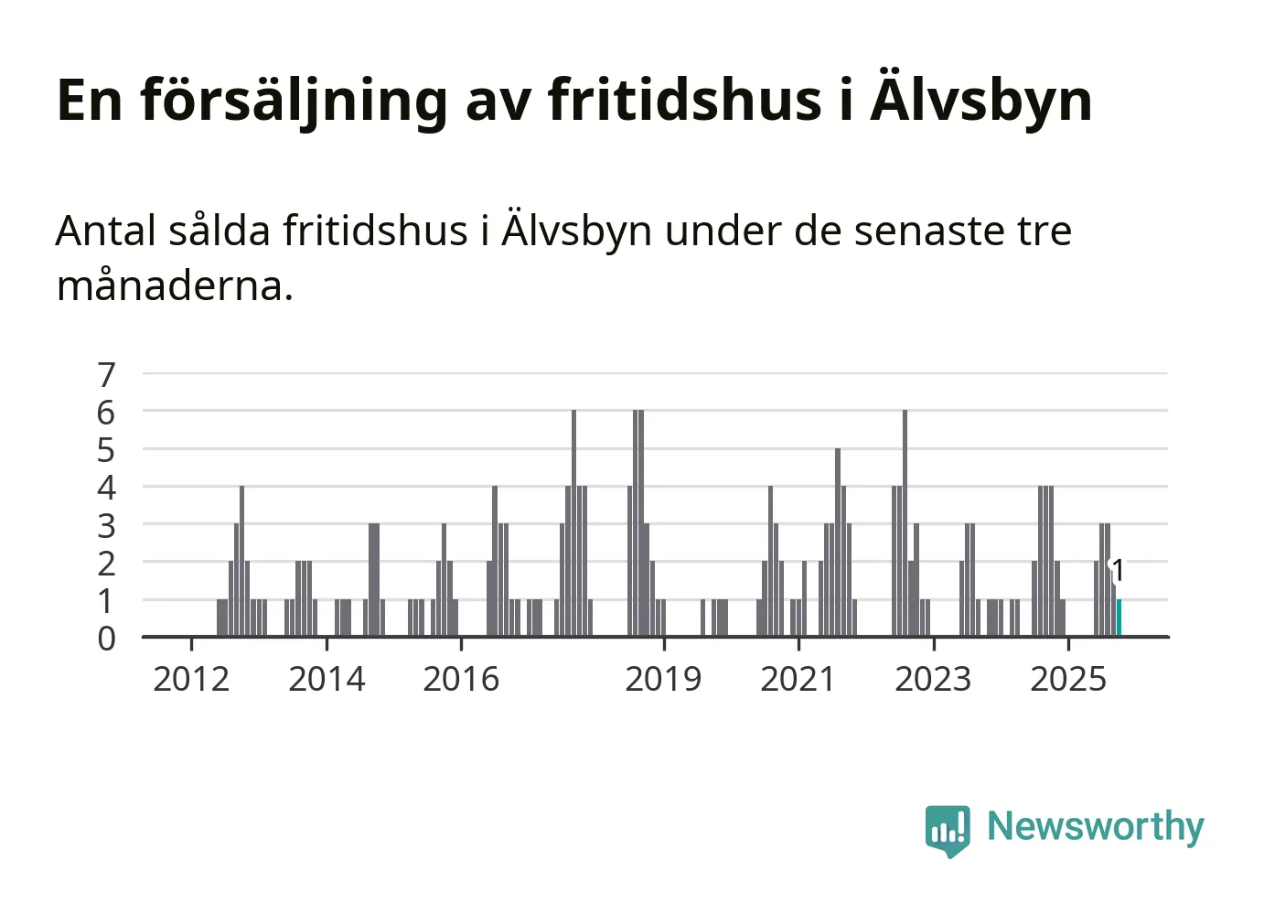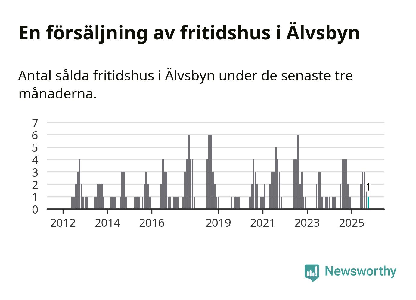 Mellan augusti och oktober gjordes sammanlagt en affär med fritidshus i Älvsbyns kommun. Det kan jämföras med fyra vid motsvarande tid i fjol.