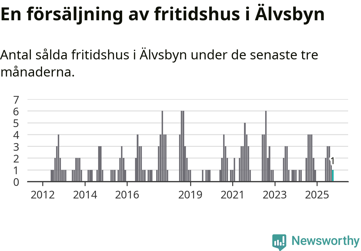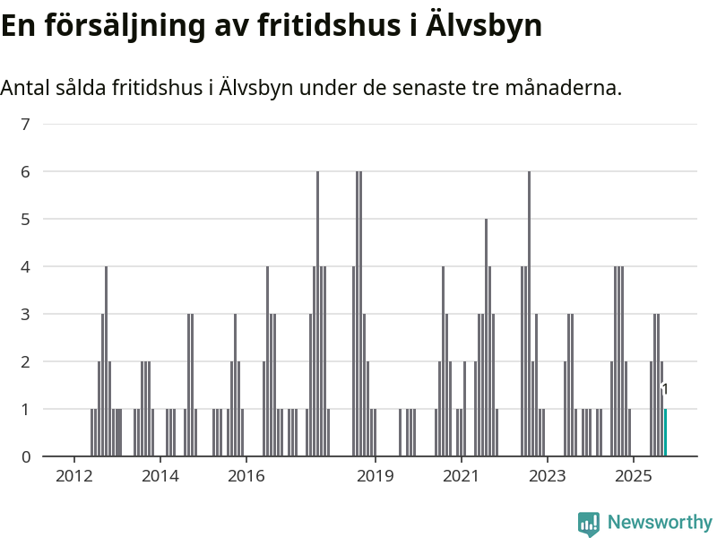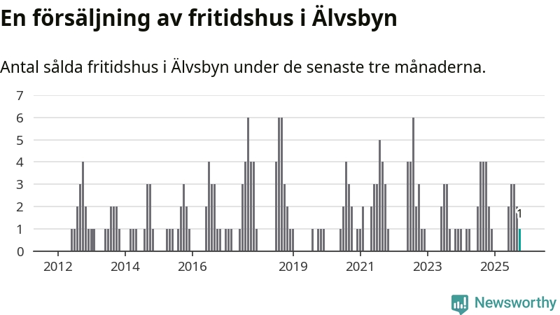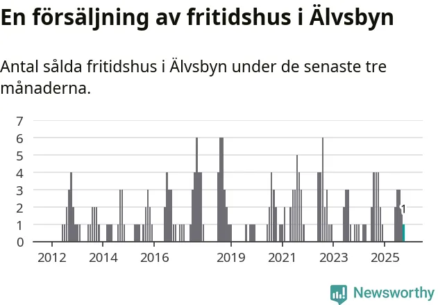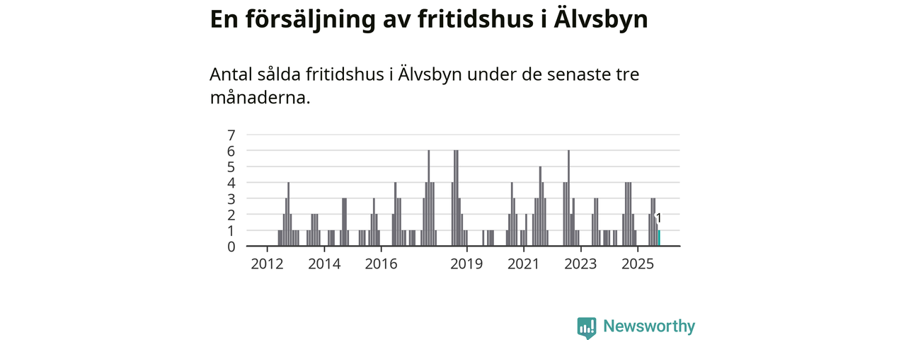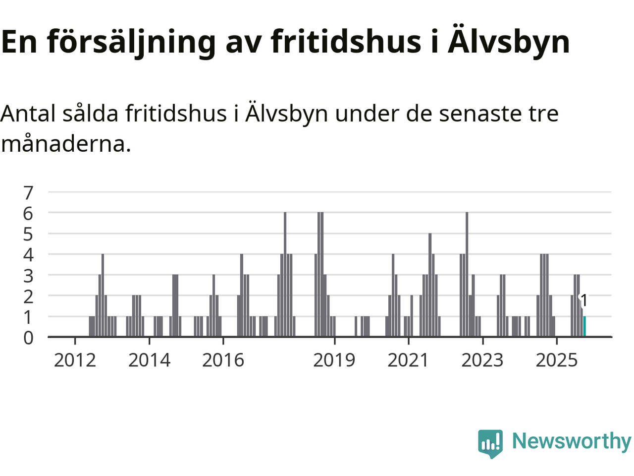 Mellan augusti och oktober gjordes sammanlagt en affär med fritidshus i Älvsbyns kommun. Det kan jämföras med fyra vid motsvarande tid i fjol.
