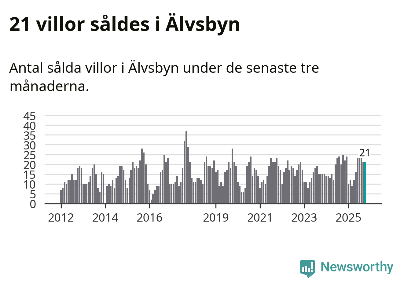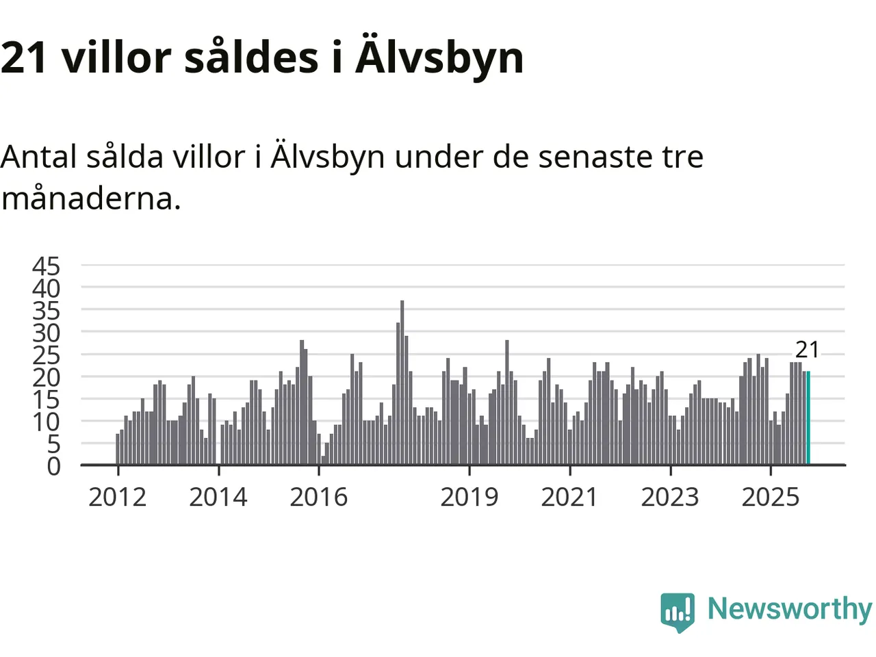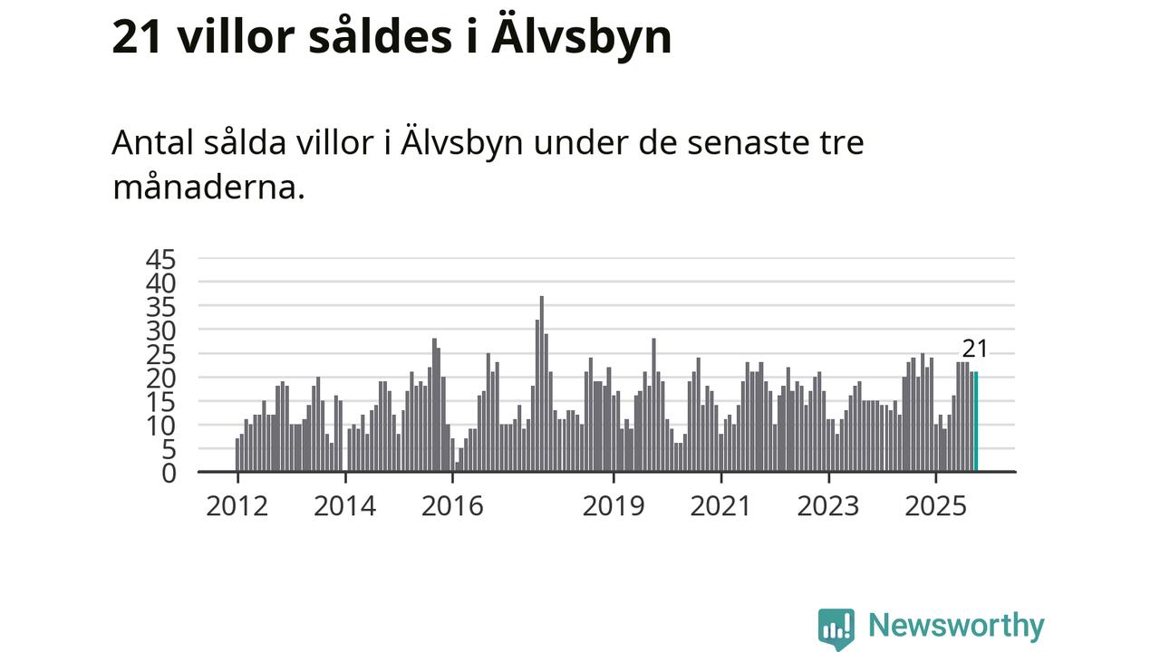 Mellan augusti och oktober gjordes sammanlagt 21 affärer med villor i Älvsbyns kommun. Det kan jämföras med 25 vid motsvarande tid i fjol.