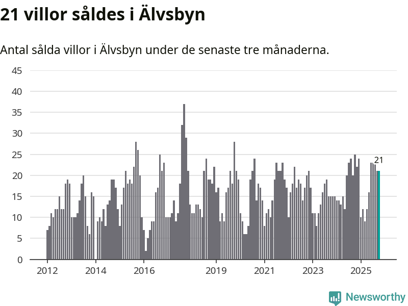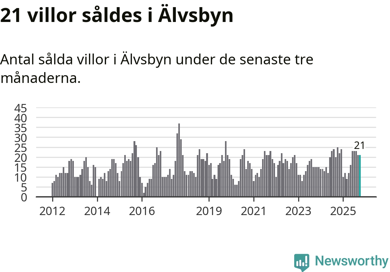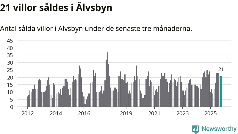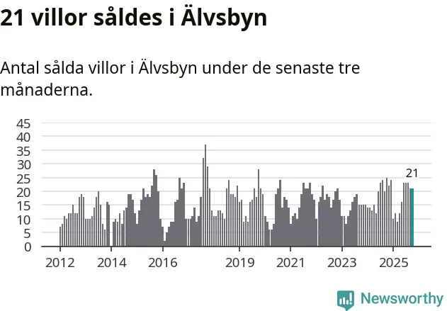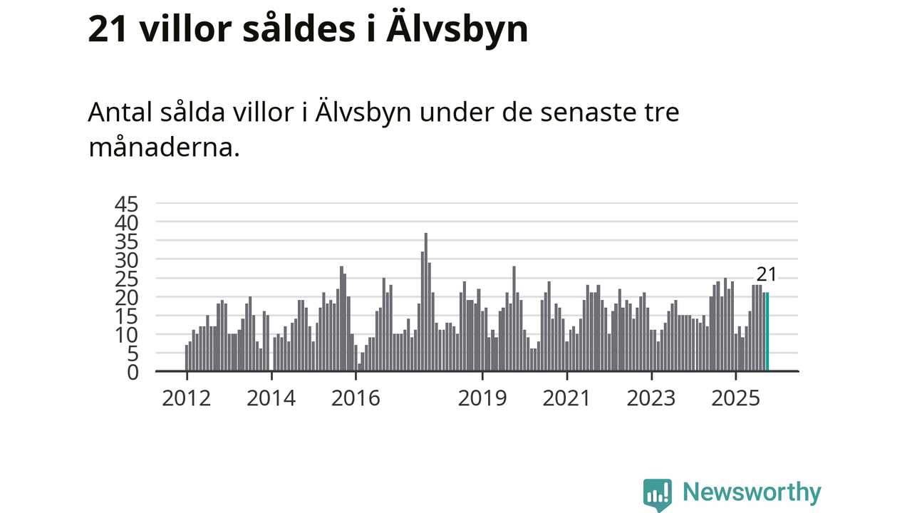 Mellan augusti och oktober gjordes sammanlagt 21 affärer med villor i Älvsbyns kommun. Det kan jämföras med 25 vid motsvarande tid i fjol.