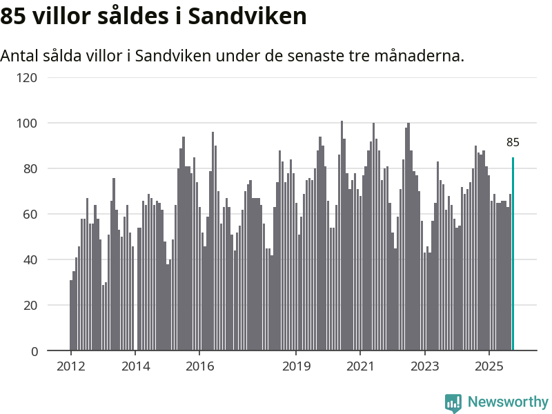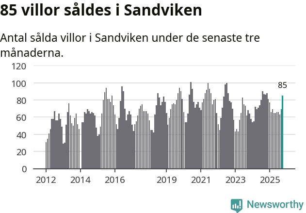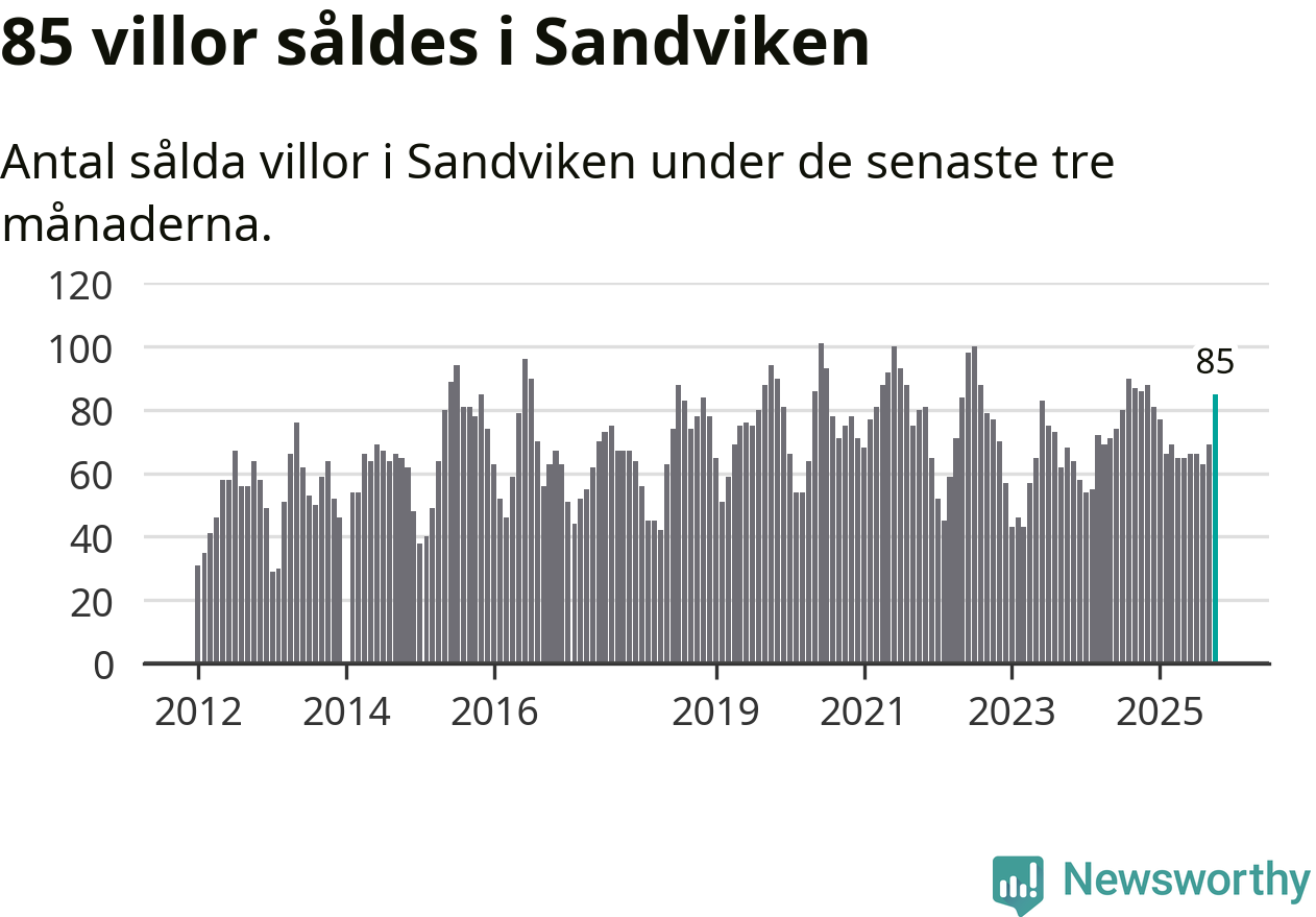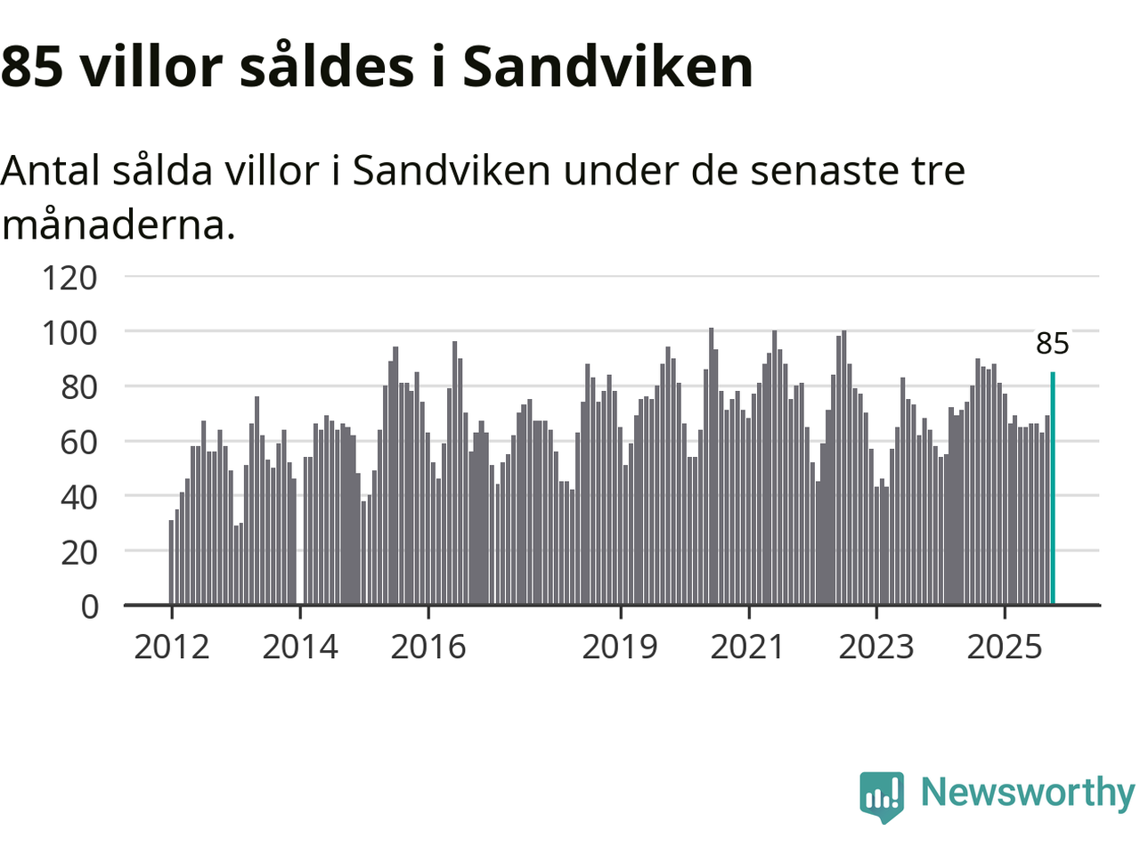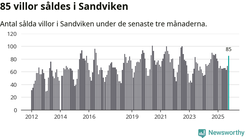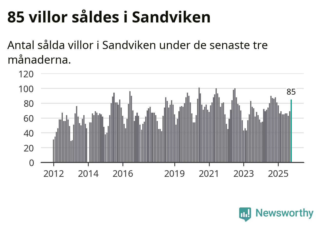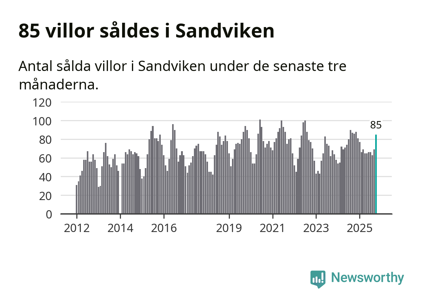 Sammanlagt såldes 85 villor i Sandvikens kommun mellan augusti och oktober till ett genomsnittligt pris på 2,0 miljoner kronor. I fjol gjordes 86 affärer vid den här tiden på året.