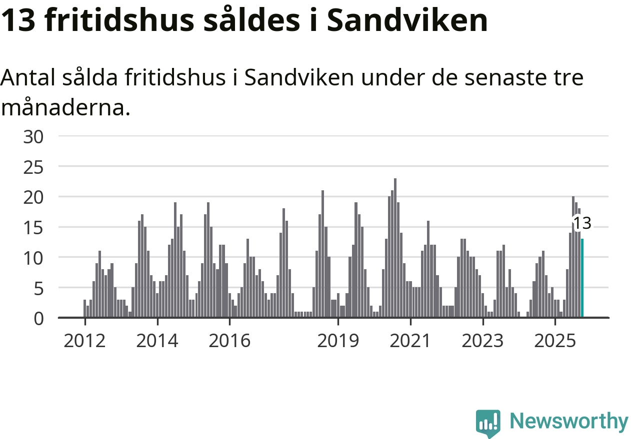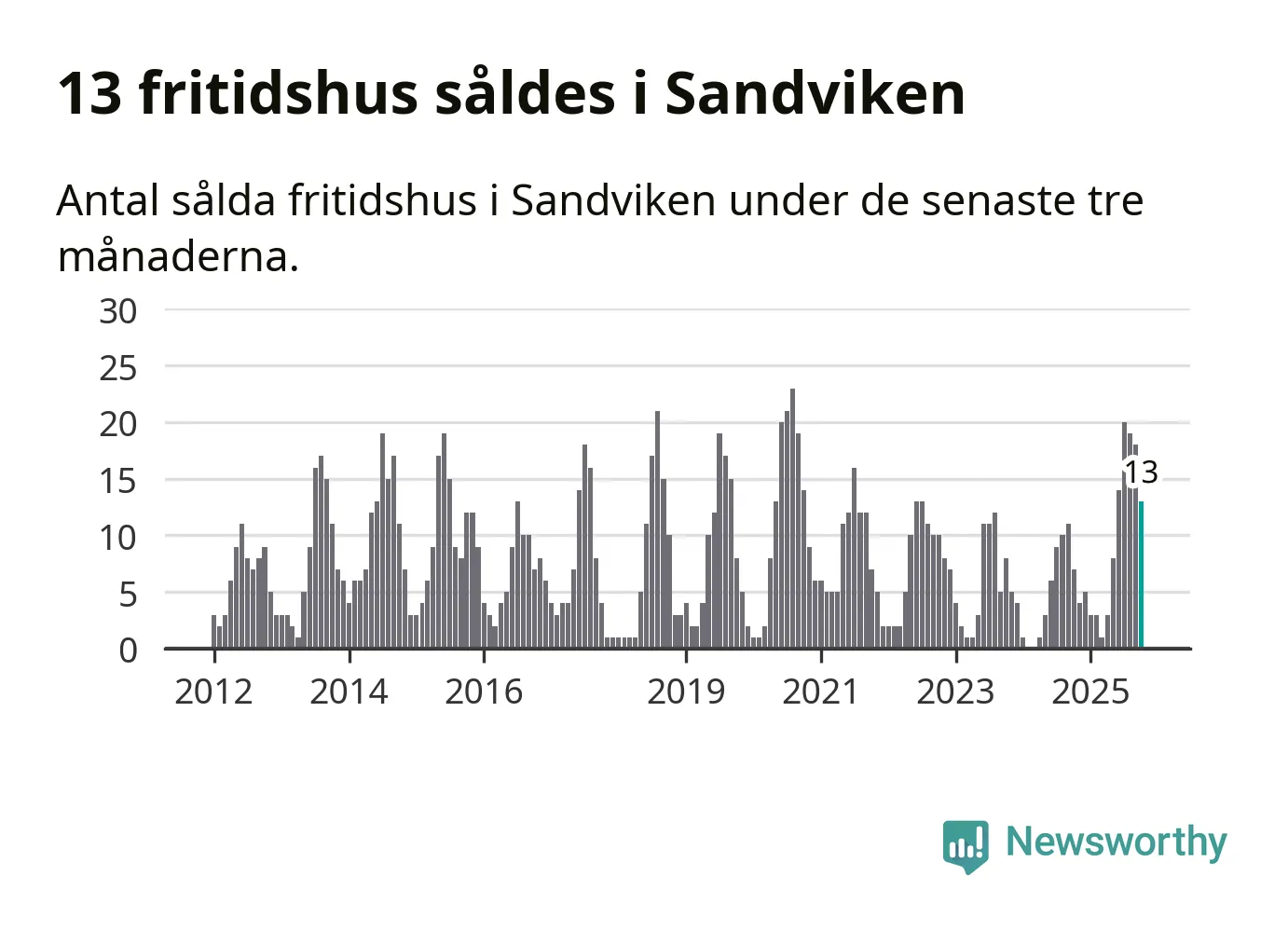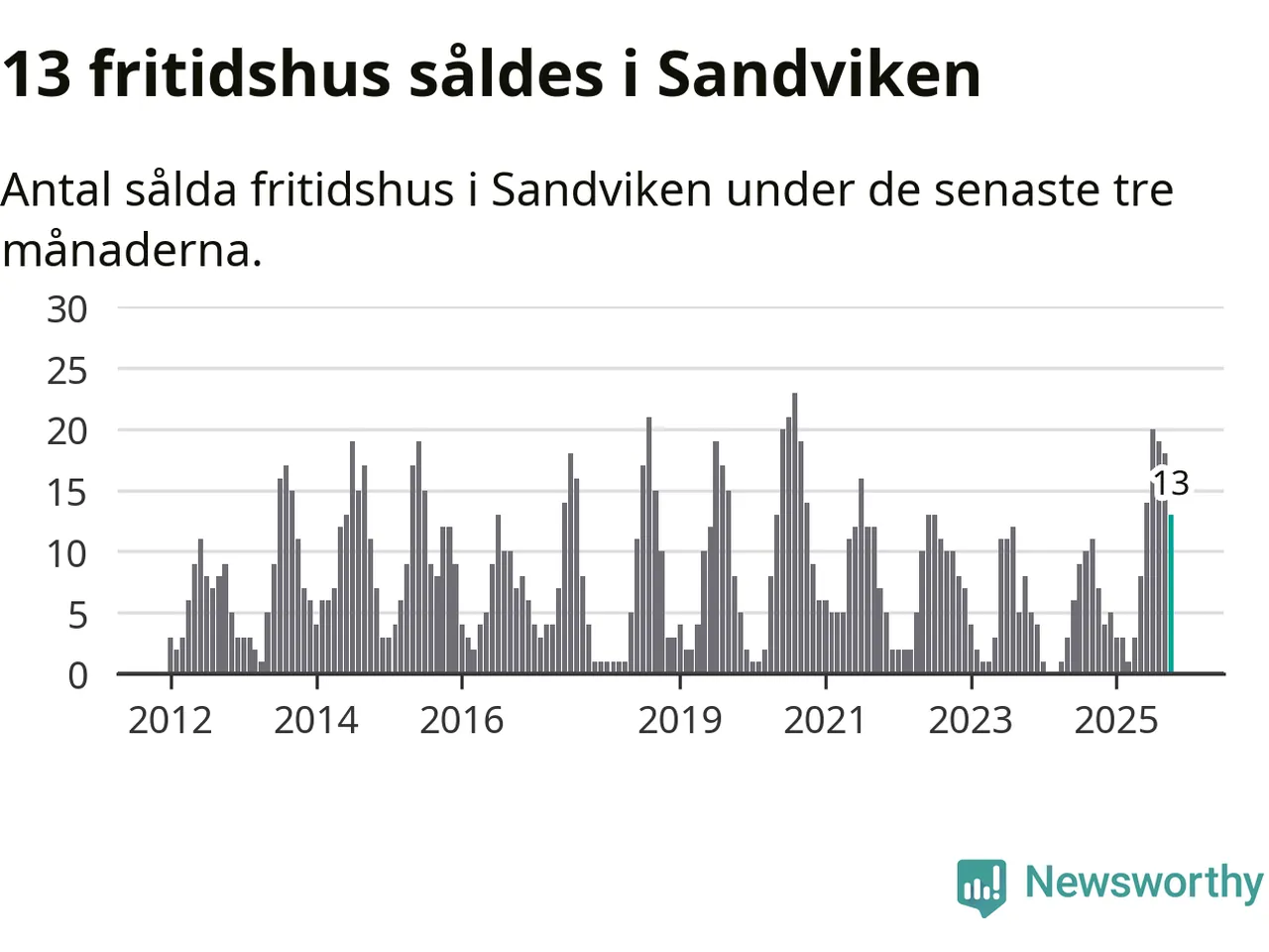 Mellan augusti och oktober gjordes sammanlagt 13 affärer med fritidshus i Sandvikens kommun. Det kan jämföras med sju vid motsvarande tid i fjol.